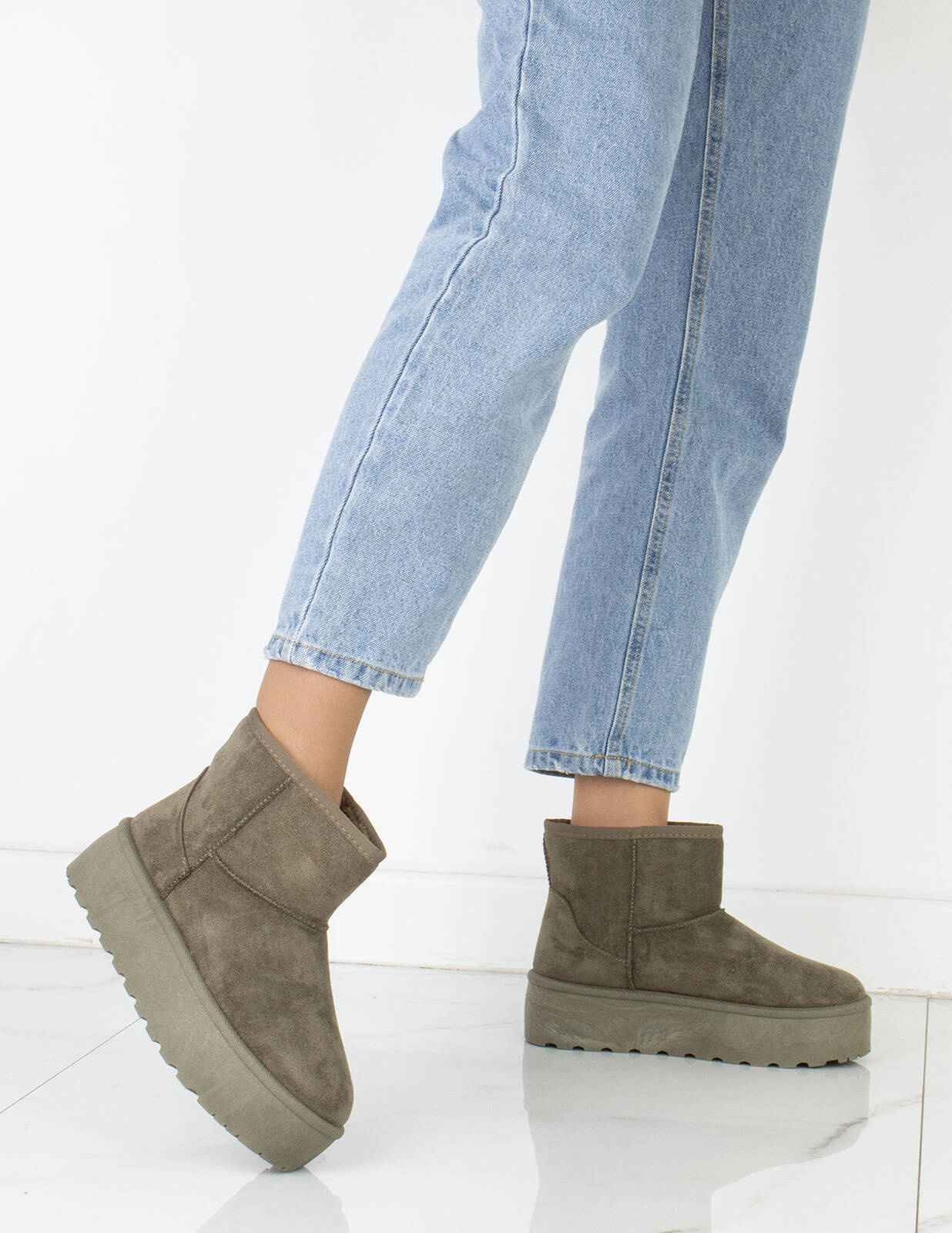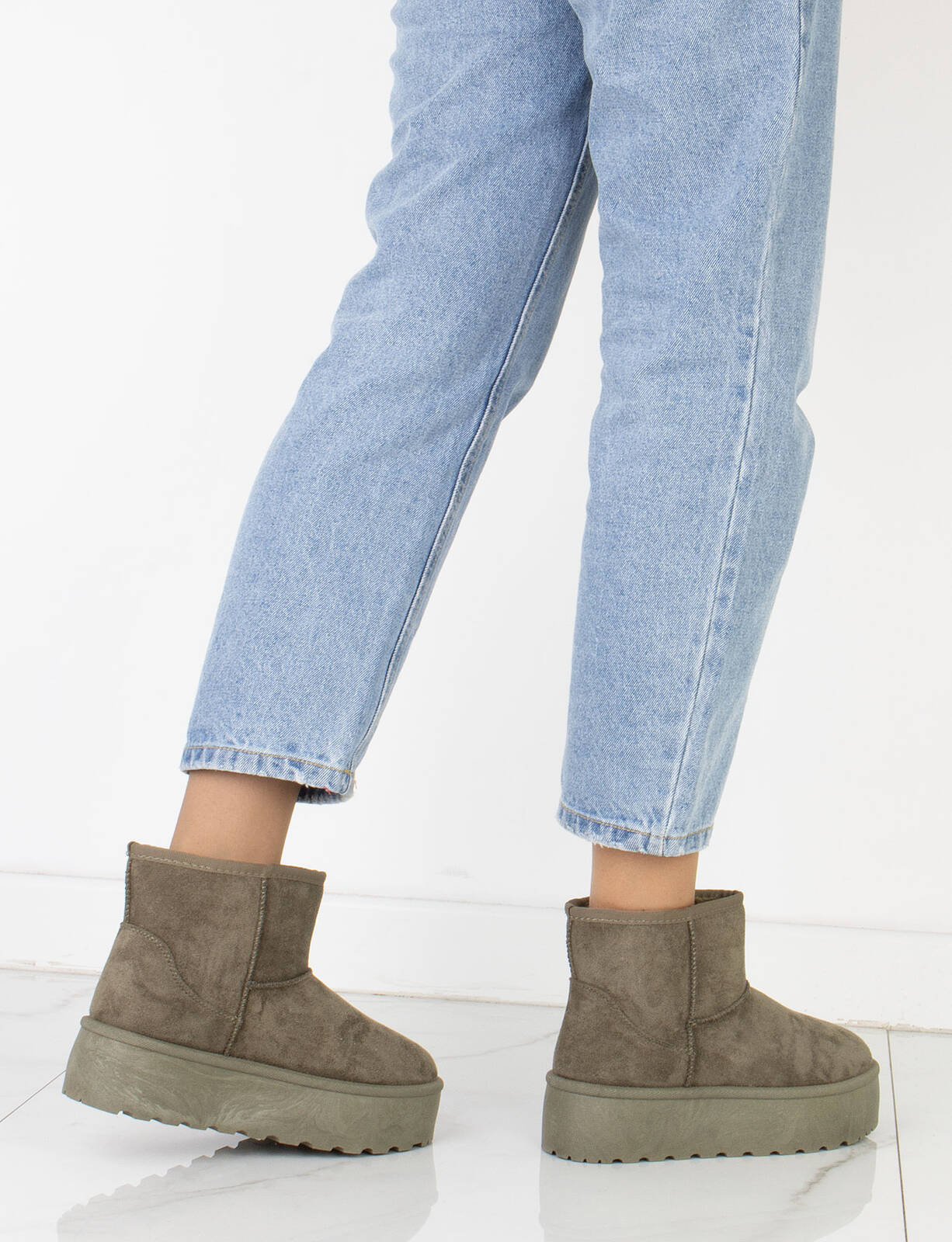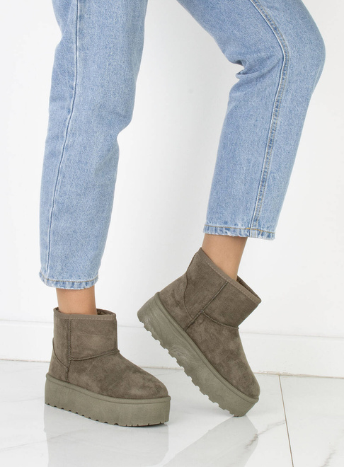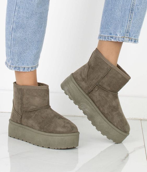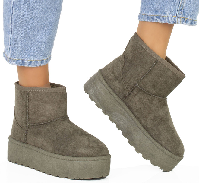 Cholewka śniegowców została wykonana z miękkiego zamszu, co nadaje im elegancki wygląd i jednocześnie zapewnia trwałość i odporność na wilgoć. Wewnętrzna część buta jest ocieplona mięciutkim i ciepłym futerkiem, które chroni stopy przed zimnem i zapewnia przyjemne uczucie ciepła.