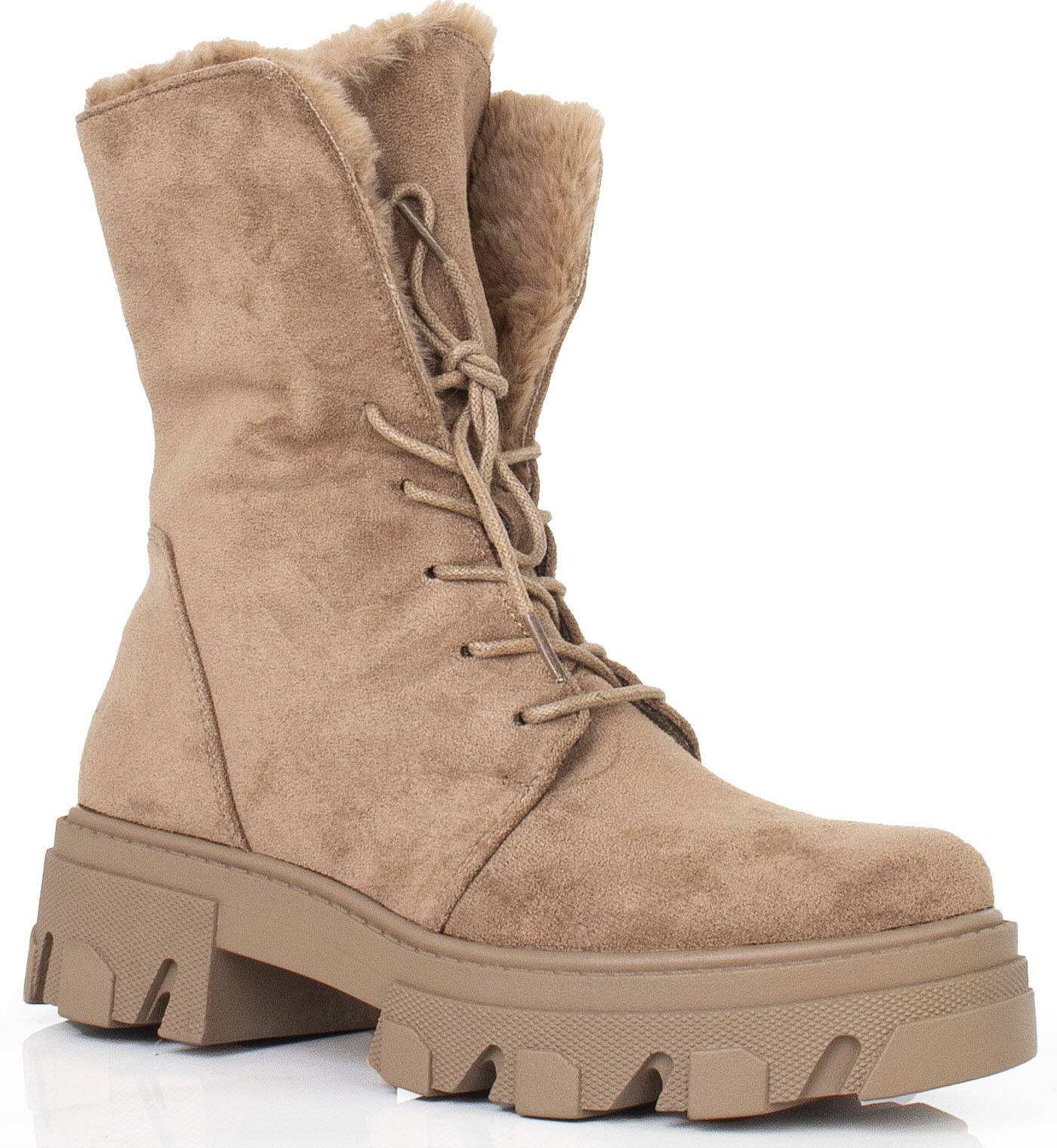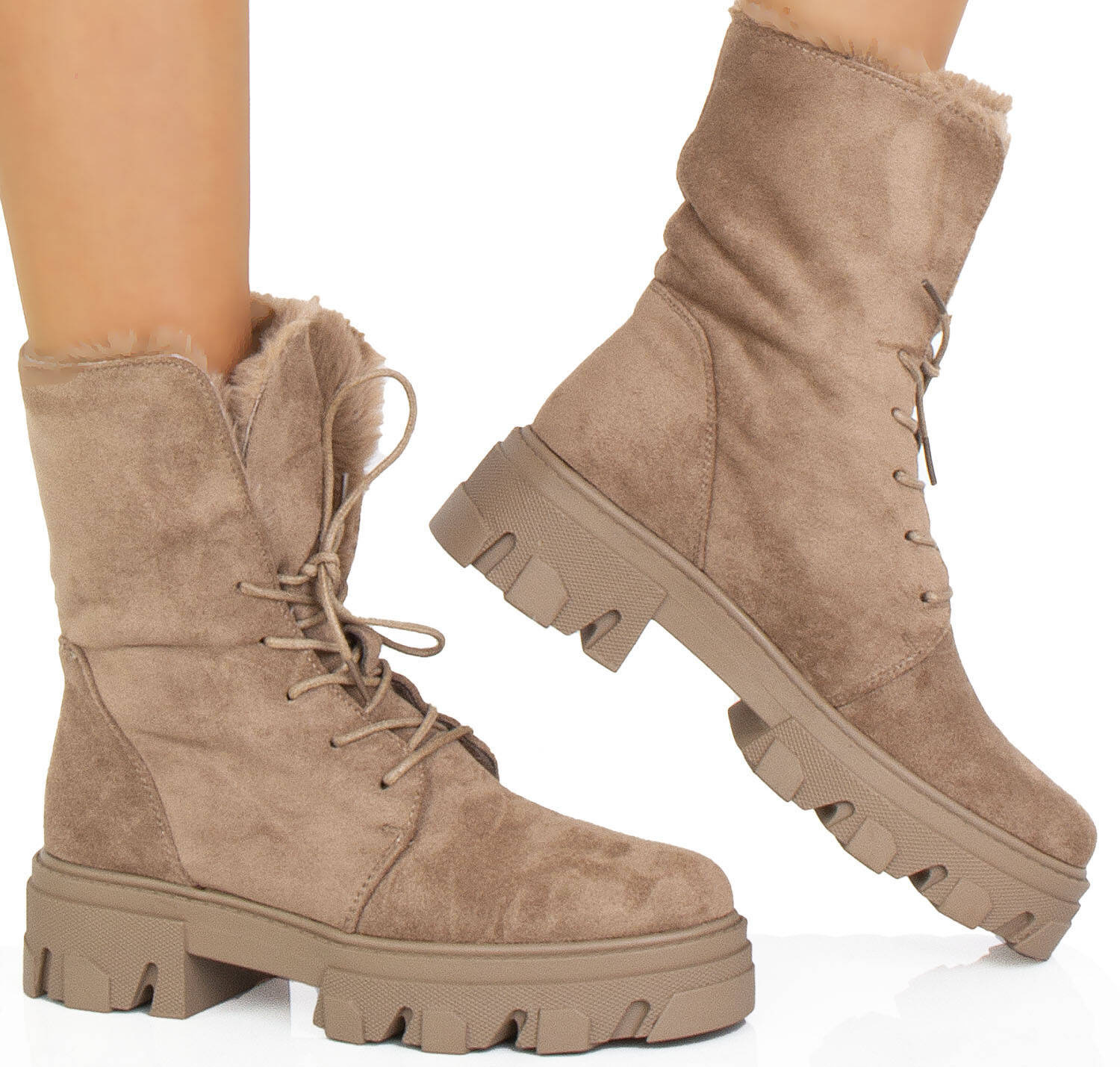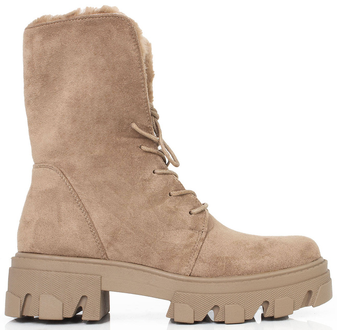 Podeszwa na platformie nie tylko dodaje butom modnego charakteru, ale także zapewnia komfort podczas chodzenia. Platforma zapewnia amortyzację podczas chodzenia, co jest istotne dla wygody stóp, zwłaszcza podczas dłuższych spacerów. Ocieplone mięsistym, grubym futerkiem.