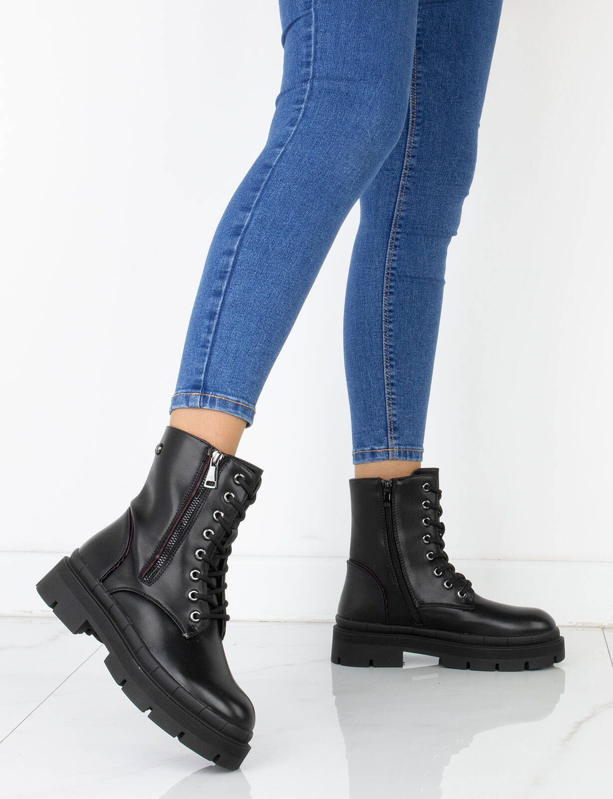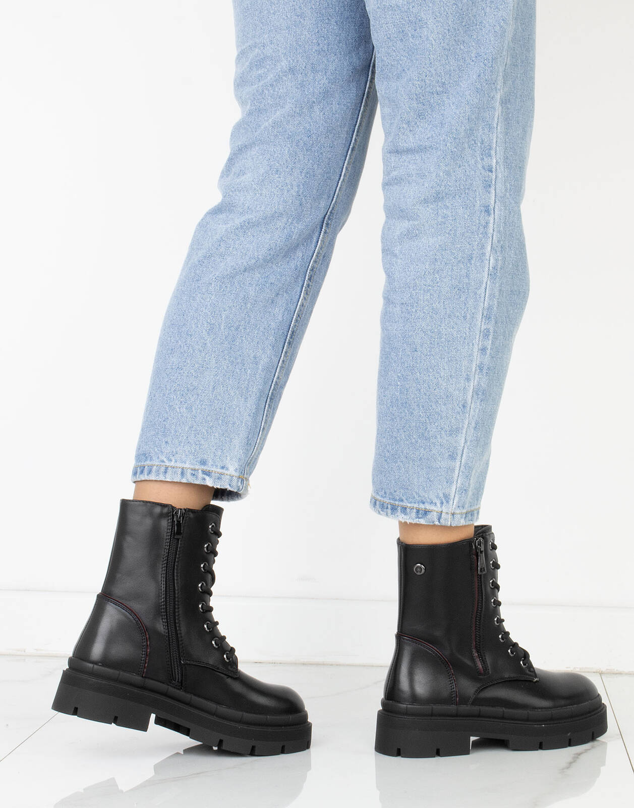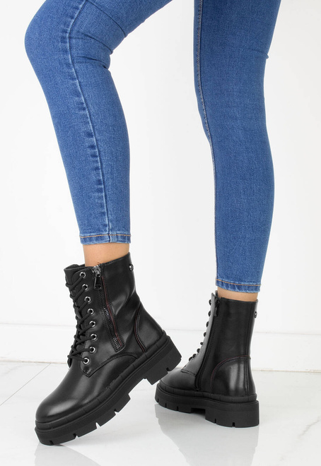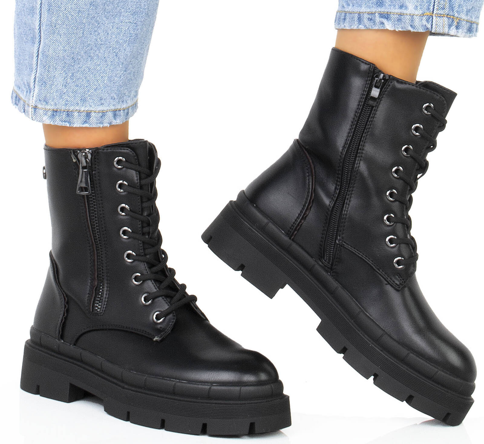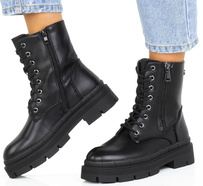 CZARNE BOTKI TRAPERY SZNUROWANE SKÓRZANE MADORA