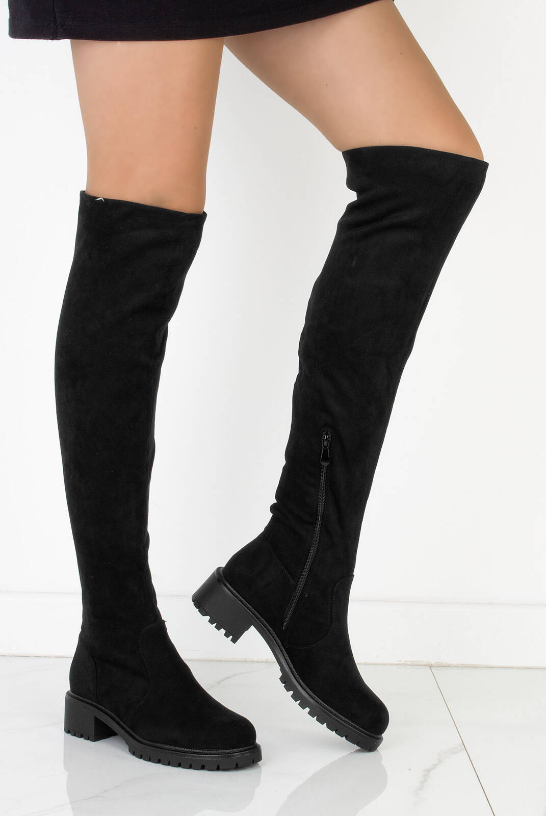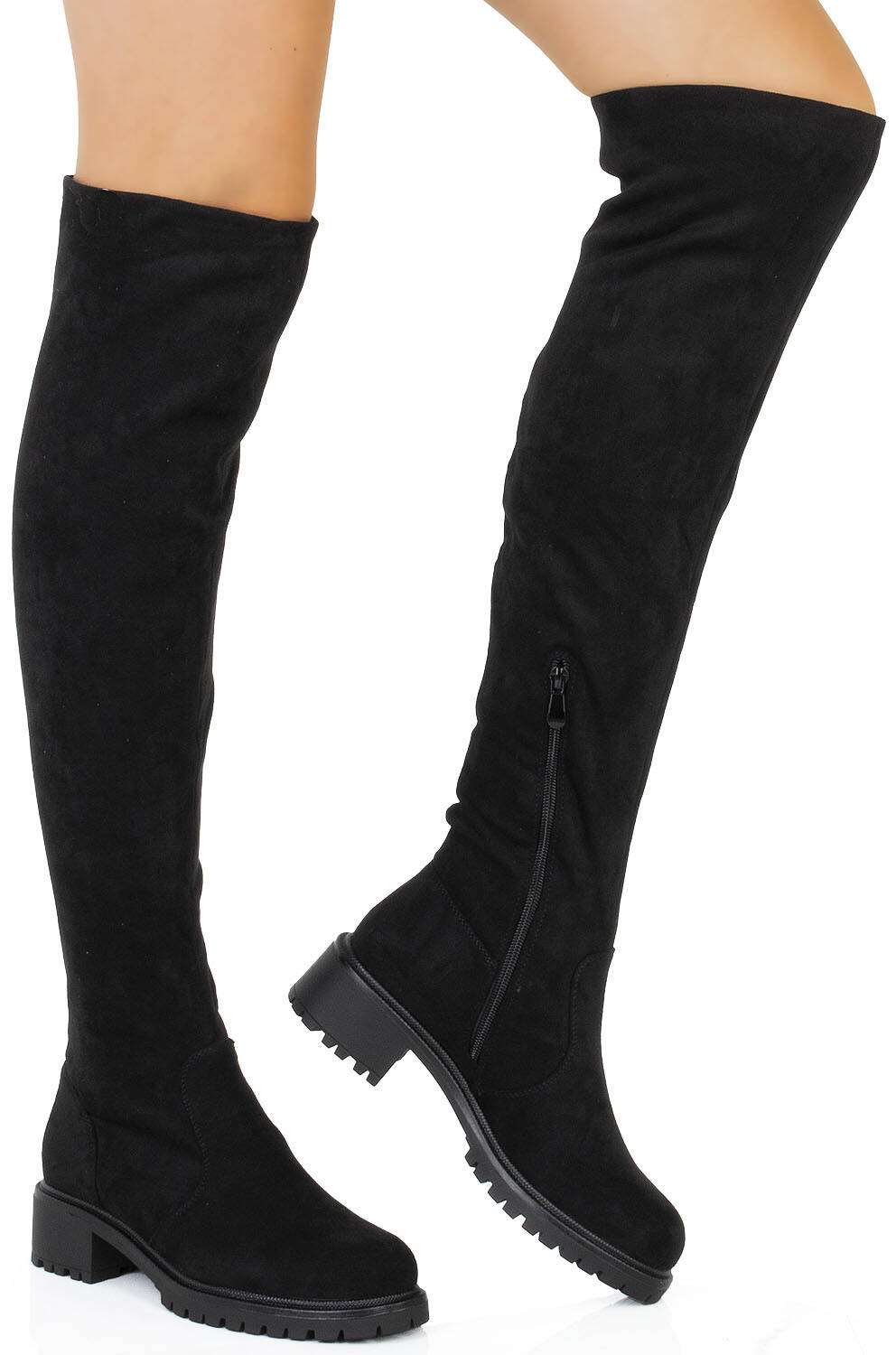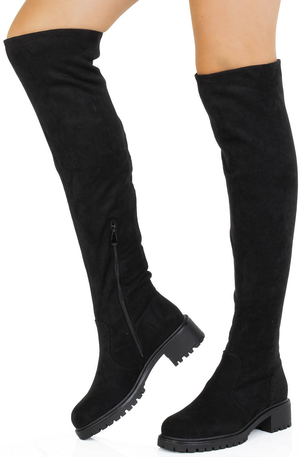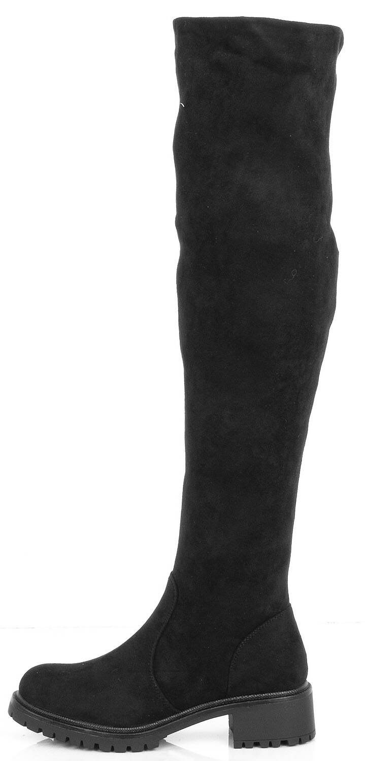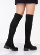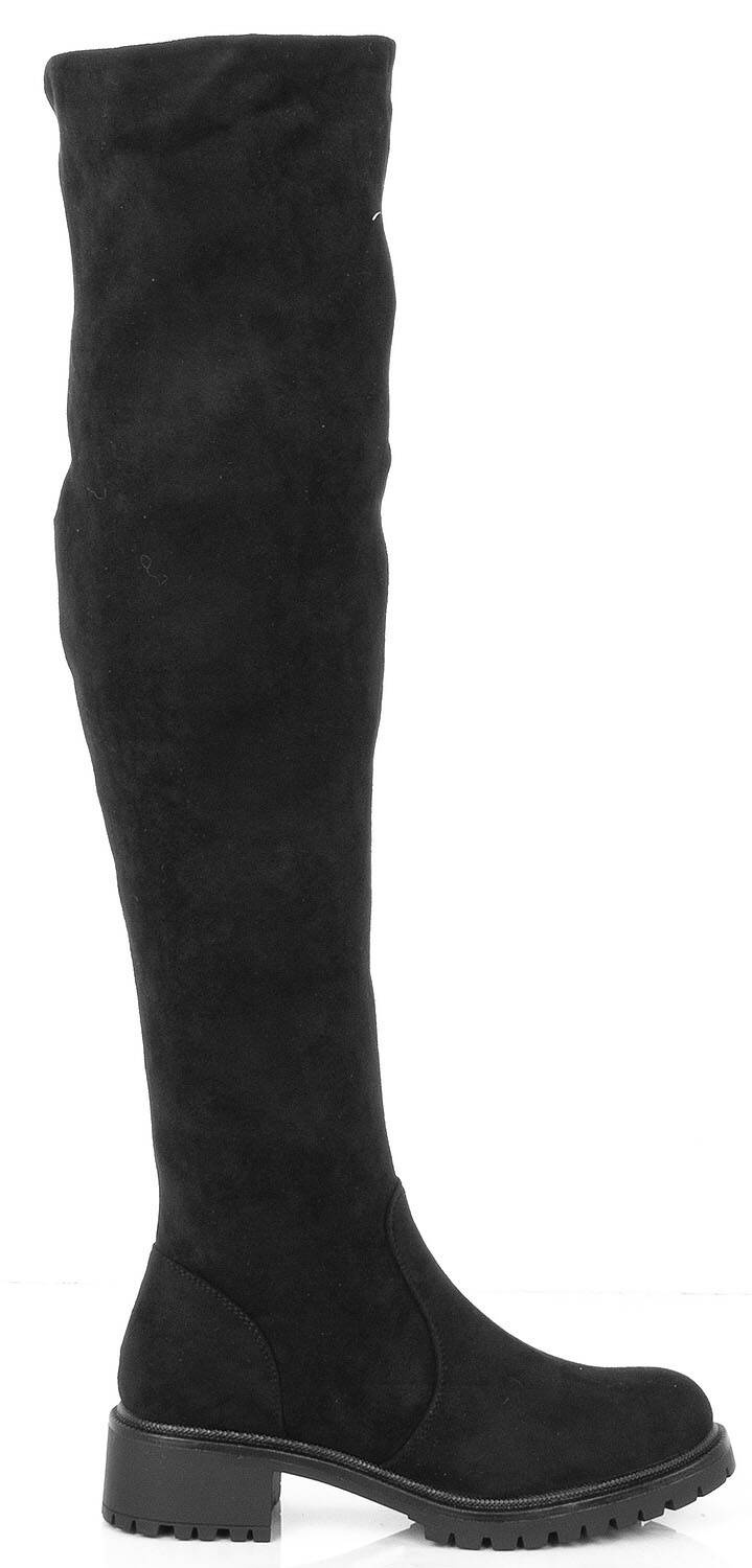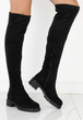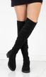 Czarne zamszowe wysokie kozaki za kolano, dodatkowo ocieplane, idealne na chłodniejsze dni.