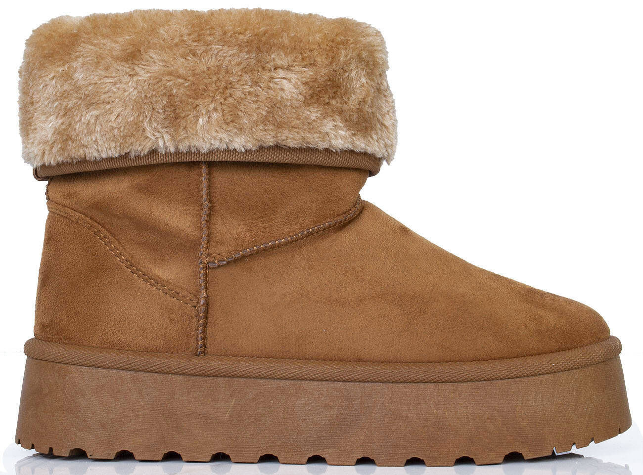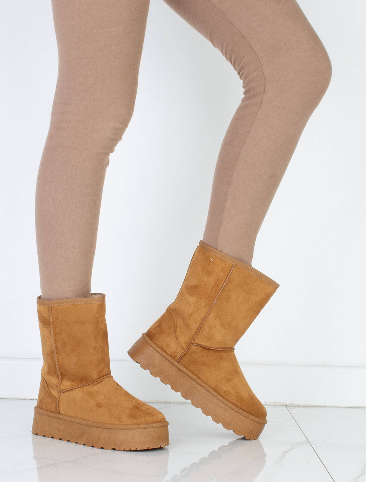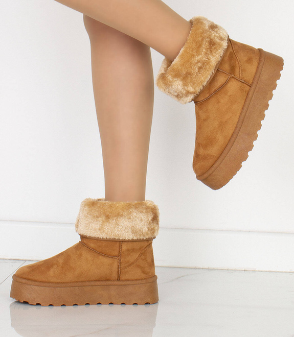 Cholewka śniegowców została wykonana z miękkiego zamszu, co nadaje im elegancki wygląd i jednocześnie zapewnia trwałość i odporność na wilgoć. Wewnętrzna część buta jest ocieplona mięciutkim i ciepłym futerkiem, które chroni stopy przed zimnem i zapewnia przyjemne uczucie ciepła.