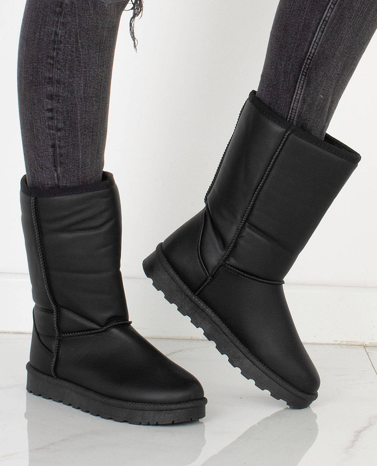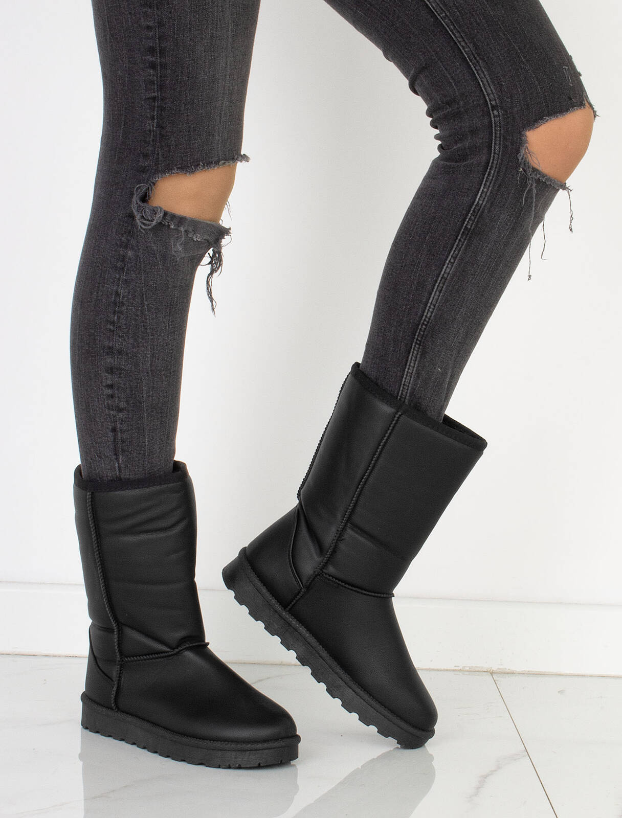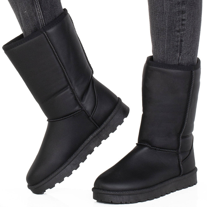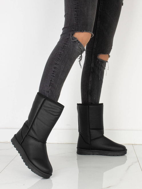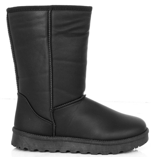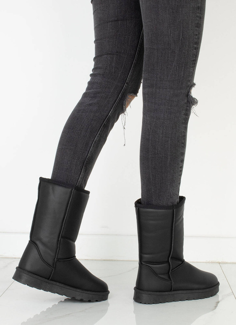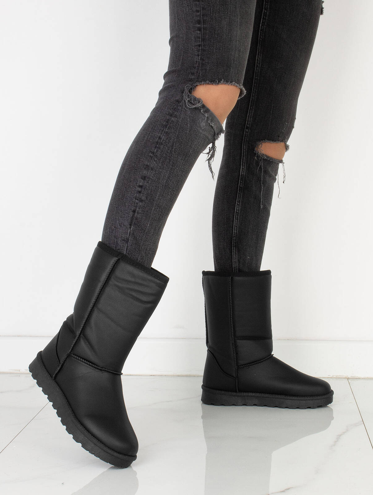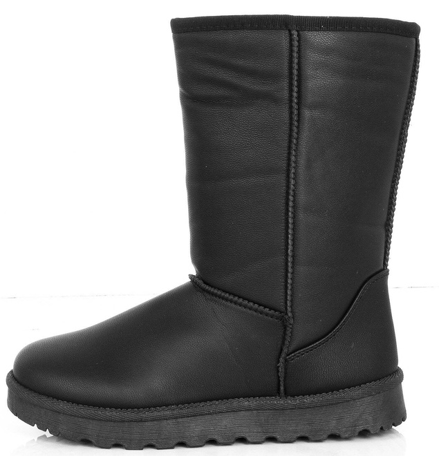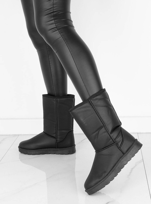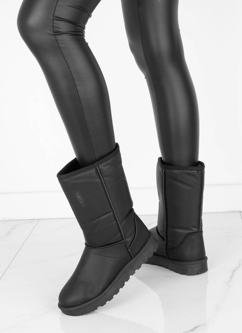 ŚNIEGOWCE CZARNE SKÓRZANE OCIEPLANE WSUWANE KOZAKI LENA