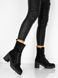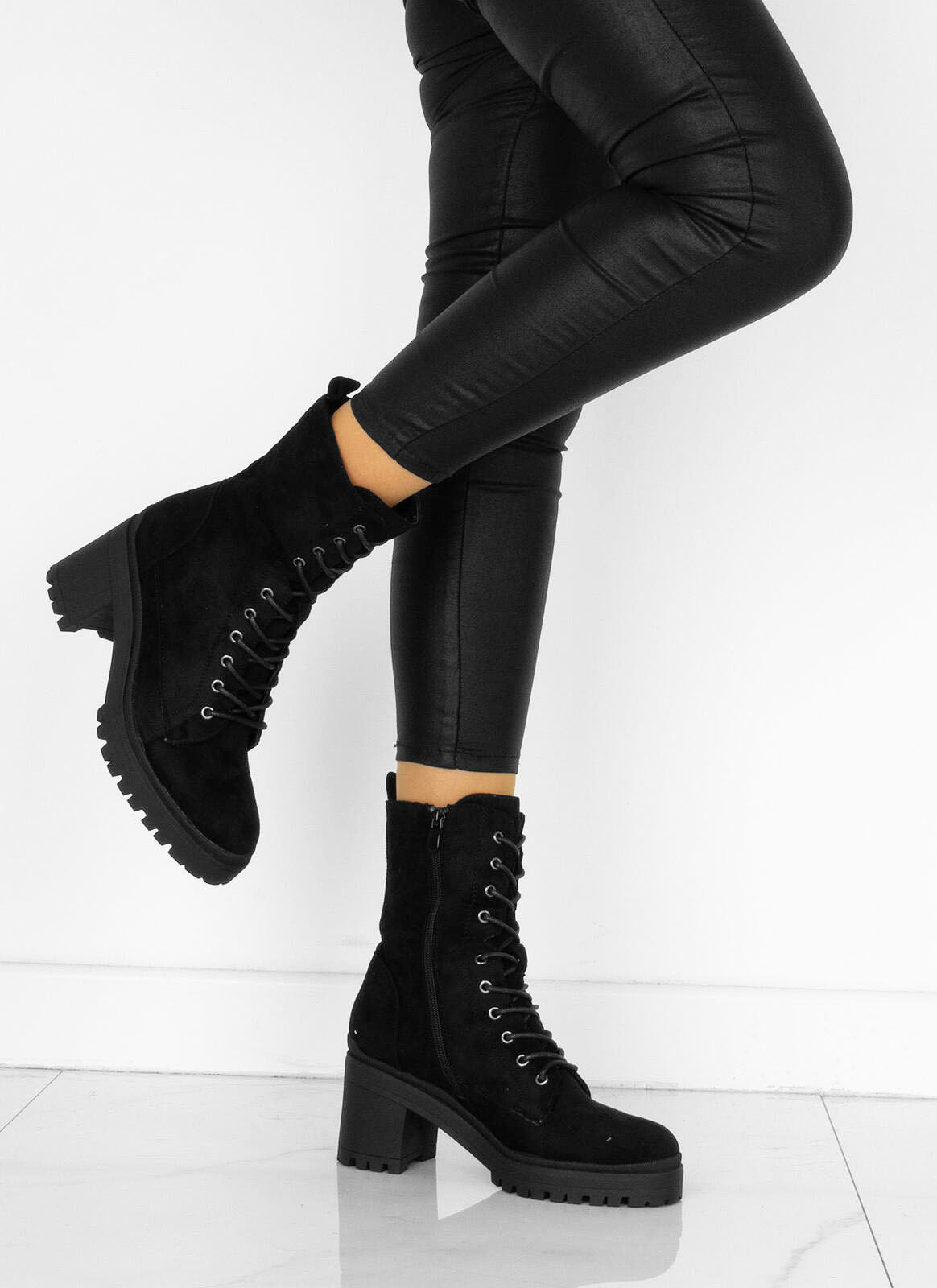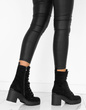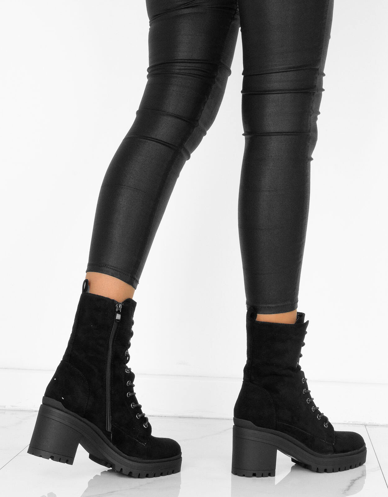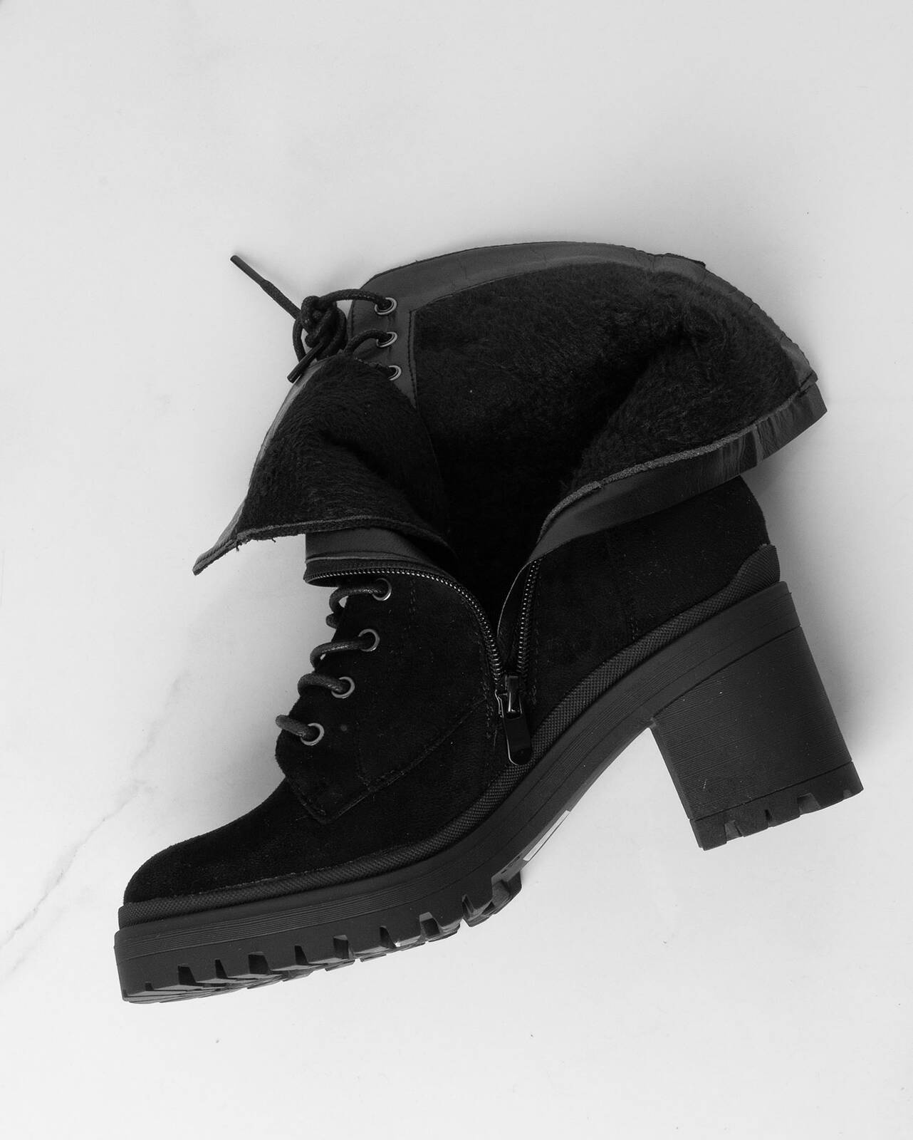 Cholewka botków została wykonana z miękkiego zamszu, co nadaje im przyjemny w dotyku i luksusowy wygląd. Sznurowanie oraz zapięcie na suwak z boku cholewki pozwalają na dokładne dopasowanie obuwia do kształtu stopy oraz ułatwiają zakładanie i zdejmowanie butów.