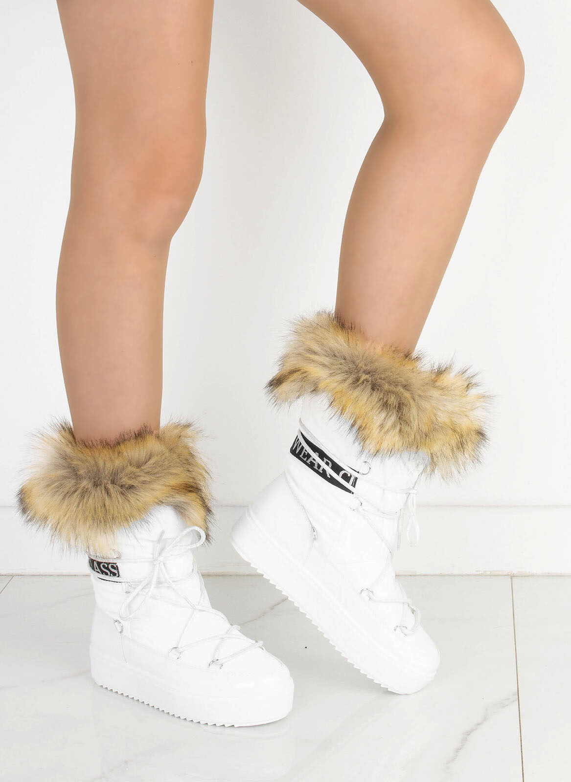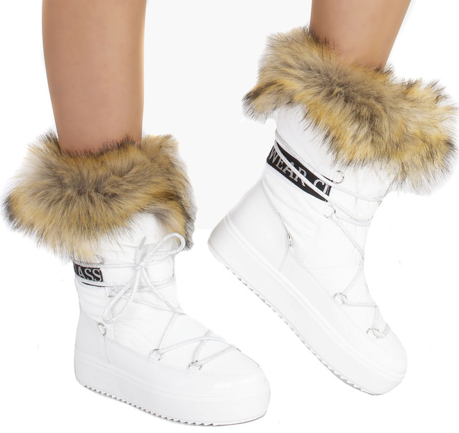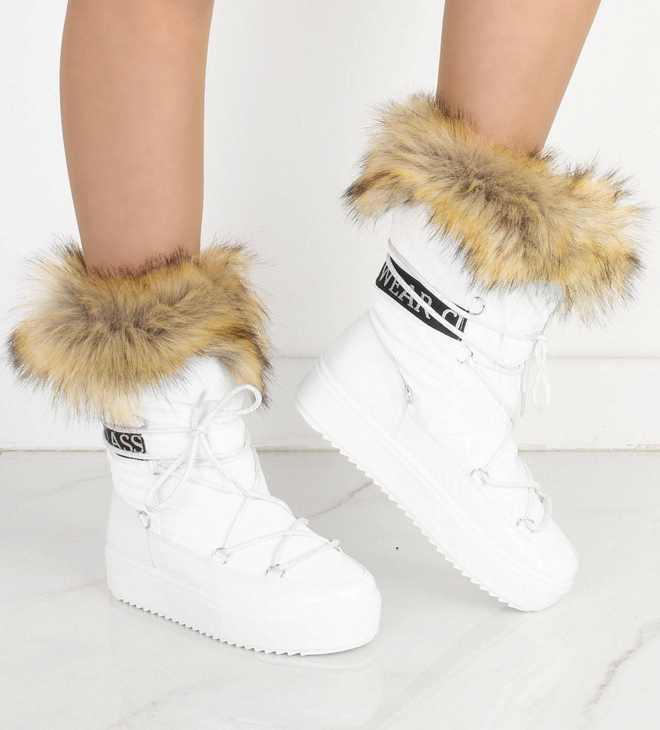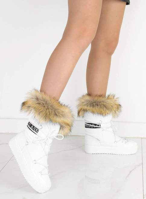 BIAŁE ŚNIEGOWCE WSUWANE OCIEPLANE BOTKI Z FUTERKIEM GRETA