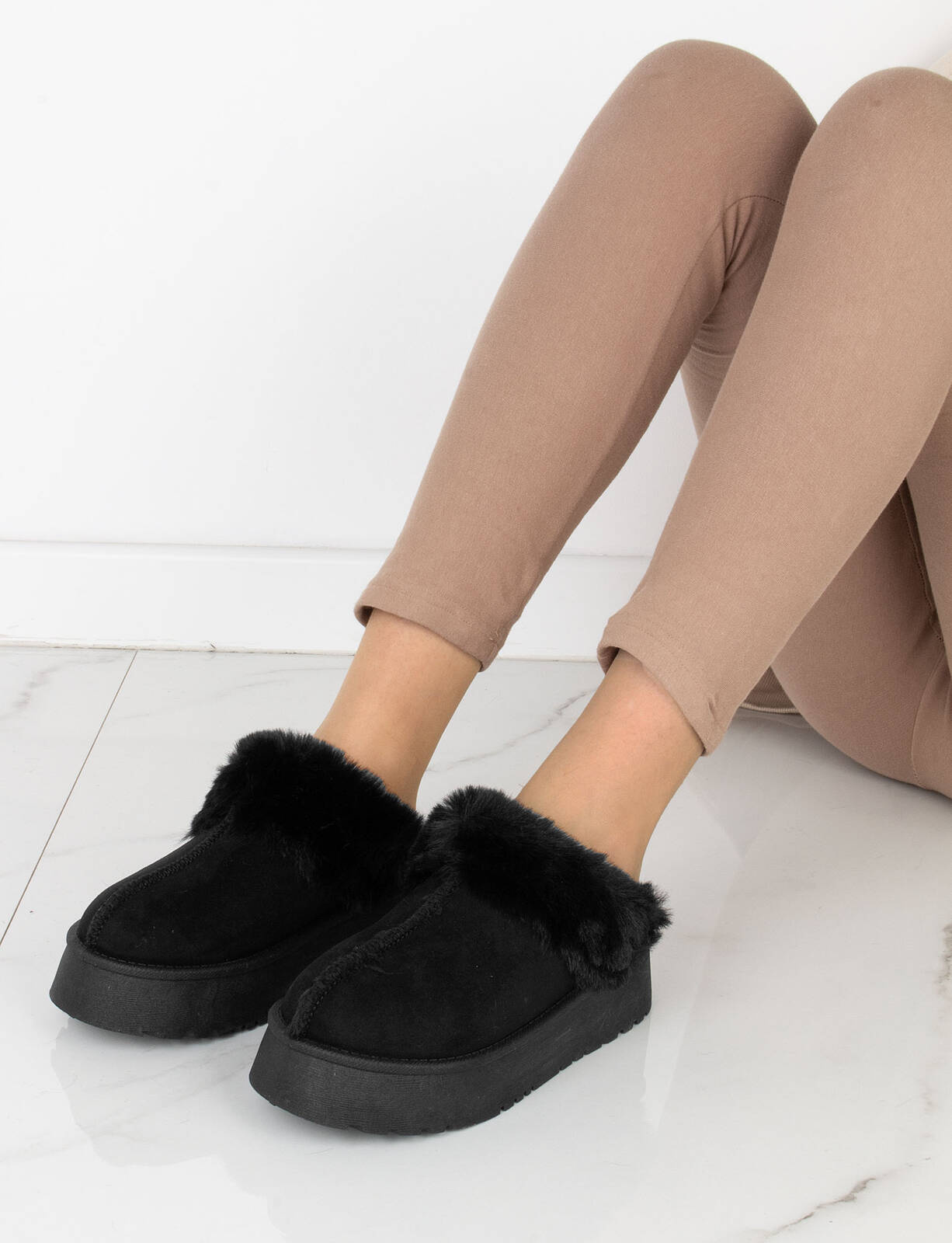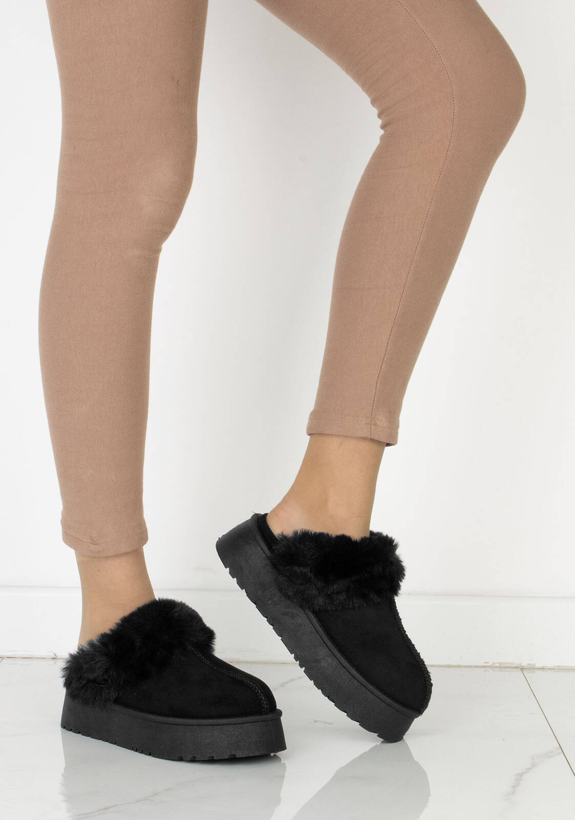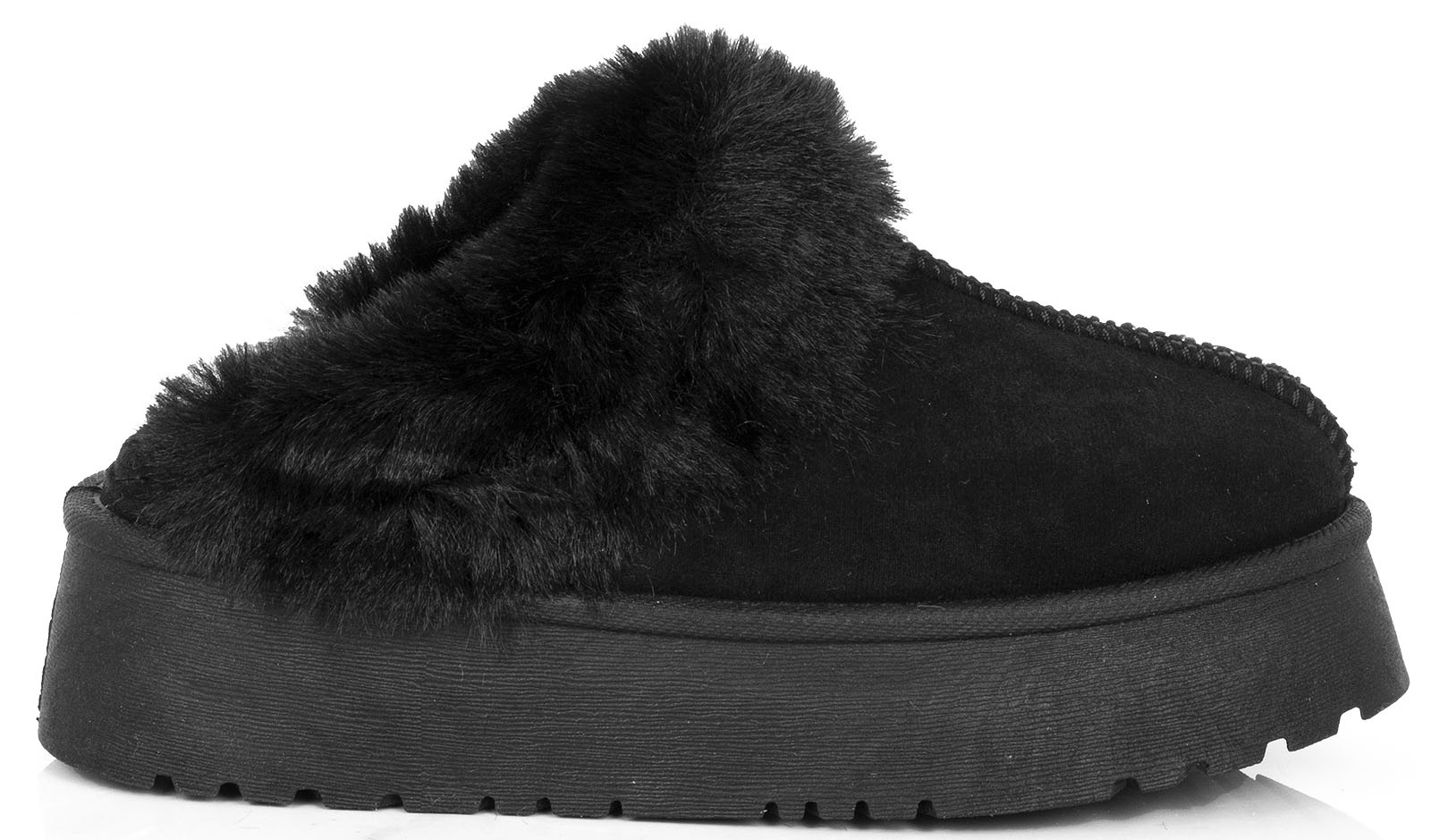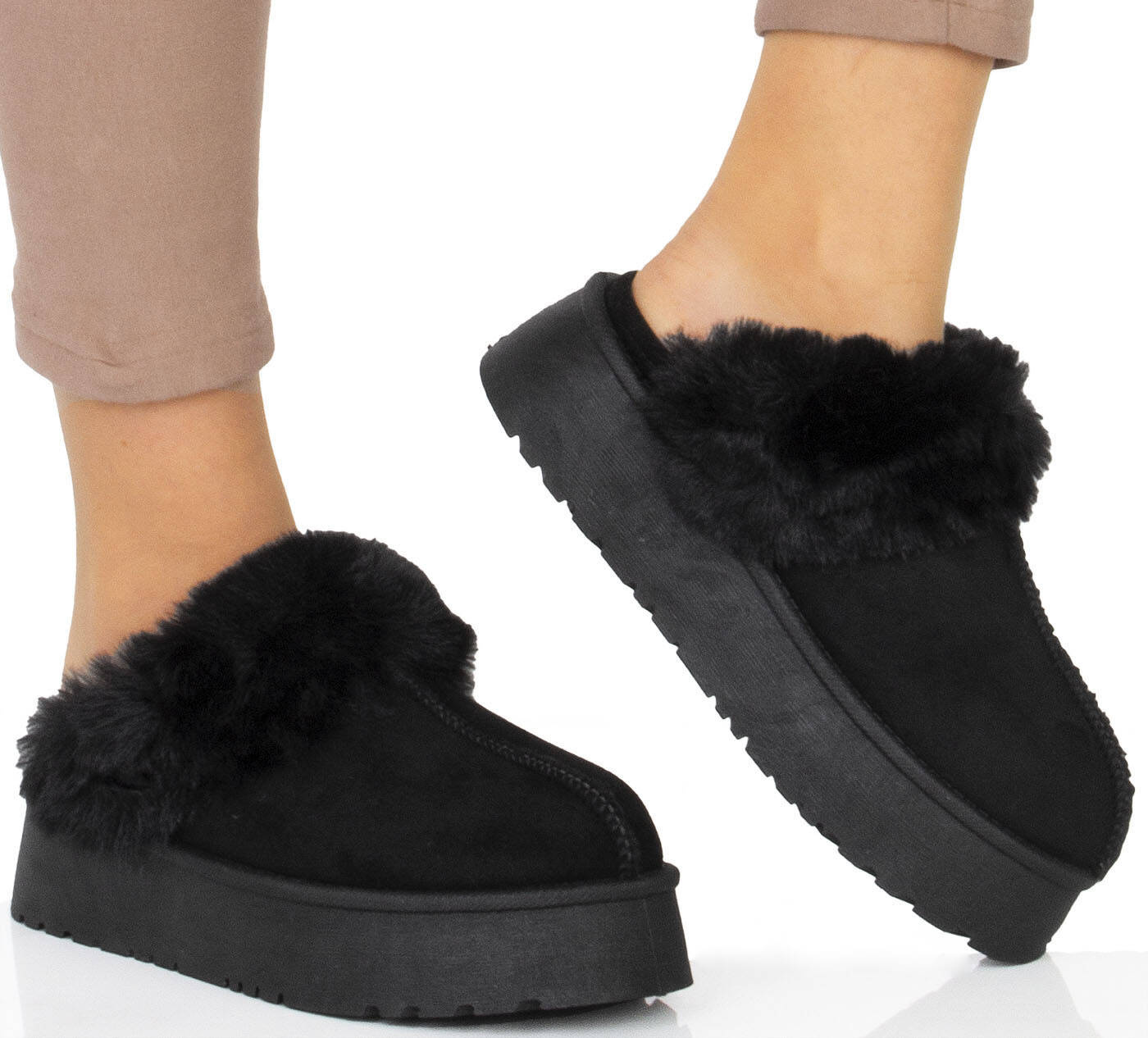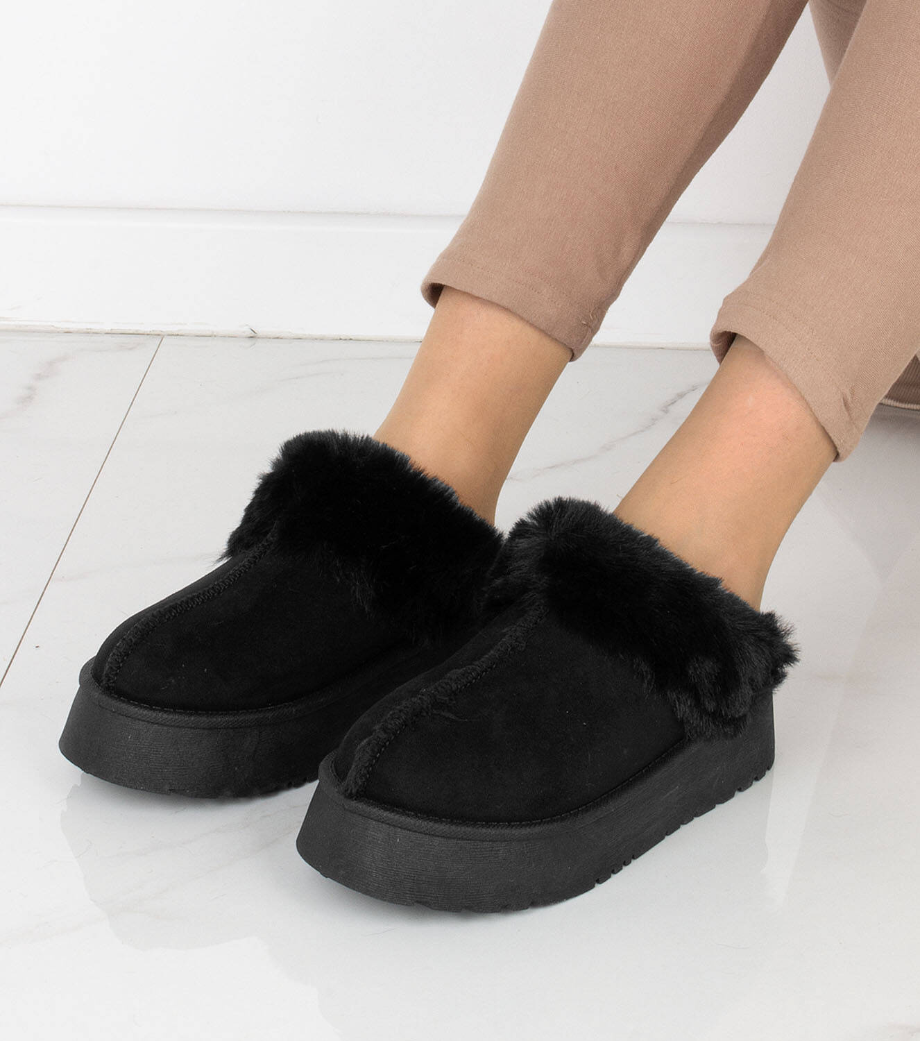 CZARNE KAPCIE OCIEPLANE PLATFORMA WSUWANE ALIZA