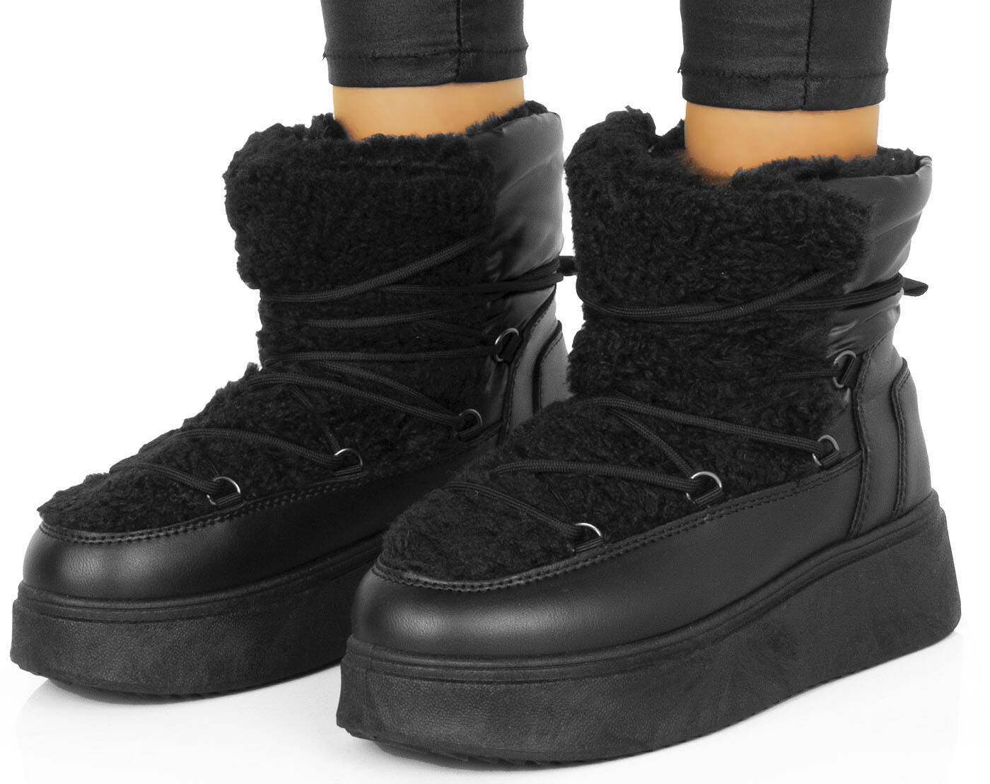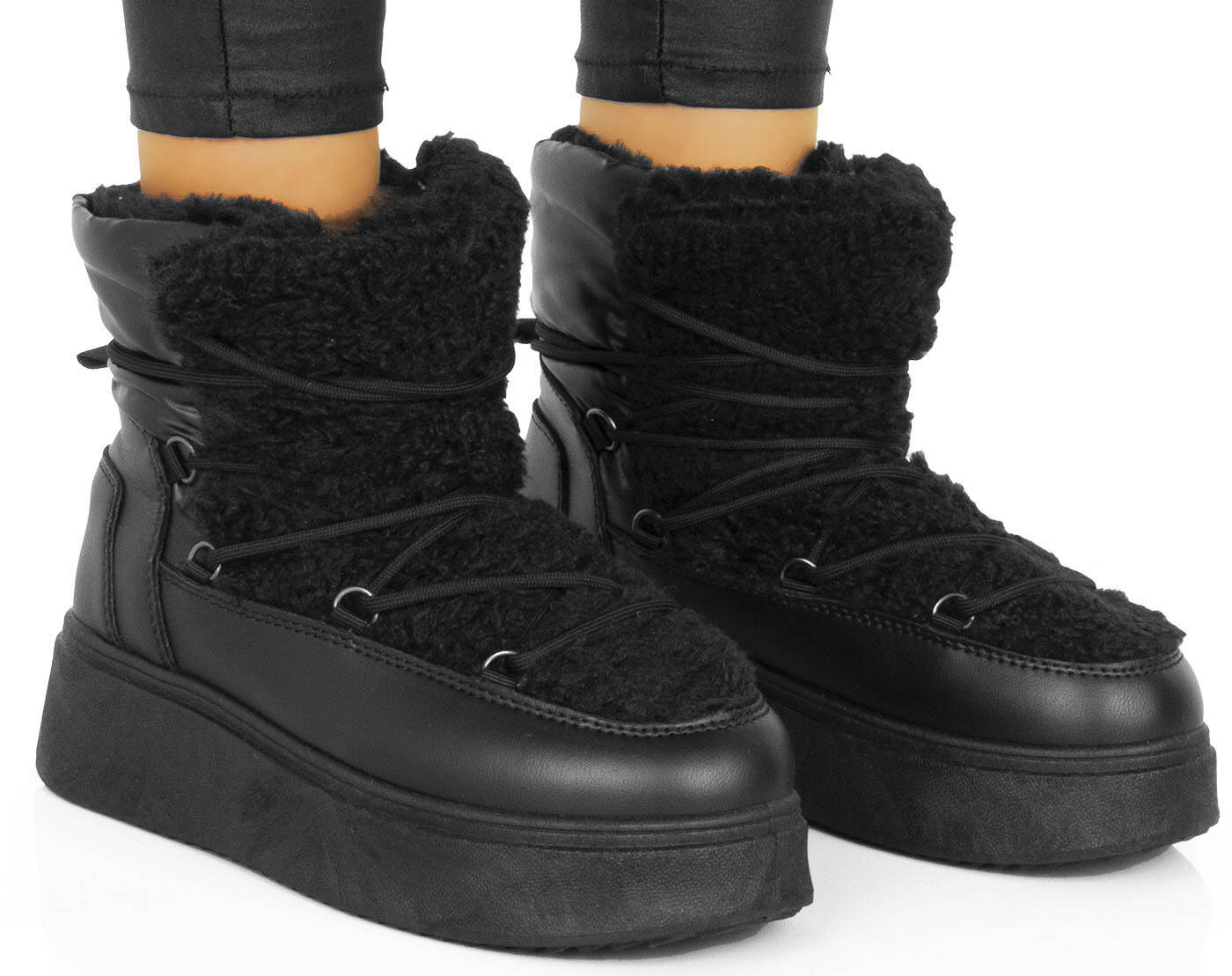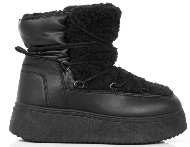 Śniegowce na platformie, sznurowane, dodatkowo ocieplane, idealne na zimowe dni.