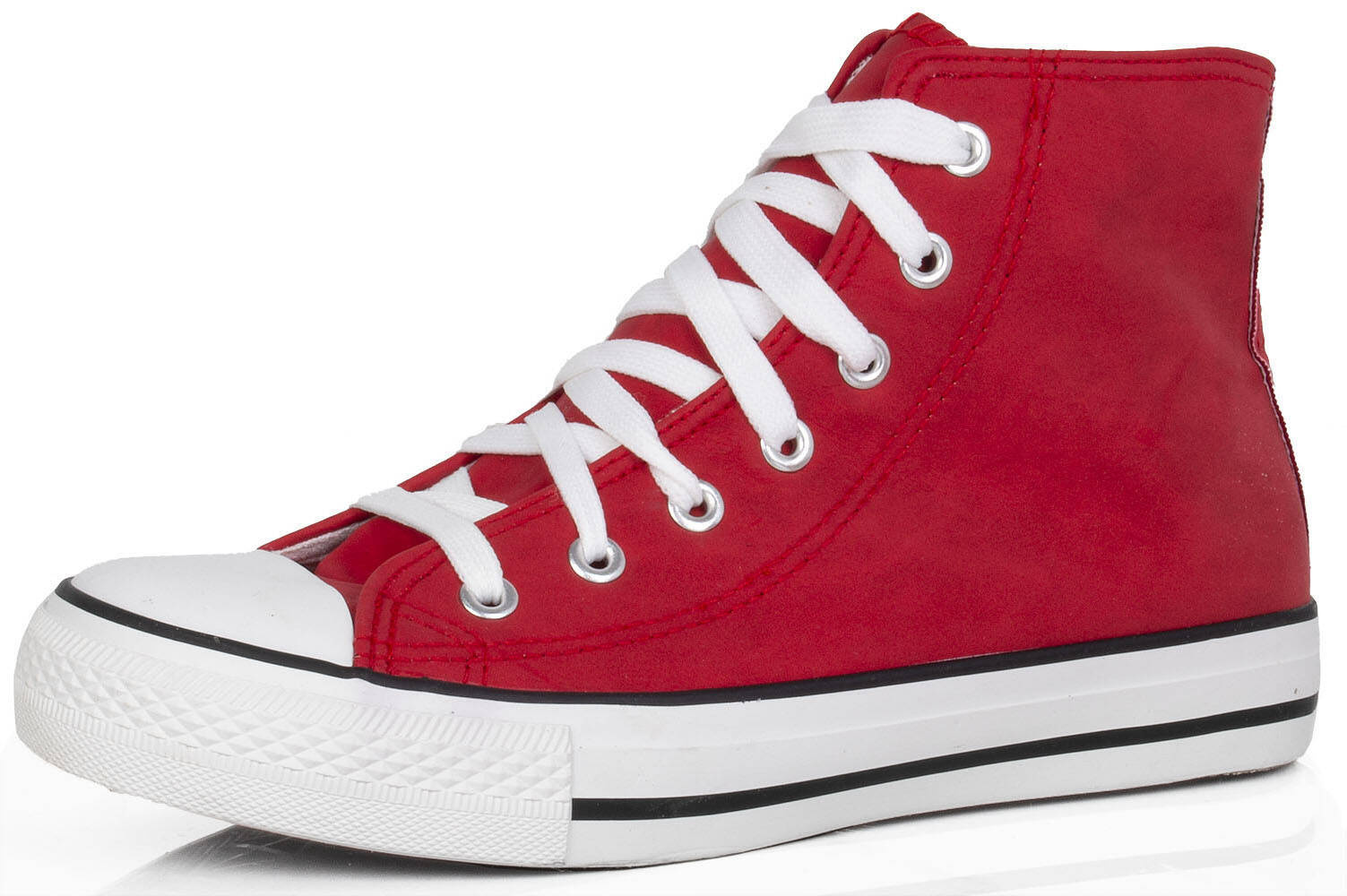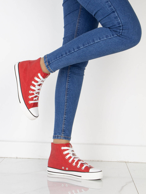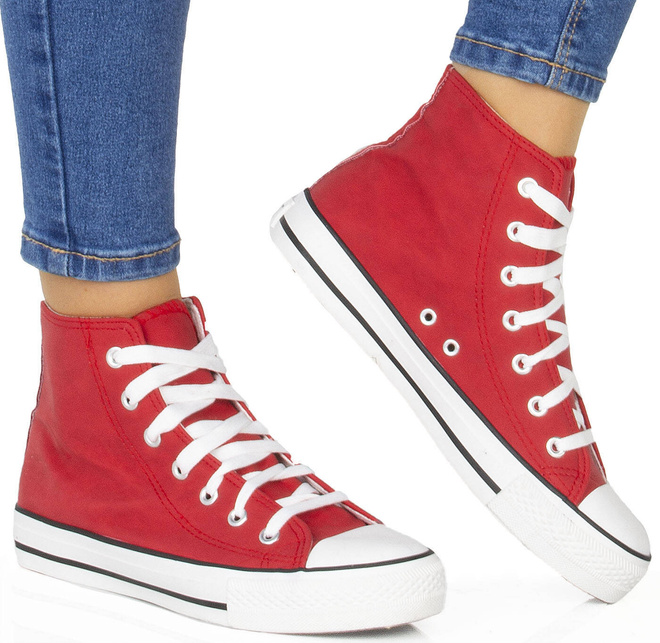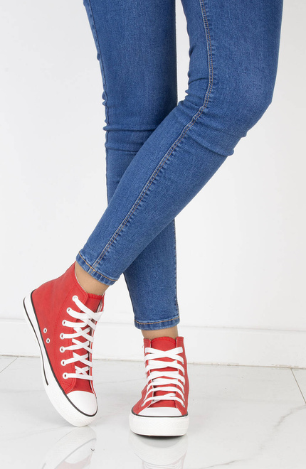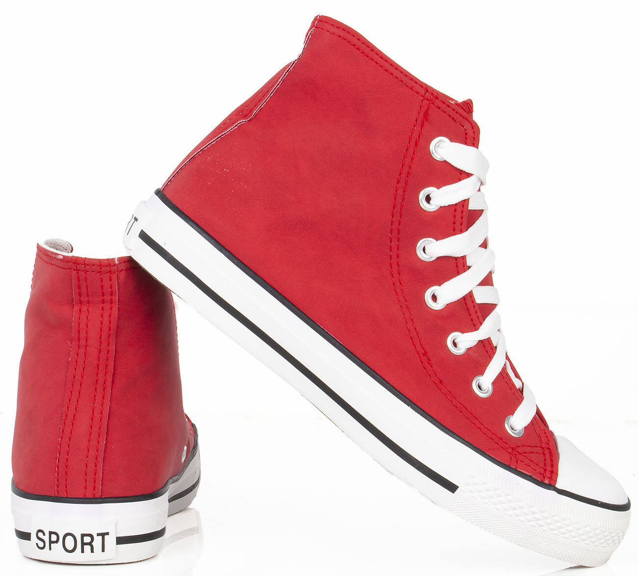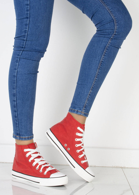 CZERWONE WYSOKIE TRAMPKI EKOSKÓRA SZNUROWANE