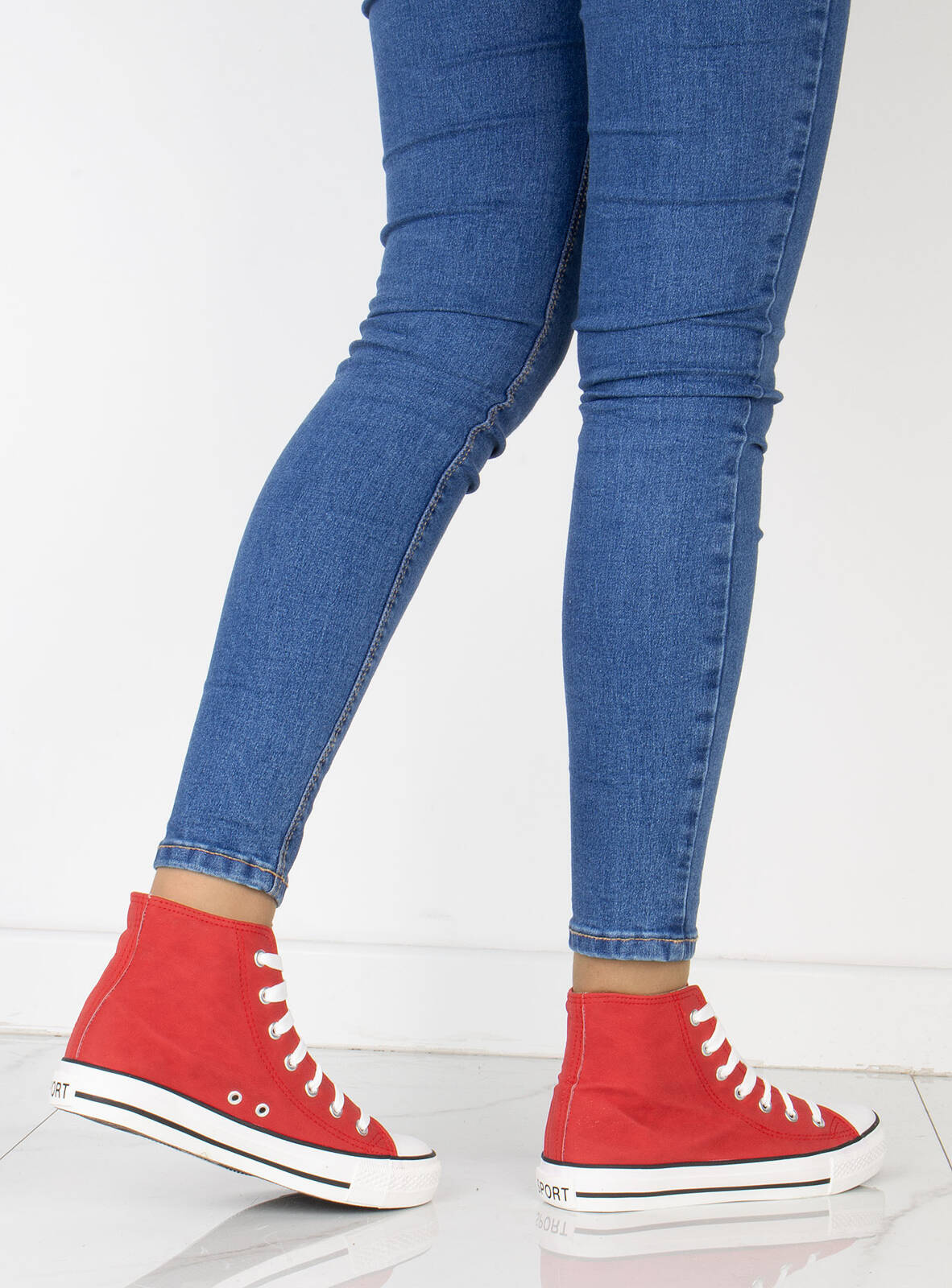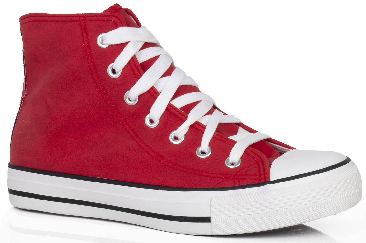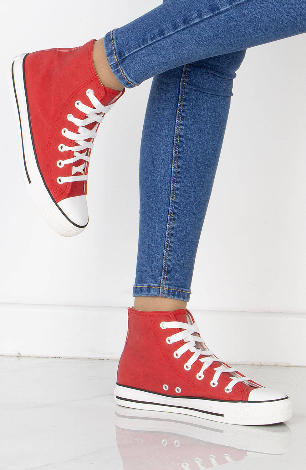 CZERWONE WYSOKIE TRAMPKI EKOSKÓRA SZNUROWANE