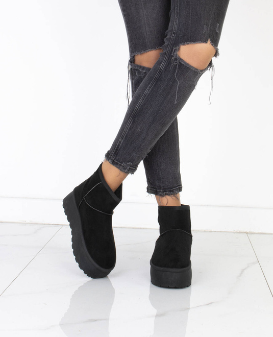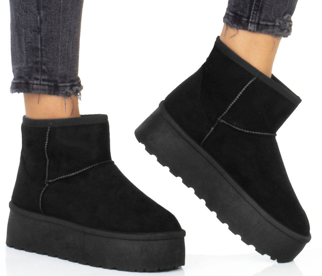 Cholewka śniegowców została wykonana z miękkiego zamszu, co nadaje im elegancki wygląd i jednocześnie zapewnia trwałość i odporność na wilgoć. Wewnętrzna część buta jest ocieplona mięciutkim i ciepłym futerkiem, które chroni stopy przed zimnem i zapewnia przyjemne uczucie ciepła.
