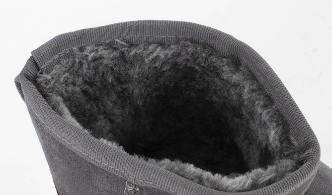 Cholewka śniegowców została wykonana z miękkiego zamszu, co nadaje im elegancki wygląd i jednocześnie zapewnia trwałość i odporność na wilgoć. Wewnętrzna część buta jest ocieplona mięciutkim i ciepłym futerkiem, które chroni stopy przed zimnem i zapewnia przyjemne uczucie ciepła.