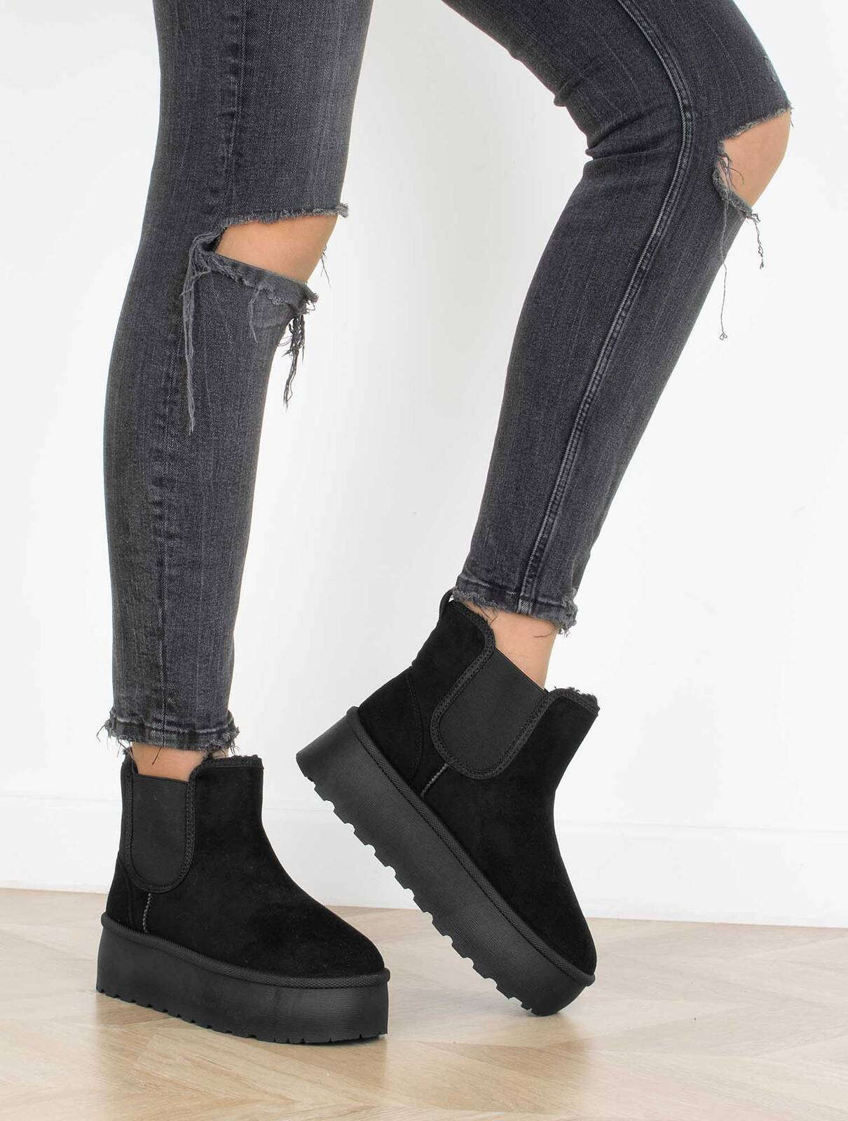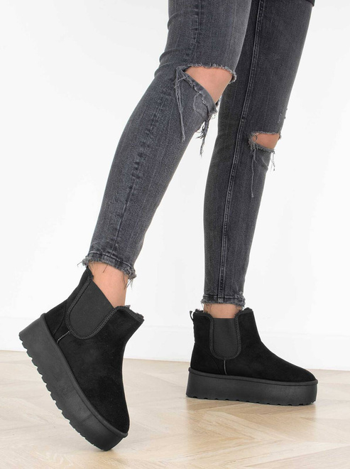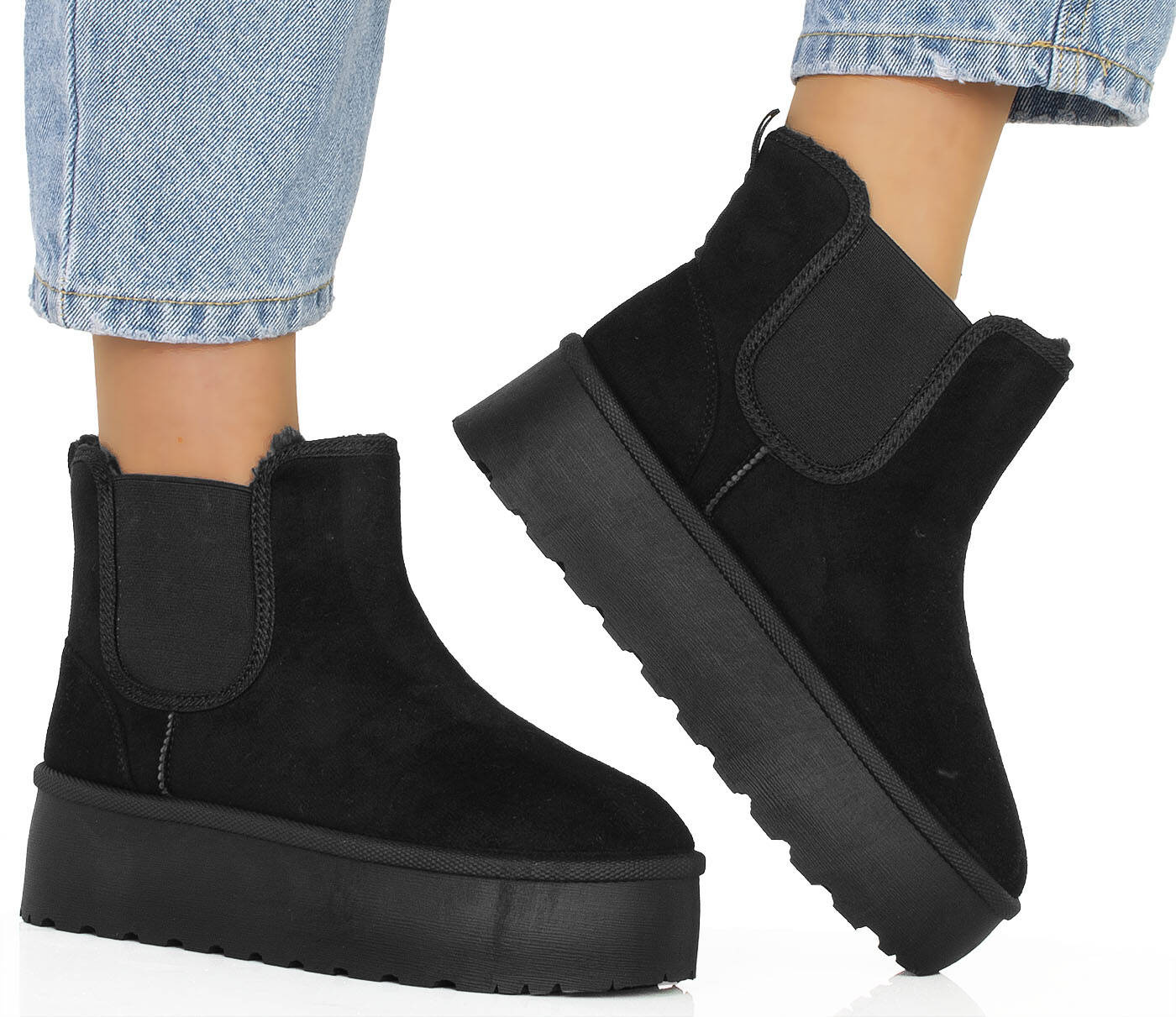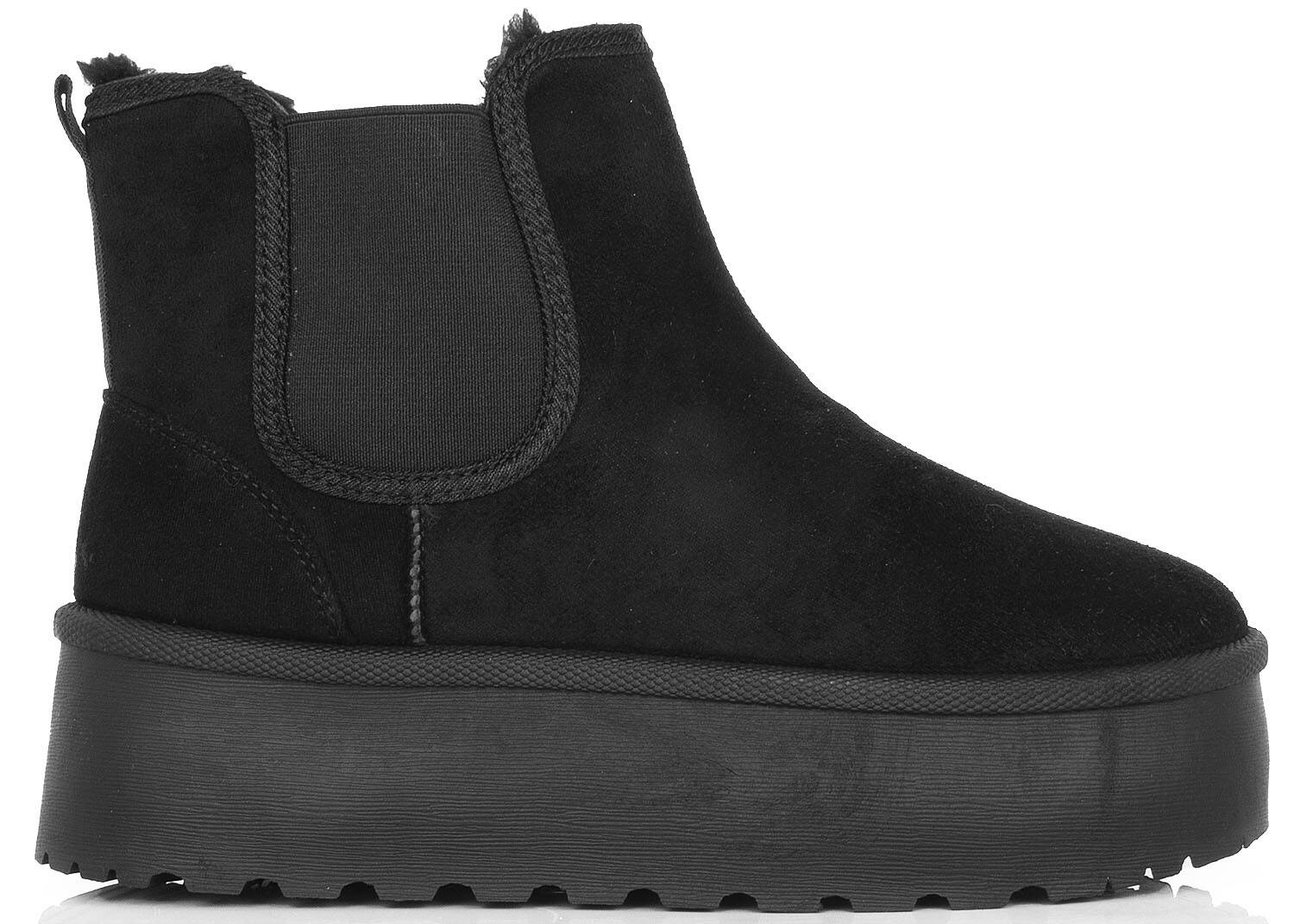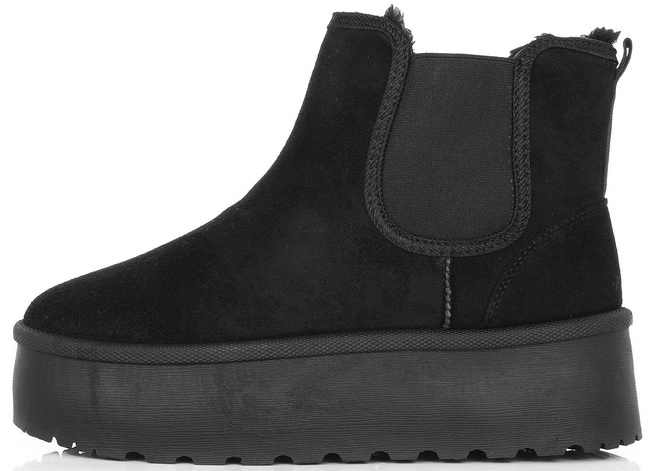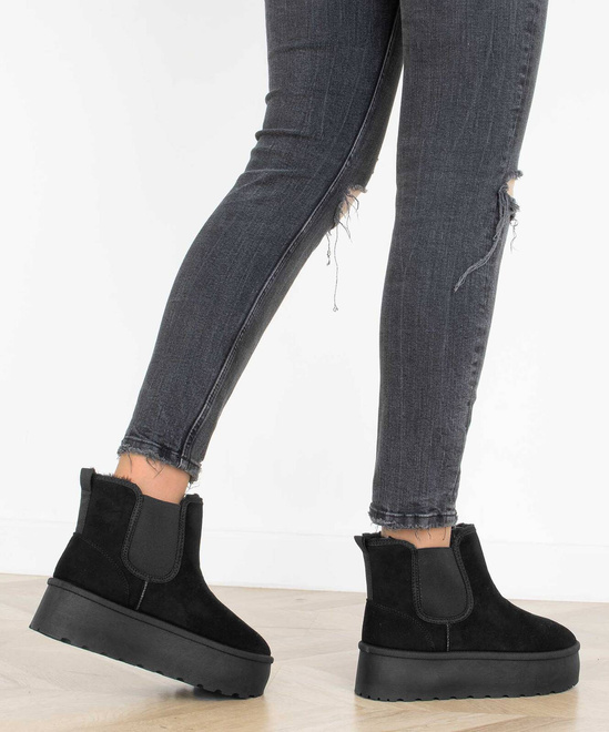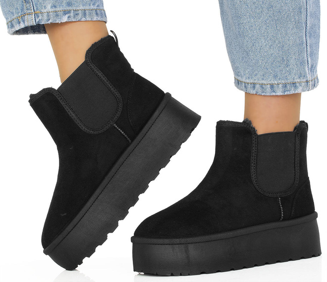 Cholewka śniegowców została wykonana z zamszu, który oprócz eleganckiego wyglądu charakteryzuje się wysoką trwałością. Wewnętrzna część buta została ocieplona ciepłym futerkiem, które doskonale chroni przed niskimi temperaturami i utrzymuje stopę w przyjemnym cieple. Futerko jest miękkie i przyjemne w dotyku, zapewniając wygodę podczas noszenia.
