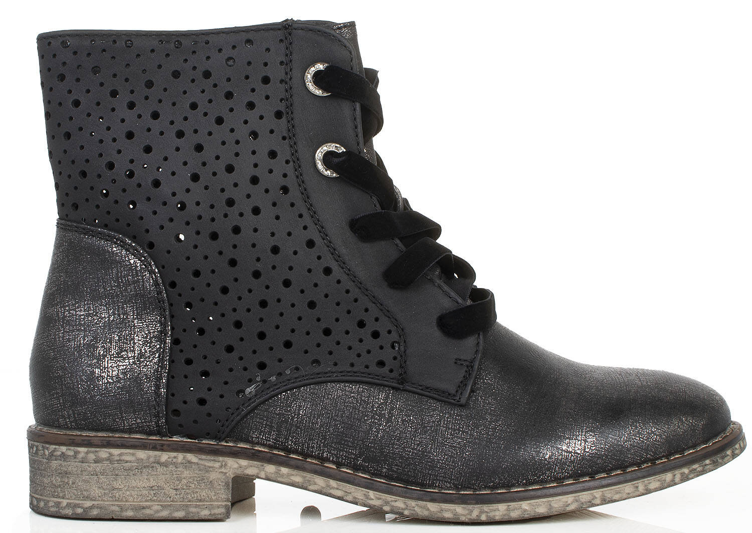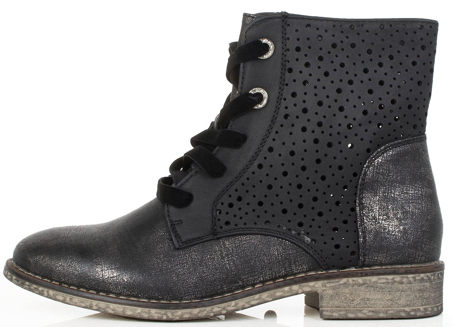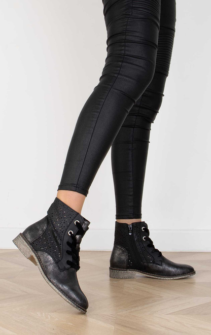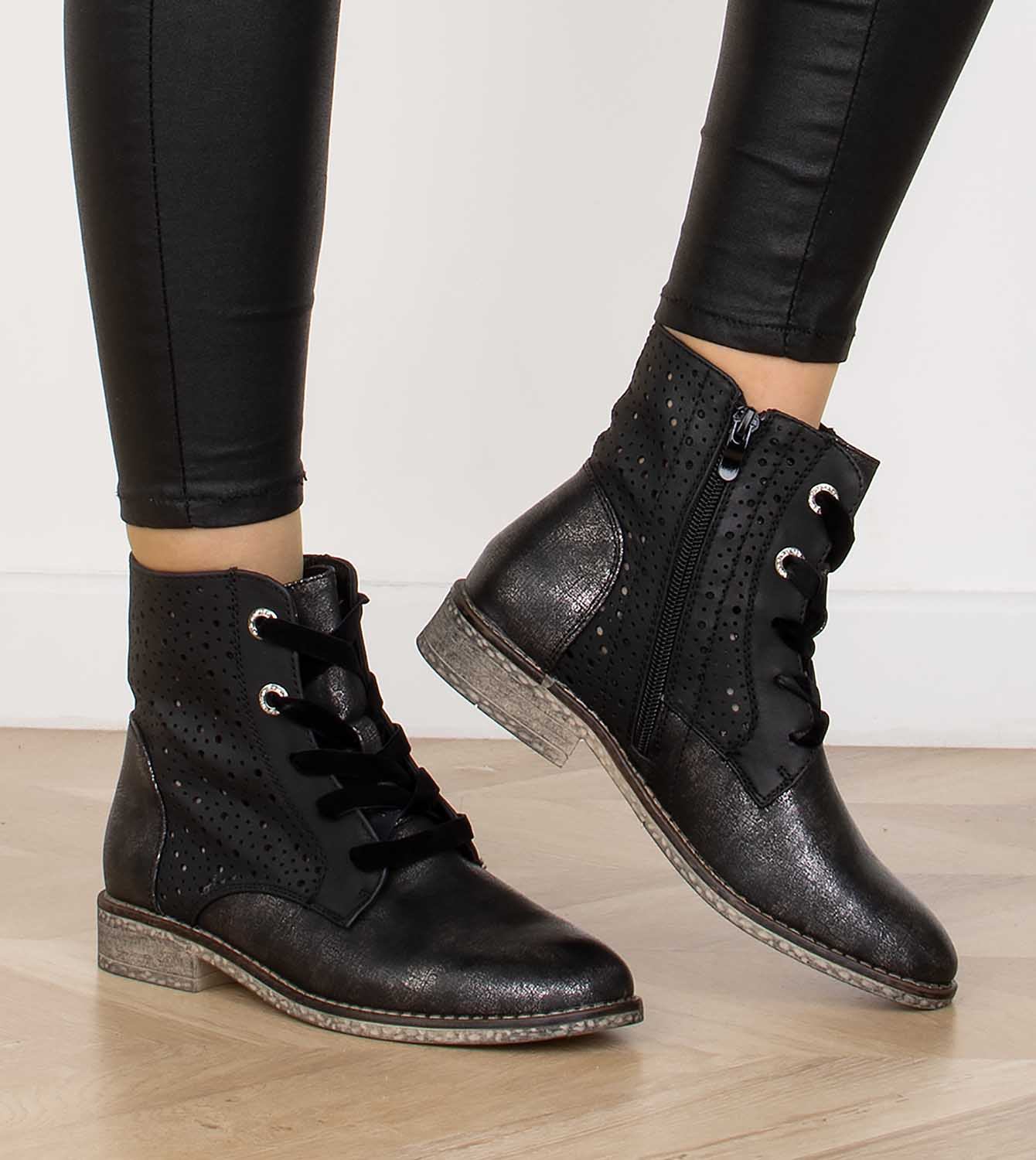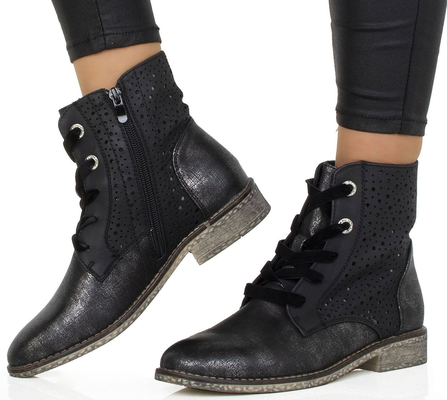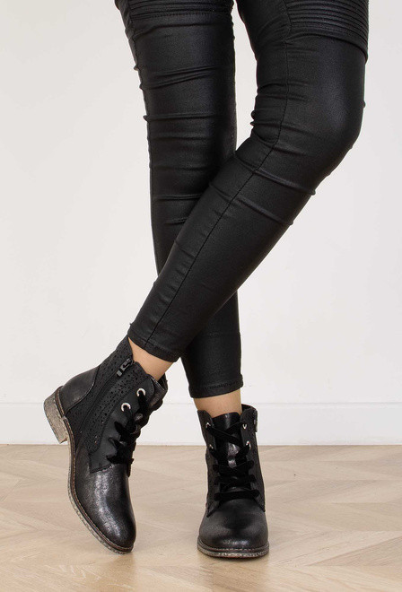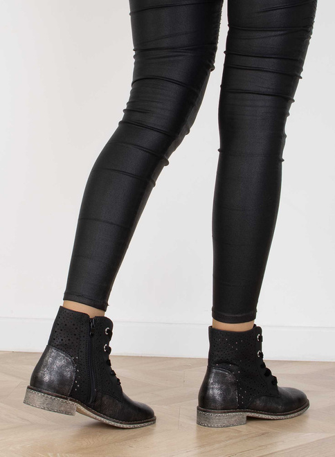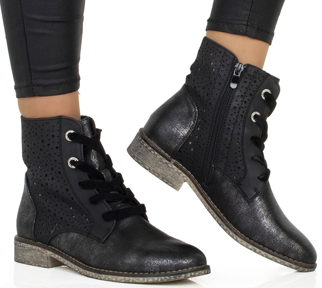 CZARNE BOTKI TRAPERY AŻUROWE SZNUROWANE