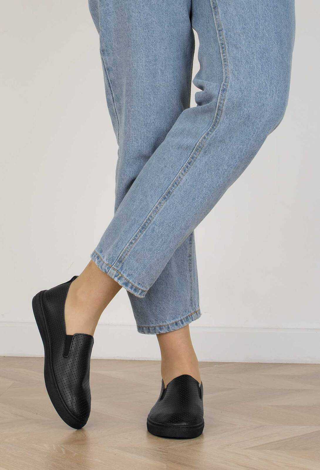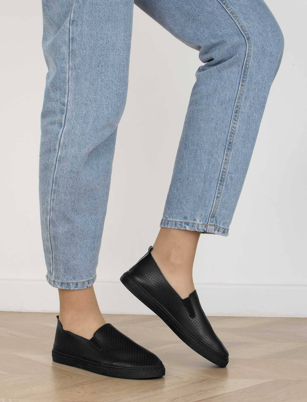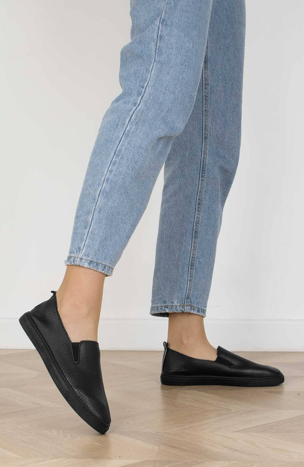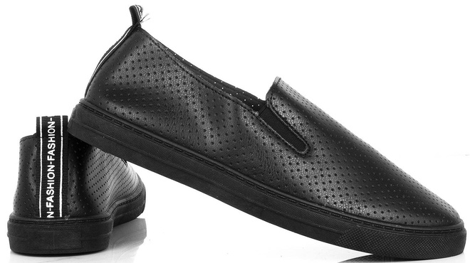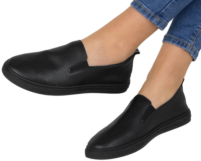CZARNE TRAMPKI TENISÓWKI AŻUROWE SLIP ON