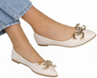 Te balerinki charakteryzują się klasycznym fasonem, który zyskuje dodatkowy urok dzięki złotej ozdobie umieszczonej na cholewce. Wykonane są z ekoskóry, co sprawia, że są przyjazne dla zwierząt i jednocześnie odporne na warunki atmosferyczne.