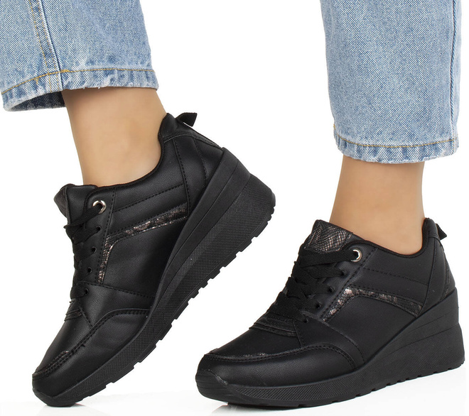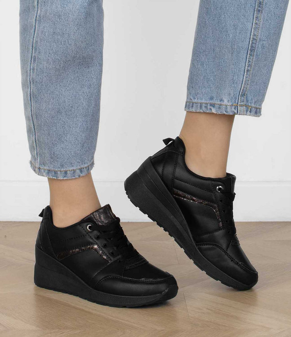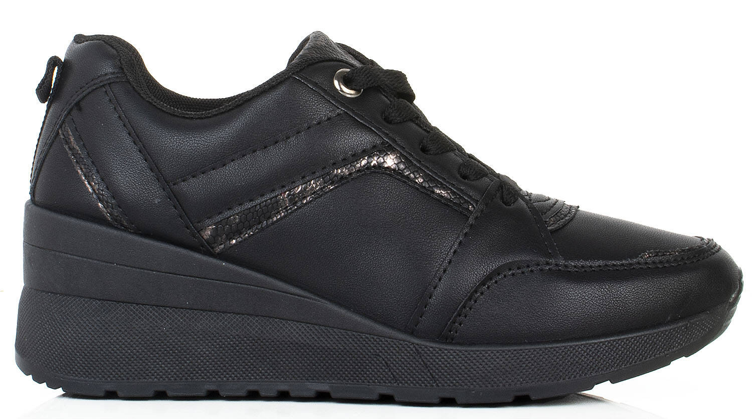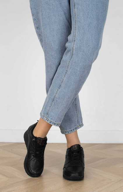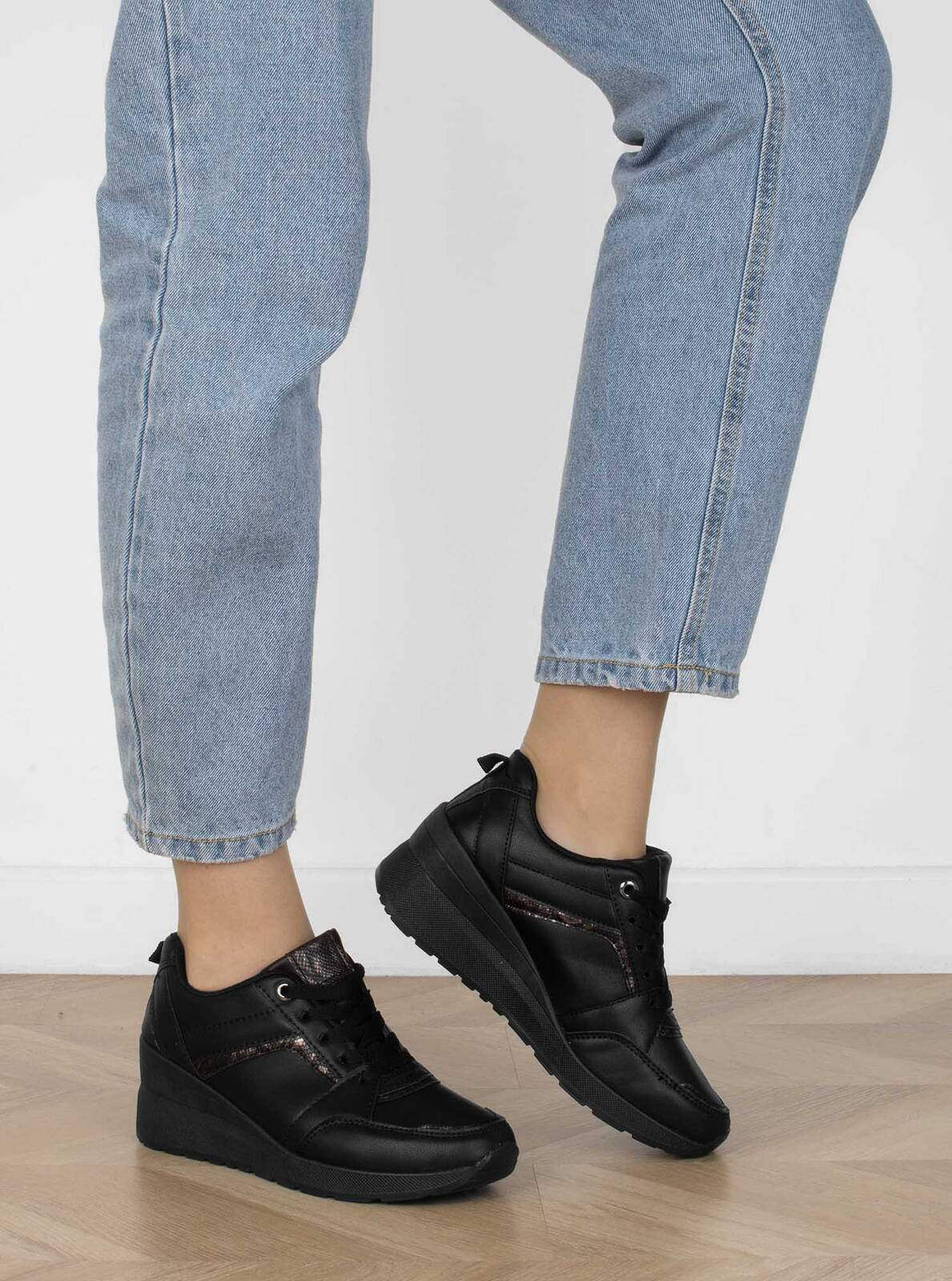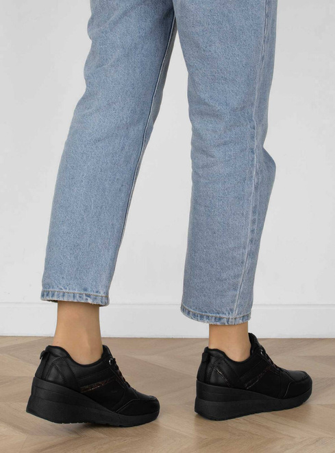 CZARNE SNEAKERSY NA PLATFORMIE SKÓRZANE KOURTNEY