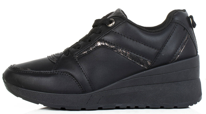 Nasze sneakersy skórzane, wyprodukowane z najwyższej jakości ekoskóry, to odpowiedź na Twoje potrzeby. Przyjazny dla środowiska i modny design sportowego stylu sprawią, że będziesz wyglądać modnie, a dodatkowo miękka cholewka zapewni Ci wygodę przy każdym kroku. Jeśli to Cię nie przekonuje, ten model cechuje się również miękką i przyjemną wkładką tkaninową, dzięki której twój komfort noszenia jest dostosowany do Twoich potrzeb. No i oczywiście sznurowane zapięcie, dzięki któremu dobierzesz idealną precyzję dopasowania. Te sneakersy skórzane to strzał w dziesiątkę dla każdej Pani, która ceni sobie modny i funkcjonalny styl.