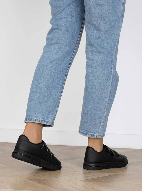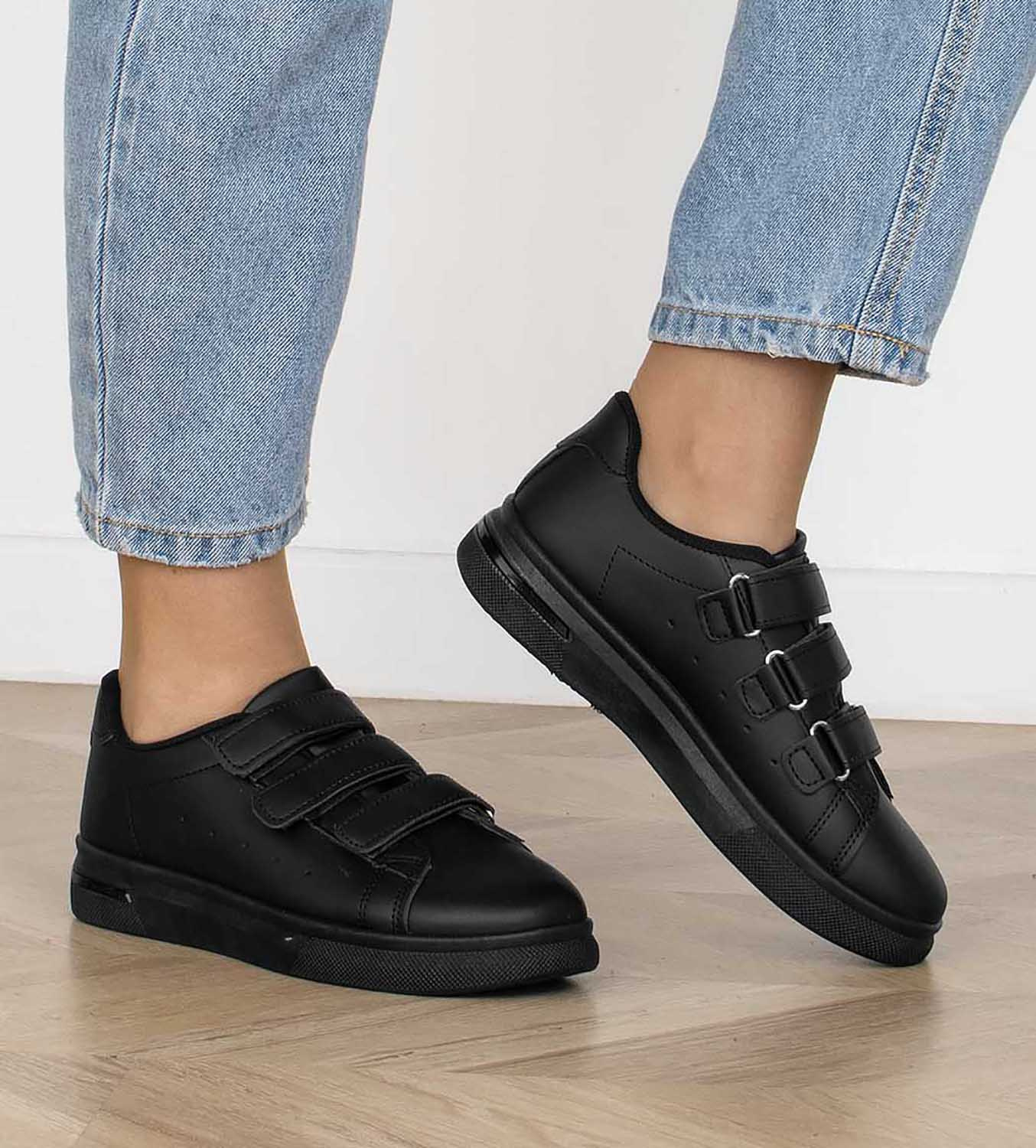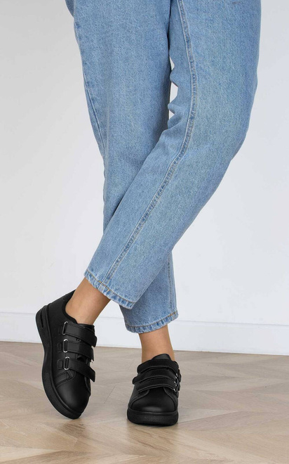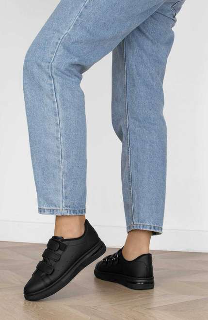 Sportowe sneakersy skórzane na rzepy, idealne dla kobiet ceniących sobie wygodę i styl w codziennych aktywnościach. Te buty są połączeniem funkcjonalności, komfortu i modnego designu, zapewniając doskonałe dopasowanie do różnych stylizacji.