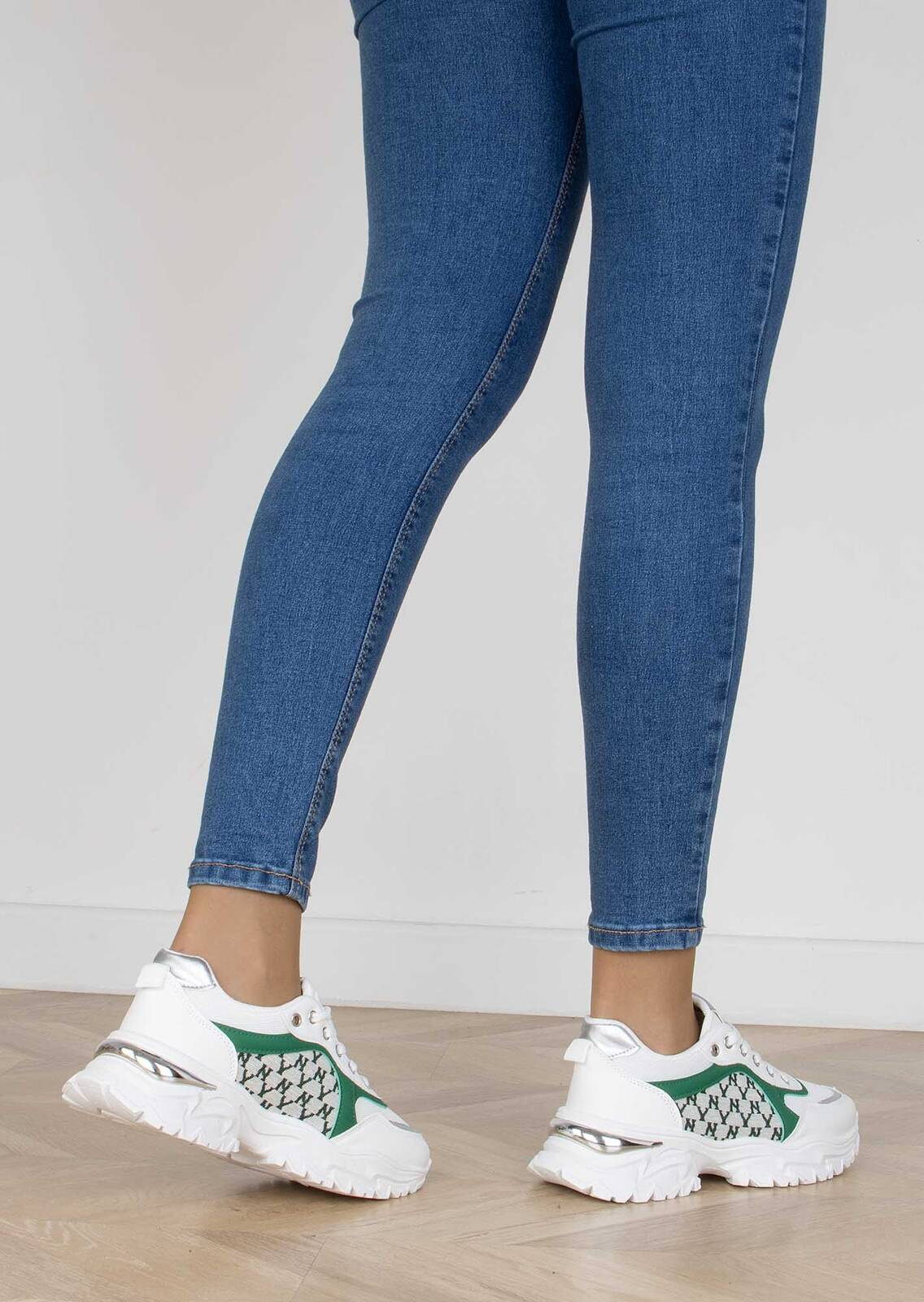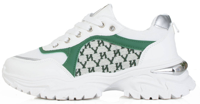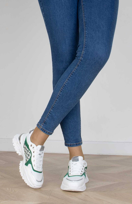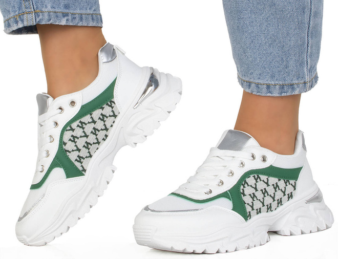 Nasze sneakersy skórzane, wyprodukowane z najwyższej jakości ekoskóry, to odpowiedź na Twoje potrzeby. Przyjazny dla środowiska i modny design sportowego stylu sprawią, że będziesz wyglądać modnie, a dodatkowo miękka cholewka zapewni Ci wygodę przy każdym kroku. Jeśli to Cię nie przekonuje, ten model cechuje się również miękką i przyjemną wkładką tkaninową, dzięki której twój komfort noszenia jest dostosowany do Twoich potrzeb. No i oczywiście sznurowane zapięcie, dzięki któremu dobierzesz idealną precyzję dopasowania. Te sneakersy skórzane to strzał w dziesiątkę dla każdej Pani, która ceni sobie modny i funkcjonalny styl.
