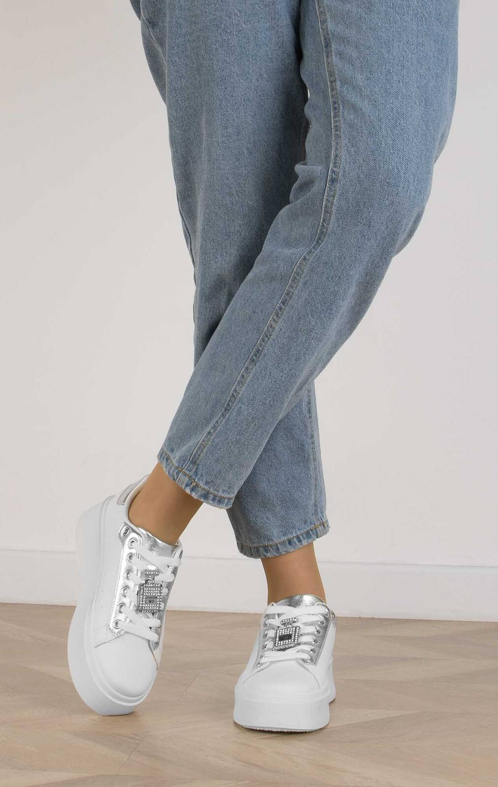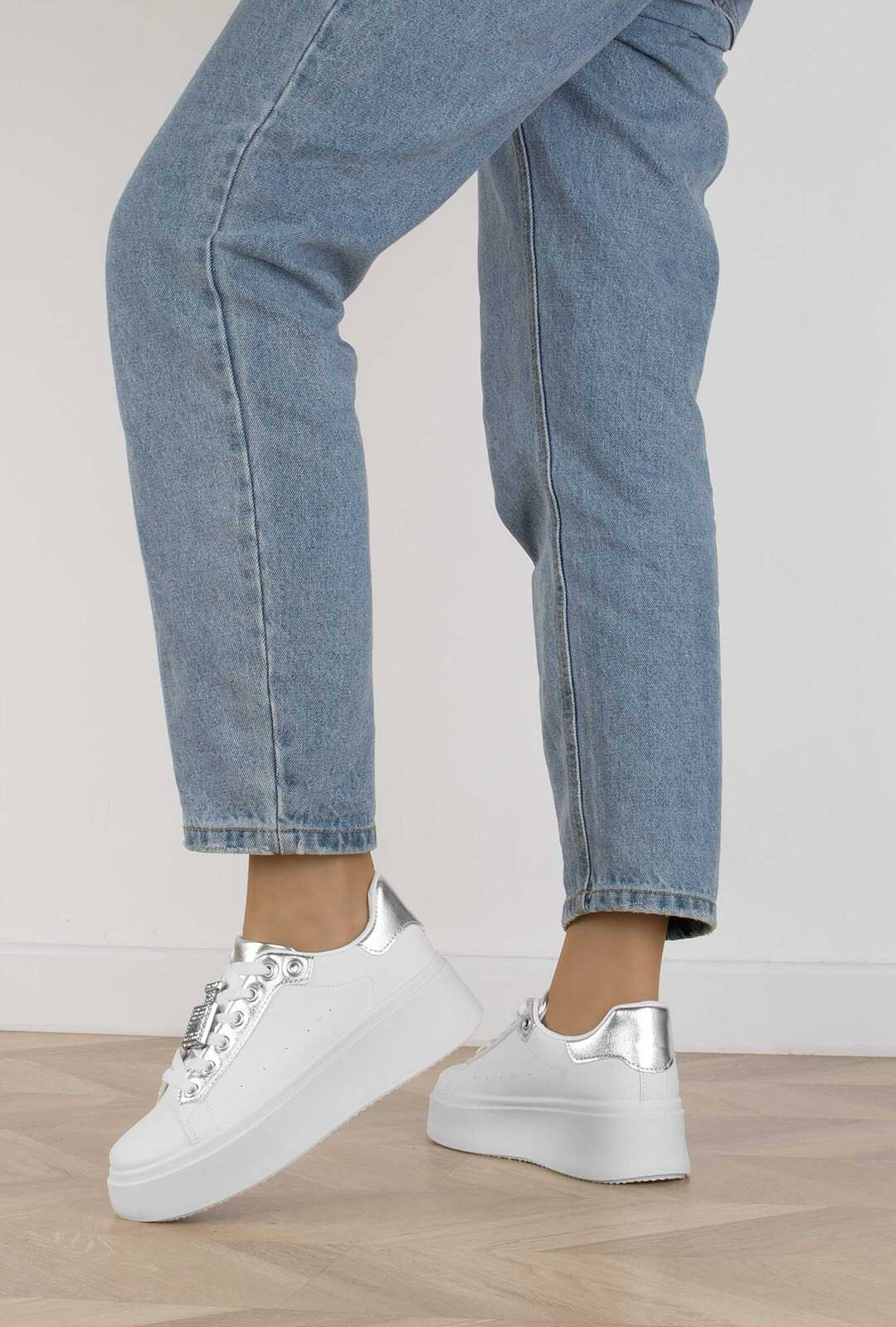 BIAŁE SNEAKERSY SKÓRZANE NA PLATFORMIE DAIZY