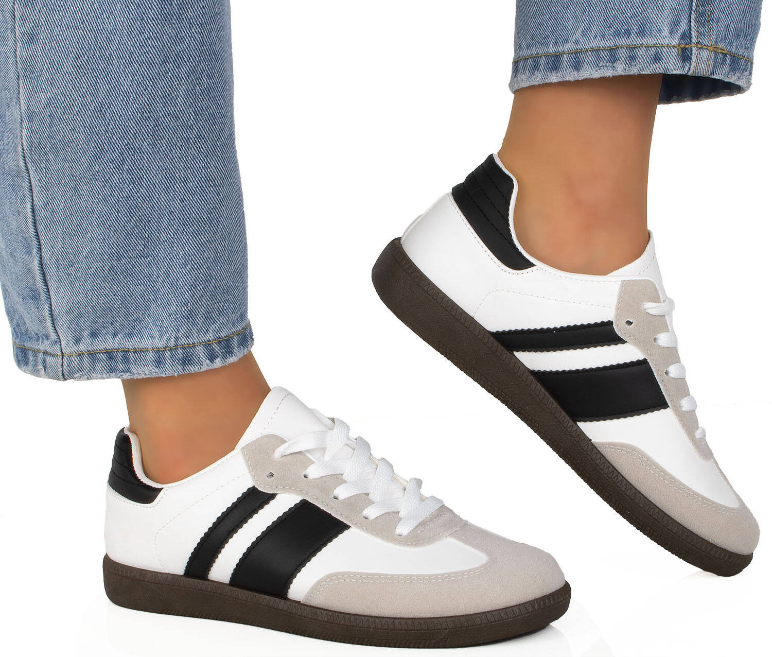 BIAŁE SNEAKERSY TRAMPKI WSTAWKI SKÓRZANE SPORTOWE SANDRA