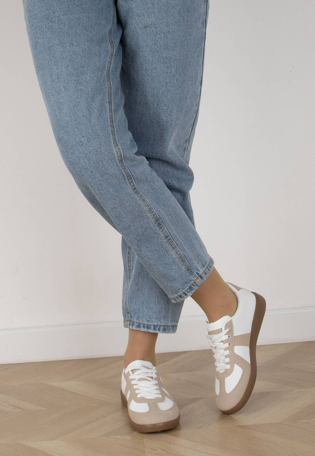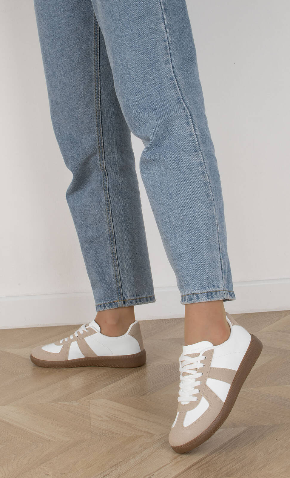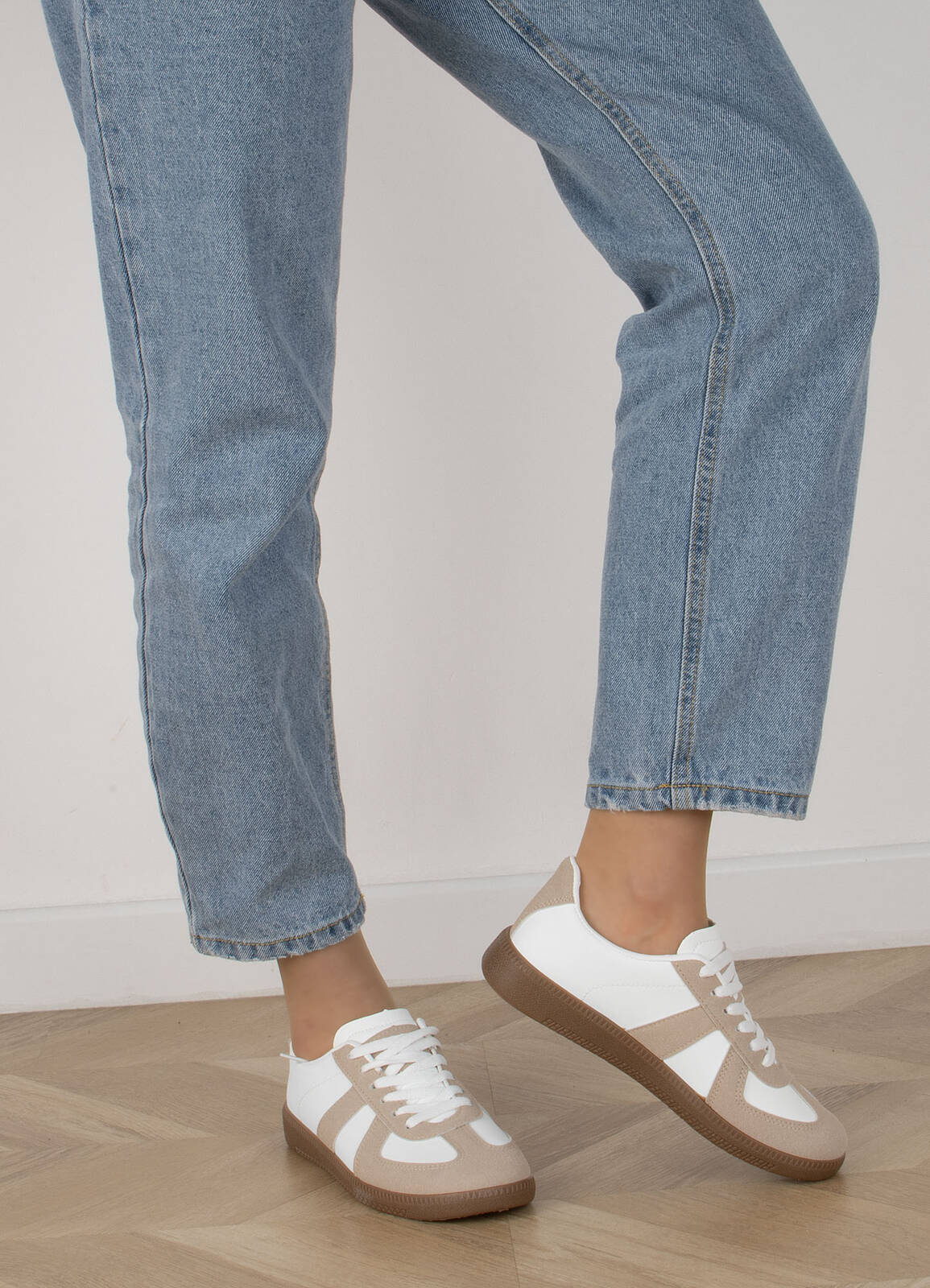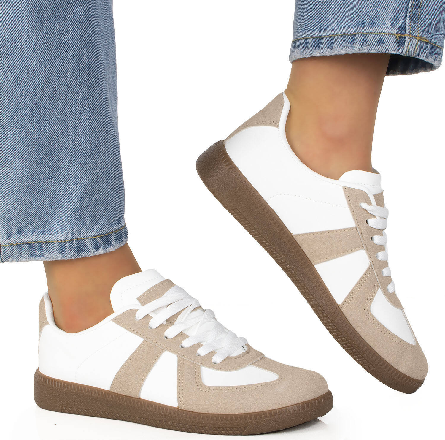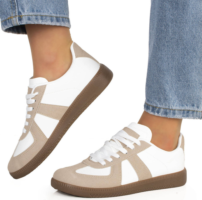 Jeśli szukasz idealnych butów na wiosenne dni, to beżowe sneakersy sportowe trampki są idealnym wyborem. Wykonane są z wysokiej jakości ekoskóry w połączeniu z wstawkami z zamszu, dzięki czemu są nie tylko trwałe, ale również bardzo stylowe. Choć są to buty sportowe, możesz je nosić na co dzień, gdyż są bardzo wygodne. Piękny układ kolorystyczny sprawia, że buty idealnie pasują do wiosennych stylizacji. Beżowe sneakersy sportowe trampki to idealny wybór dla wszystkich kobiet, które lubią wyglądać modnie i czuć się wygodnie.