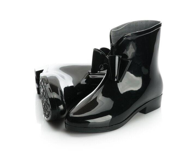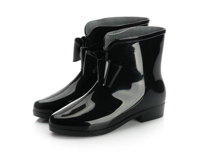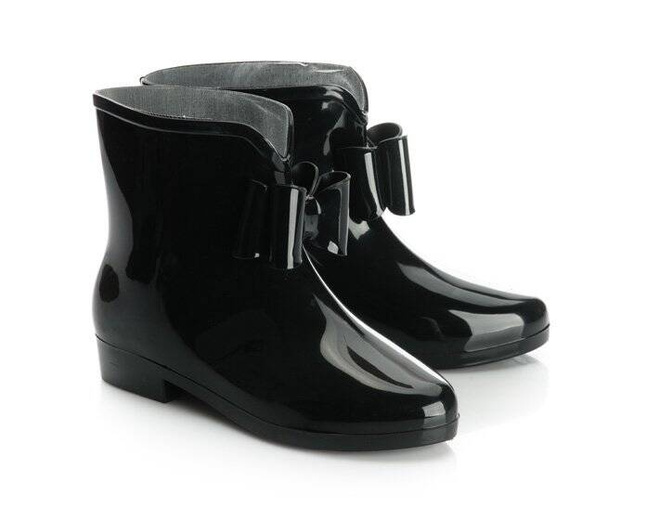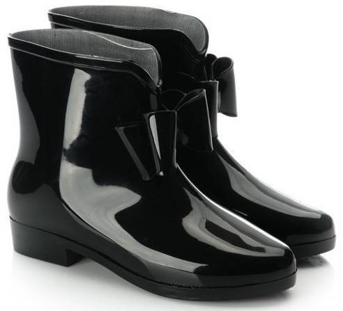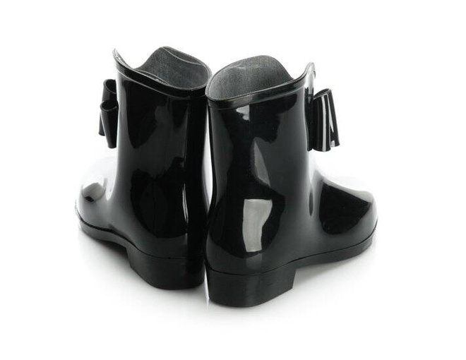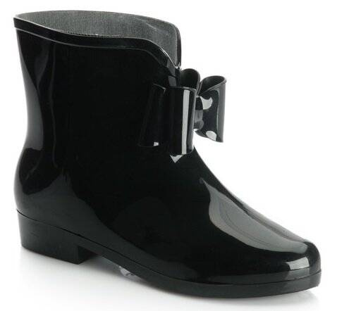 CZARNE KRÓTKIE KALOSZE GUMOWE KOKARDA