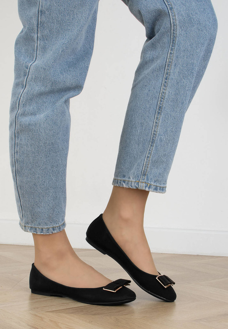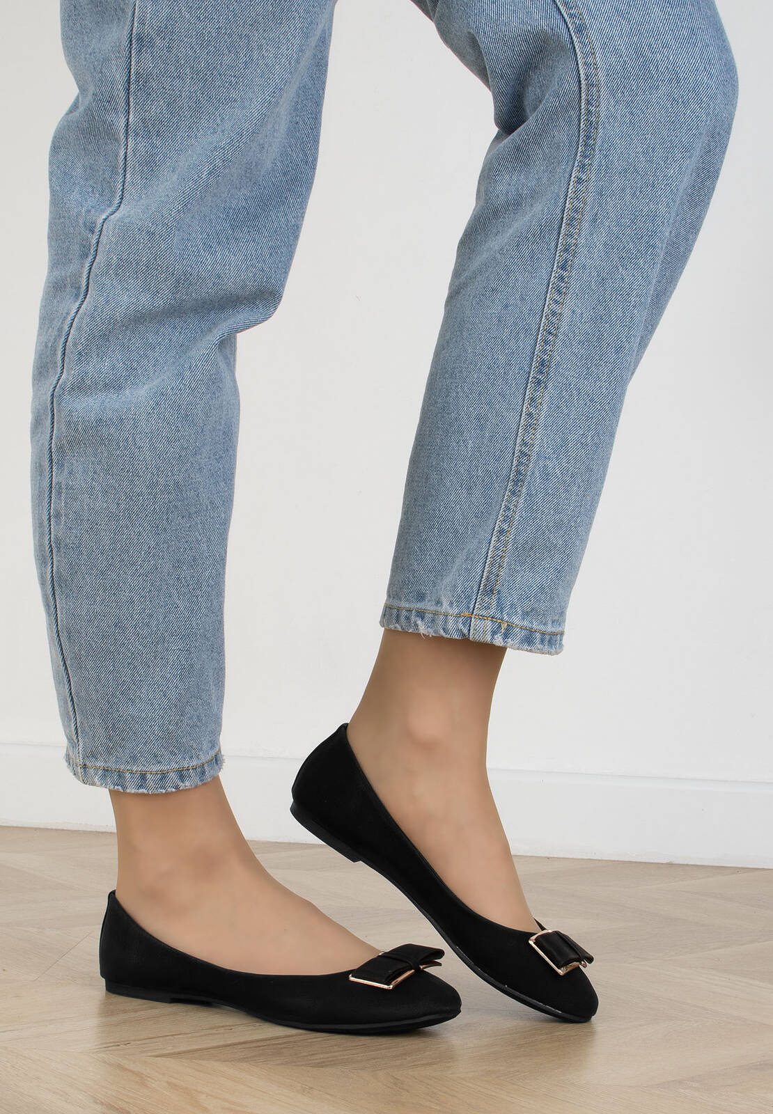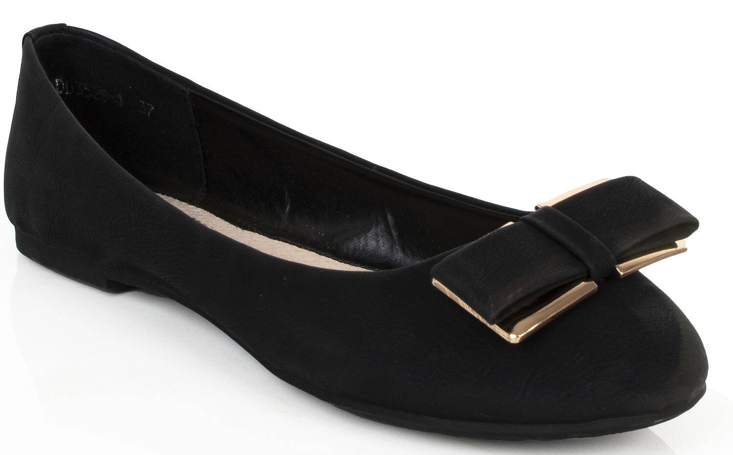 CZARNE DAMSKIE BALERINKI KLASYCZNE KOKARDKA GERDA