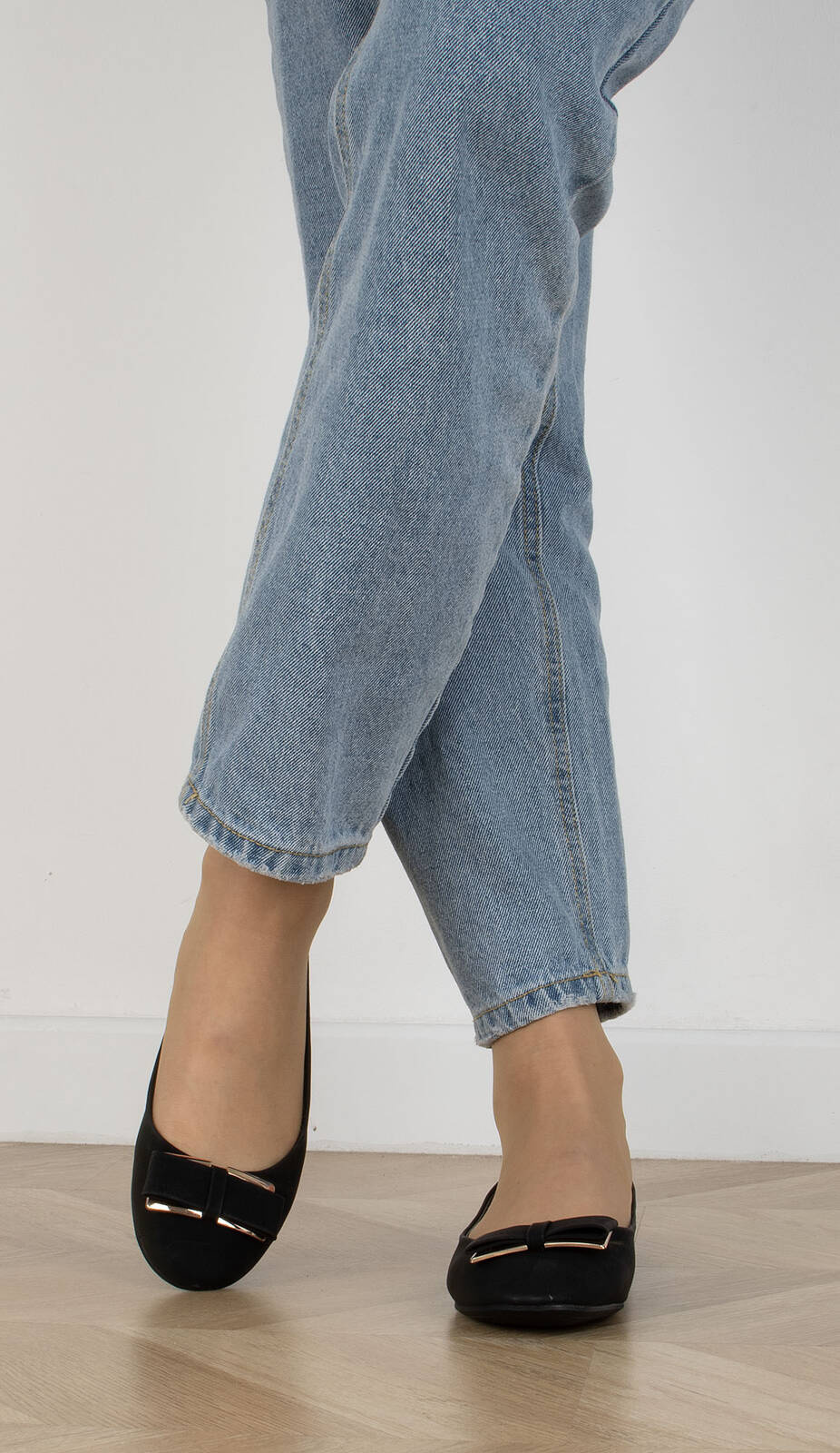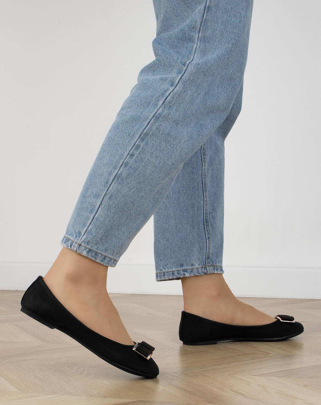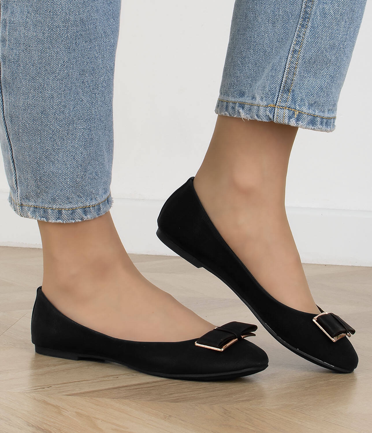 CZARNE DAMSKIE BALERINKI KLASYCZNE KOKARDKA GERDA
