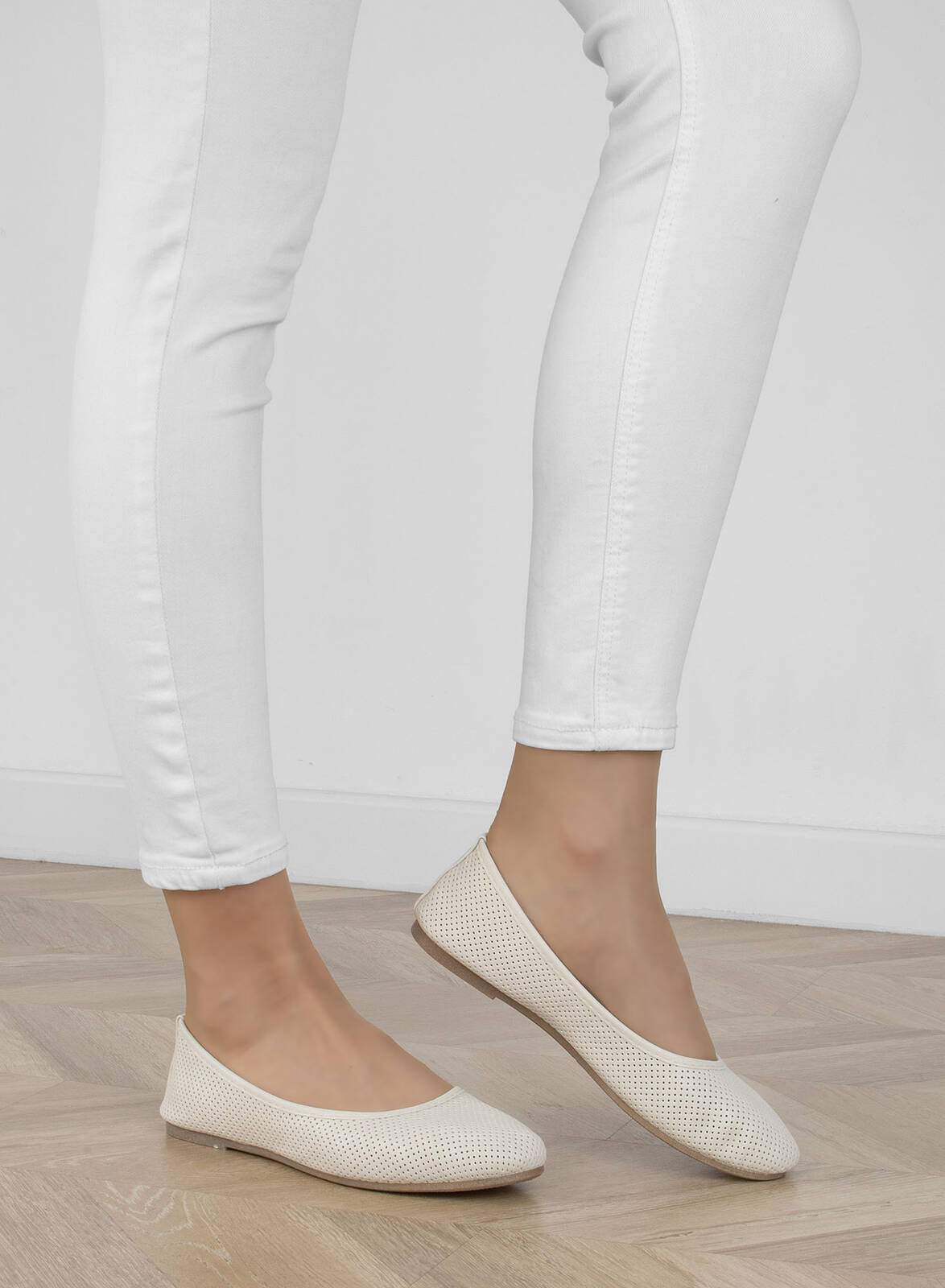 Beżowe ażurowe balerinki to połączenie elegancji i lekkości, które sprawiają, że są one doskonałym wyborem na wiele okazji. Ich delikatny wzór ażurowy nadaje im subtelności i kobiecego uroku, jednocześnie pozostając uniwersalnymi, co sprawia, że pasują zarówno do casualowych, jak i bardziej formalnych stylizacji. Te balerinki cechują się klasycznym fasonem i subtelnie wykończonymi detalami, które dodają im uroku i elegancji. Ich czarna kolorystyka sprawia, że są one łatwe do zestawienia z różnymi ubraniami, natomiast ażurowy wzór nadaje im lekkości i delikatności. Beżowe ażurowe balerinki są doskonałym wyborem dla każdej kobiety, która pragnie wyglądać elegancko i kobieco, nie rezygnując przy tym z wygody i komfortu. Ich uniwersalny design sprawia, że będą one doskonałym uzupełnieniem zarówno codziennych, jak i bardziej wyjątkowych stylizacji.