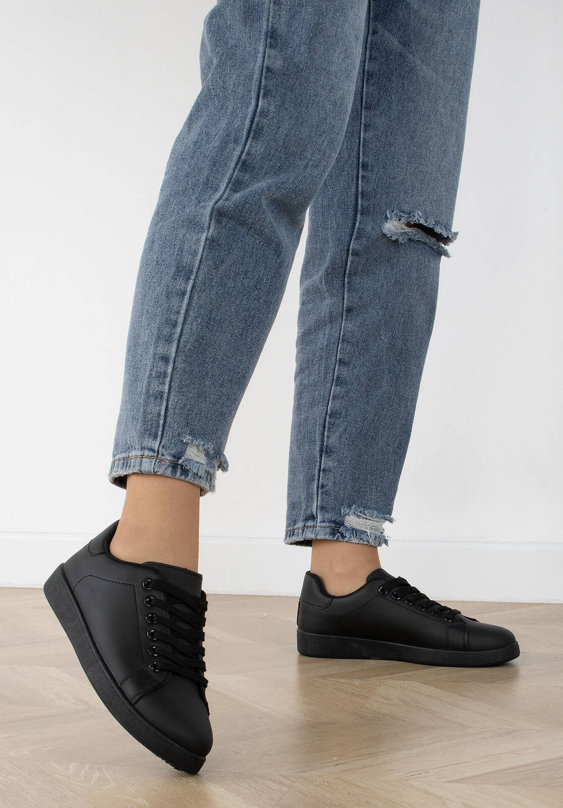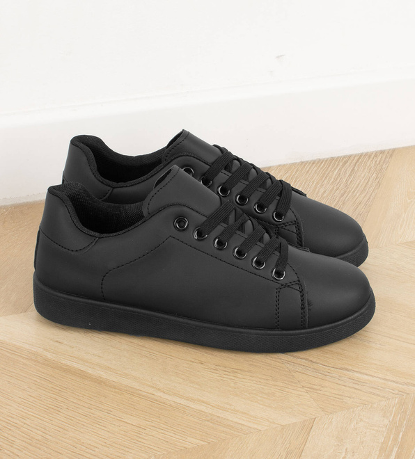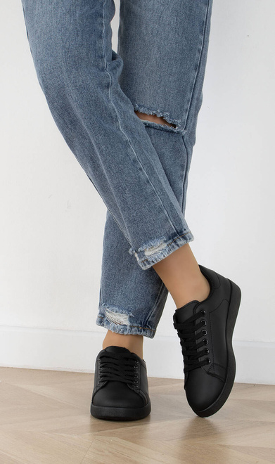 CZARNE SNEAKERSY TRAMPKI SKÓRZANE KIDA