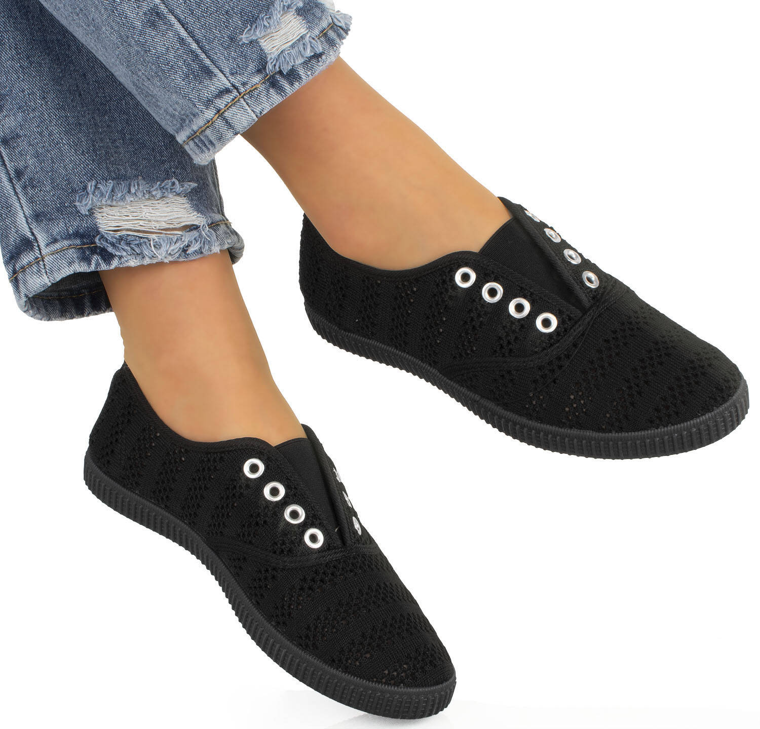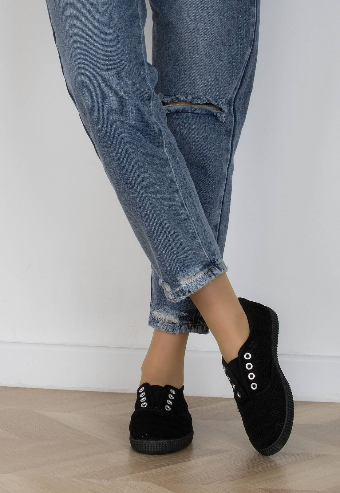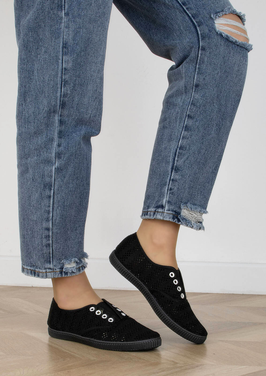 CZARNE TENISÓWKI TRAMPKI KORONKOWE KLASYCZNE