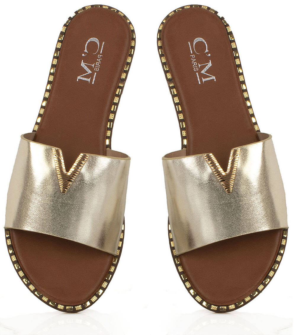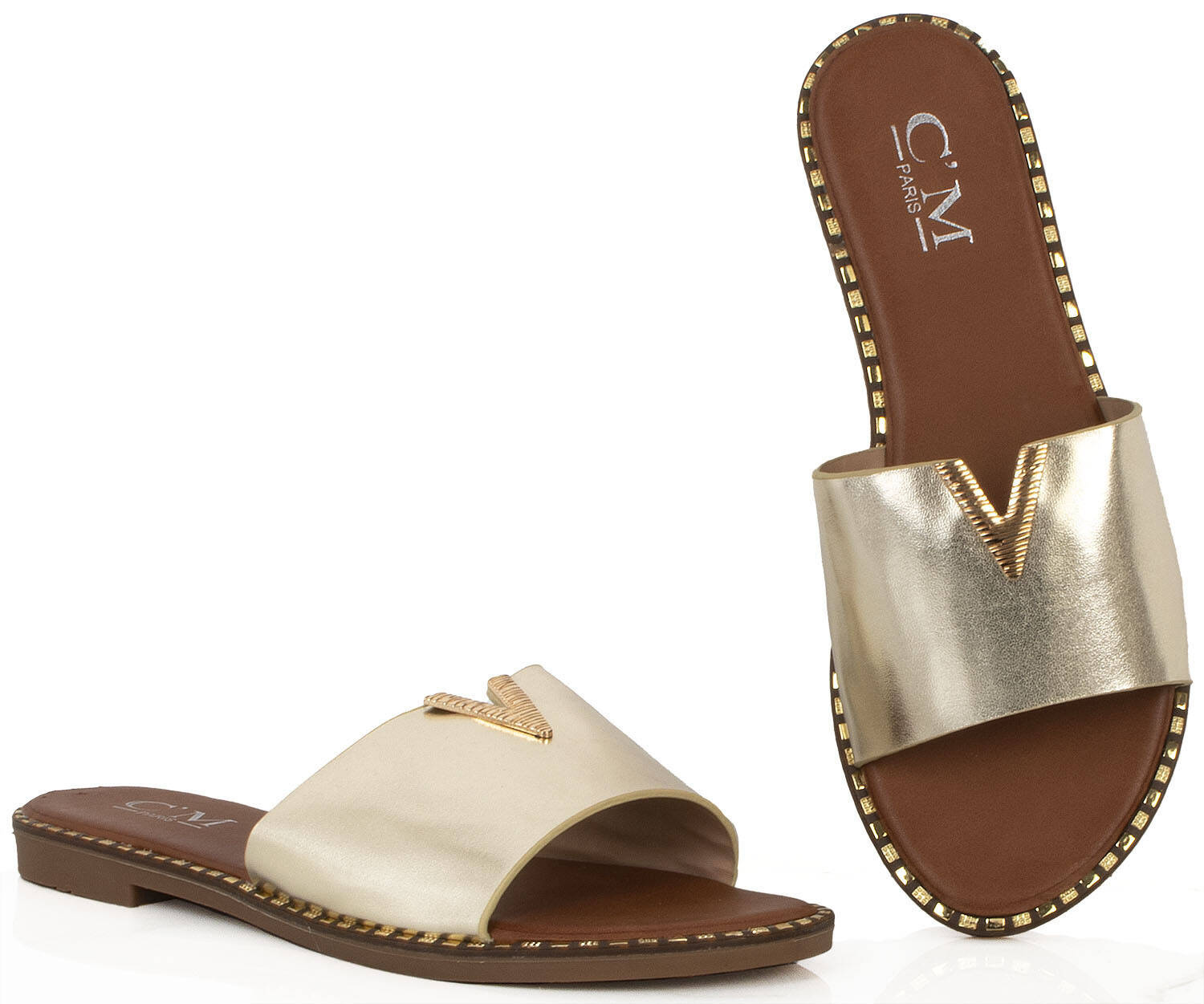 ZŁOTE KLAPKI WSUWANE DAMSKIE EKOSKÓRA SLIP ON KIARA