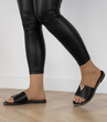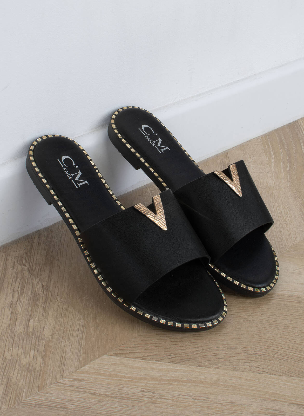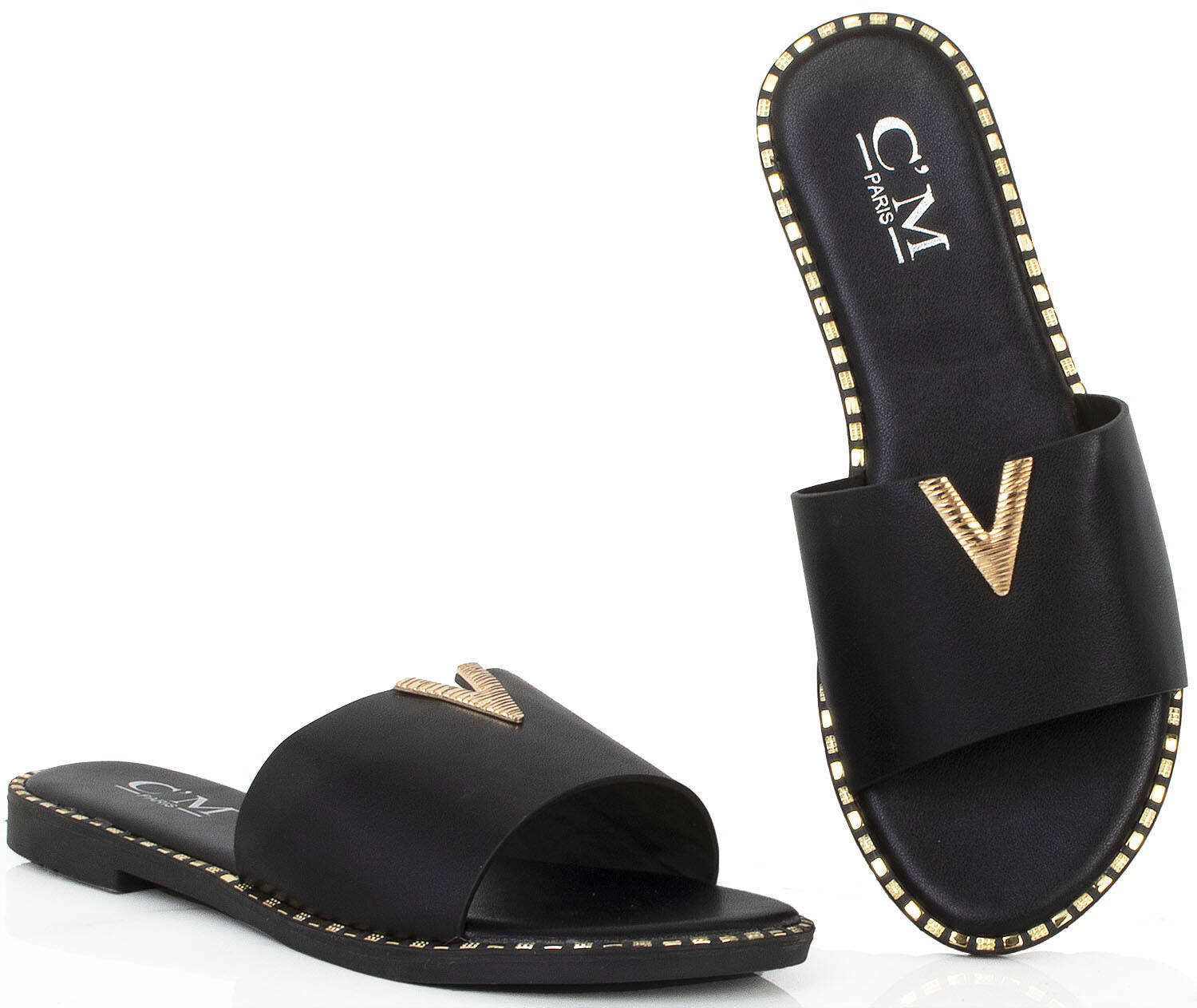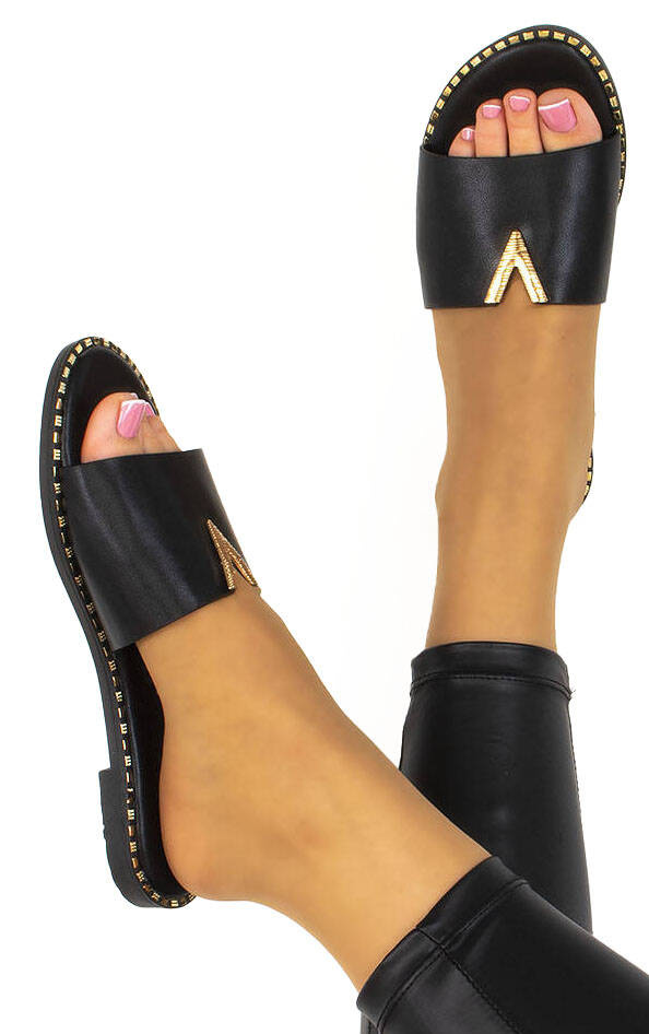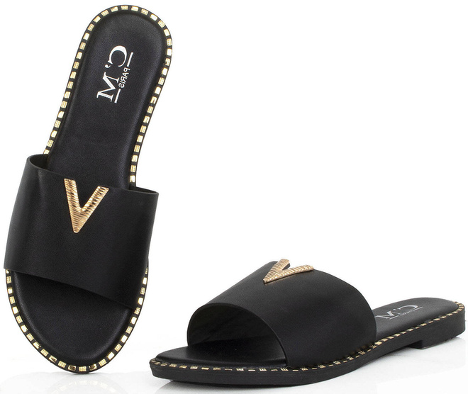 CZARNE DAMSKIE SKÓRZANE KLAPKI ELEGANCKIE WSUWANE KIARA