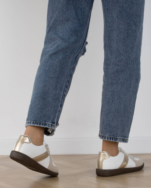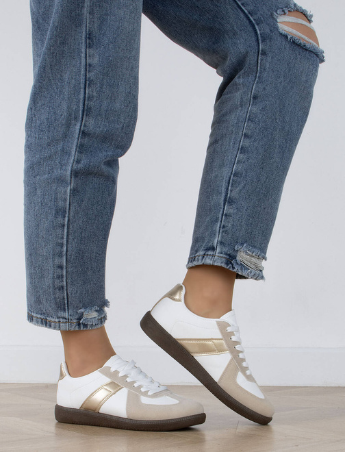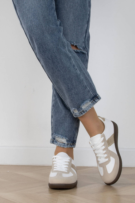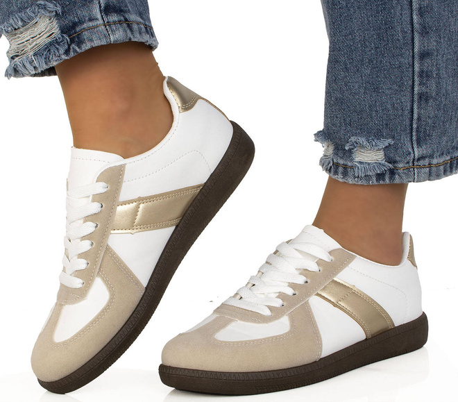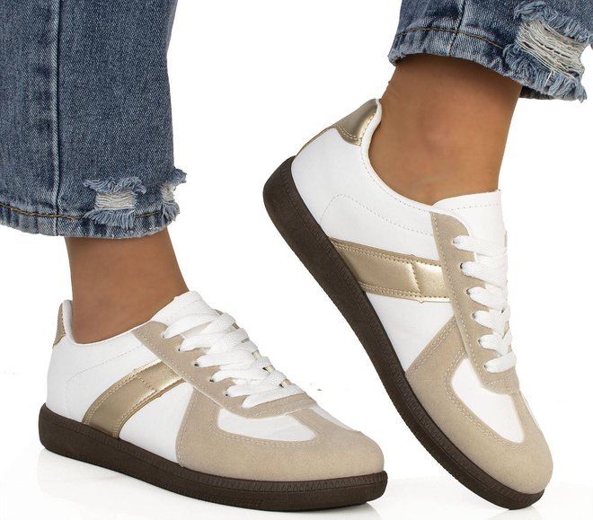 BIAŁE SNEAKERSY TRAMPKI WSTAWKI SKÓRZANE SPORTOWE GOMBIA