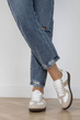 Nasze sneakersy skórzane, wyprodukowane z najwyższej jakości ekoskóry, to odpowiedź na Twoje potrzeby. Przyjazny dla środowiska i modny design sportowego stylu sprawią, że będziesz wyglądać modnie, a dodatkowo miękka cholewka zapewni Ci wygodę przy każdym kroku. Jeśli to Cię nie przekonuje, ten model cechuje się również miękką i przyjemną wkładką tkaninową, dzięki której twój komfort noszenia jest dostosowany do Twoich potrzeb. No i oczywiście sznurowane zapięcie, dzięki któremu dobierzesz idealną precyzję dopasowania. Te sneakersy skórzane to strzał w dziesiątkę dla każdej Pani, która ceni sobie modny i funkcjonalny styl.