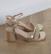 ZŁOTE KLASYCZNE SANDAŁY NA SŁUPKU SKÓRZANE