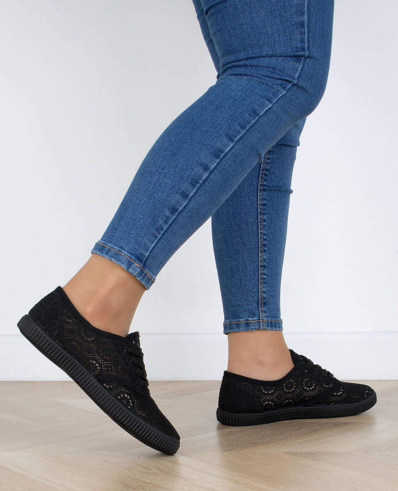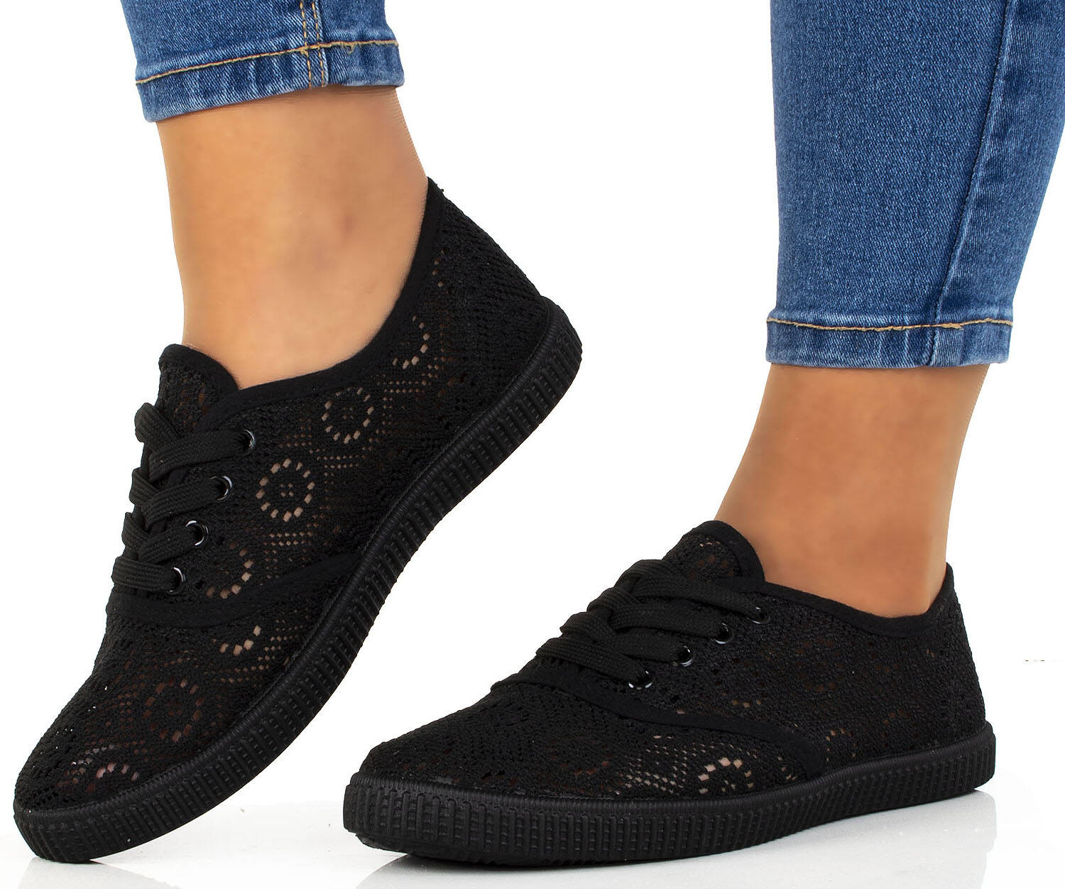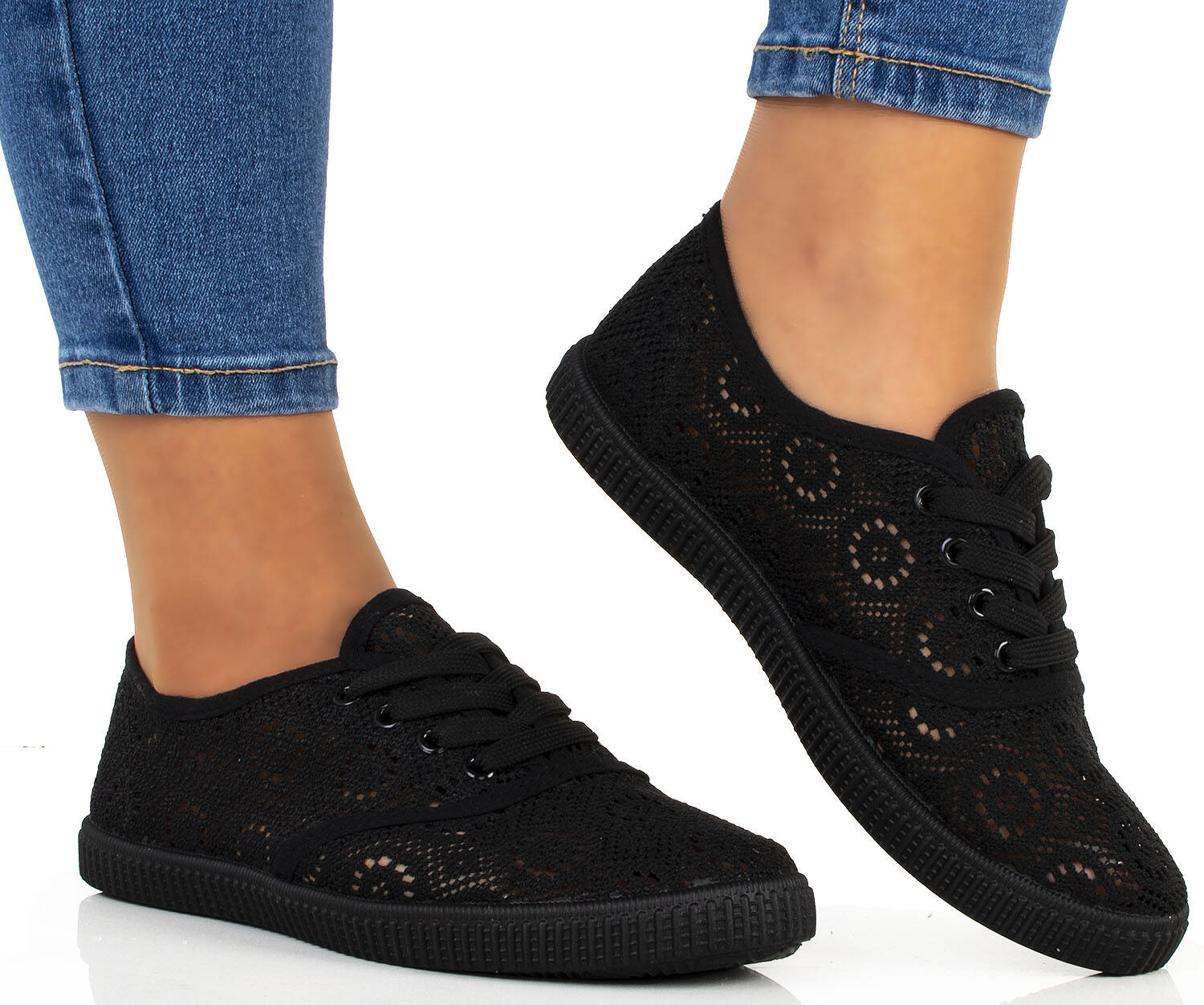 CZARNE TENISÓWKI TRAMPKI KORONKOWE KLASYCZNE