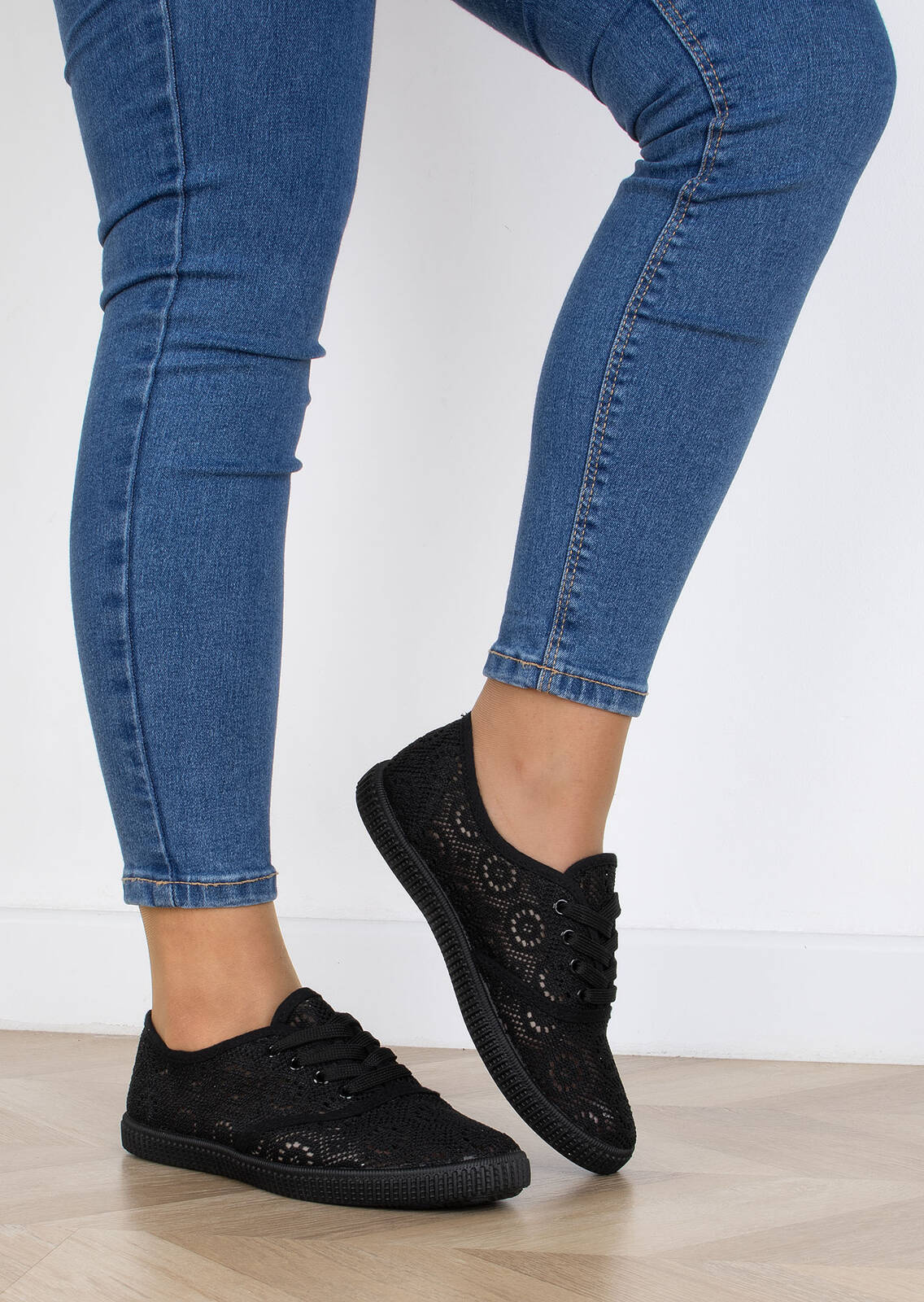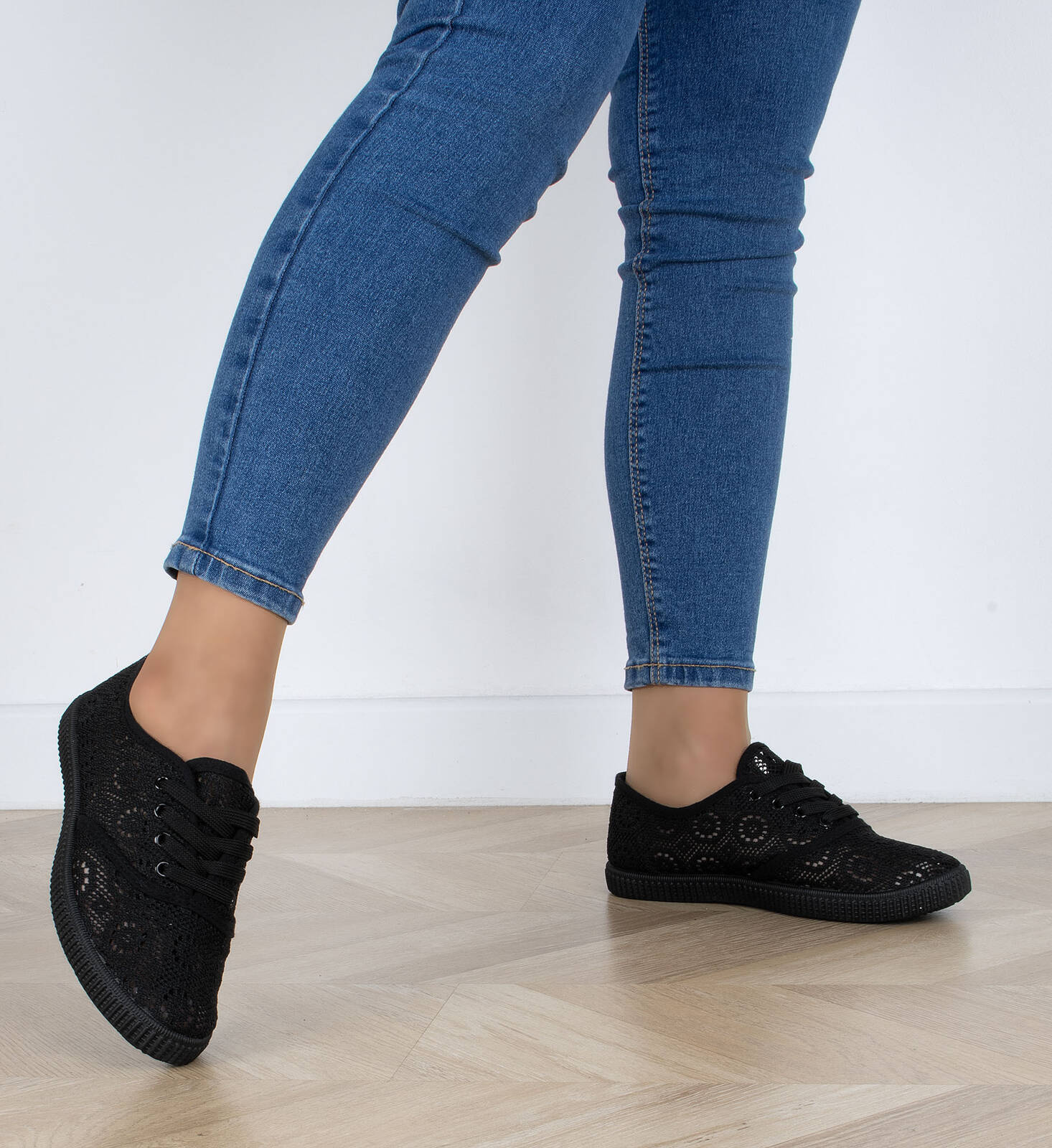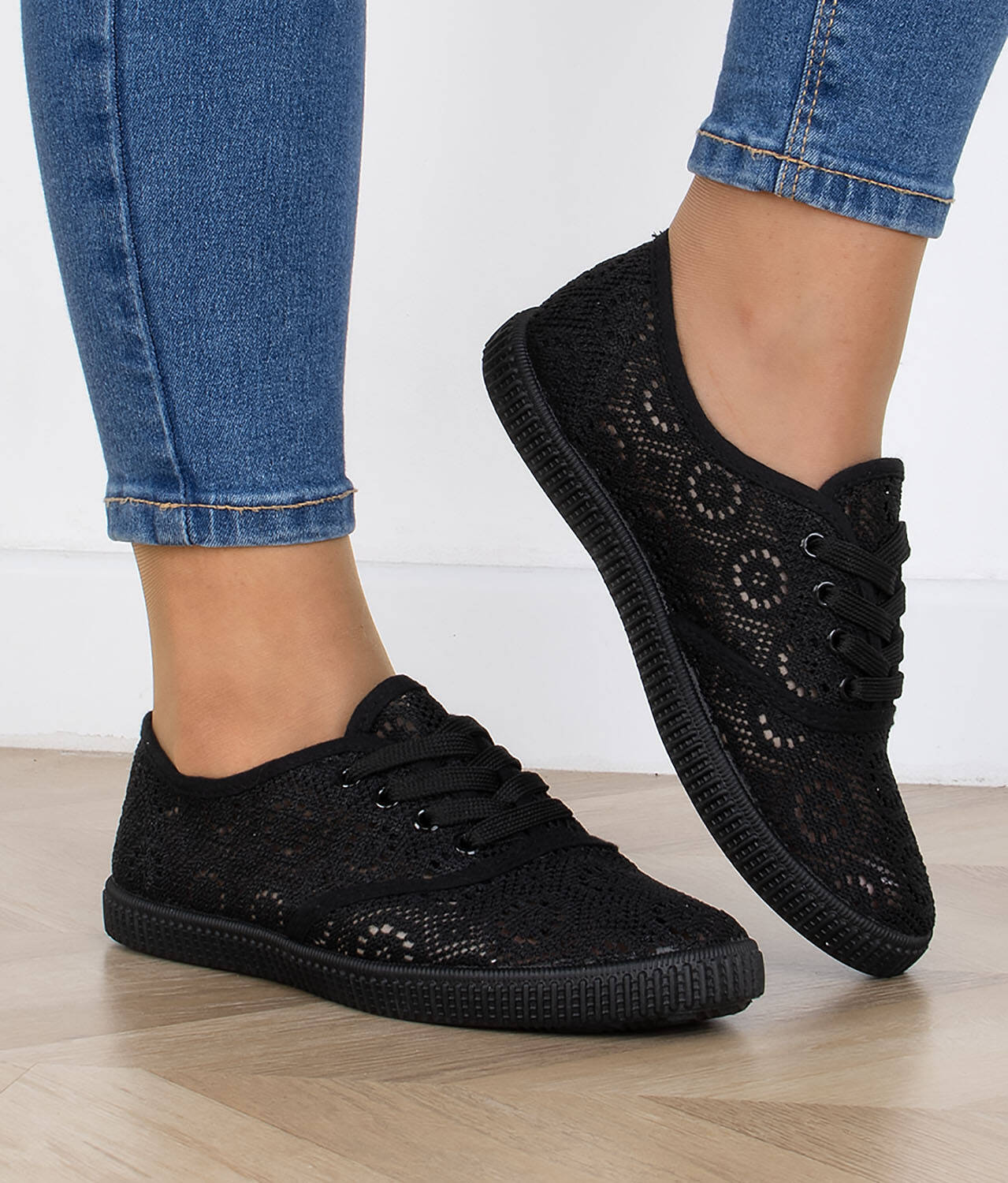 CZARNE TENISÓWKI TRAMPKI KORONKOWE KLASYCZNE