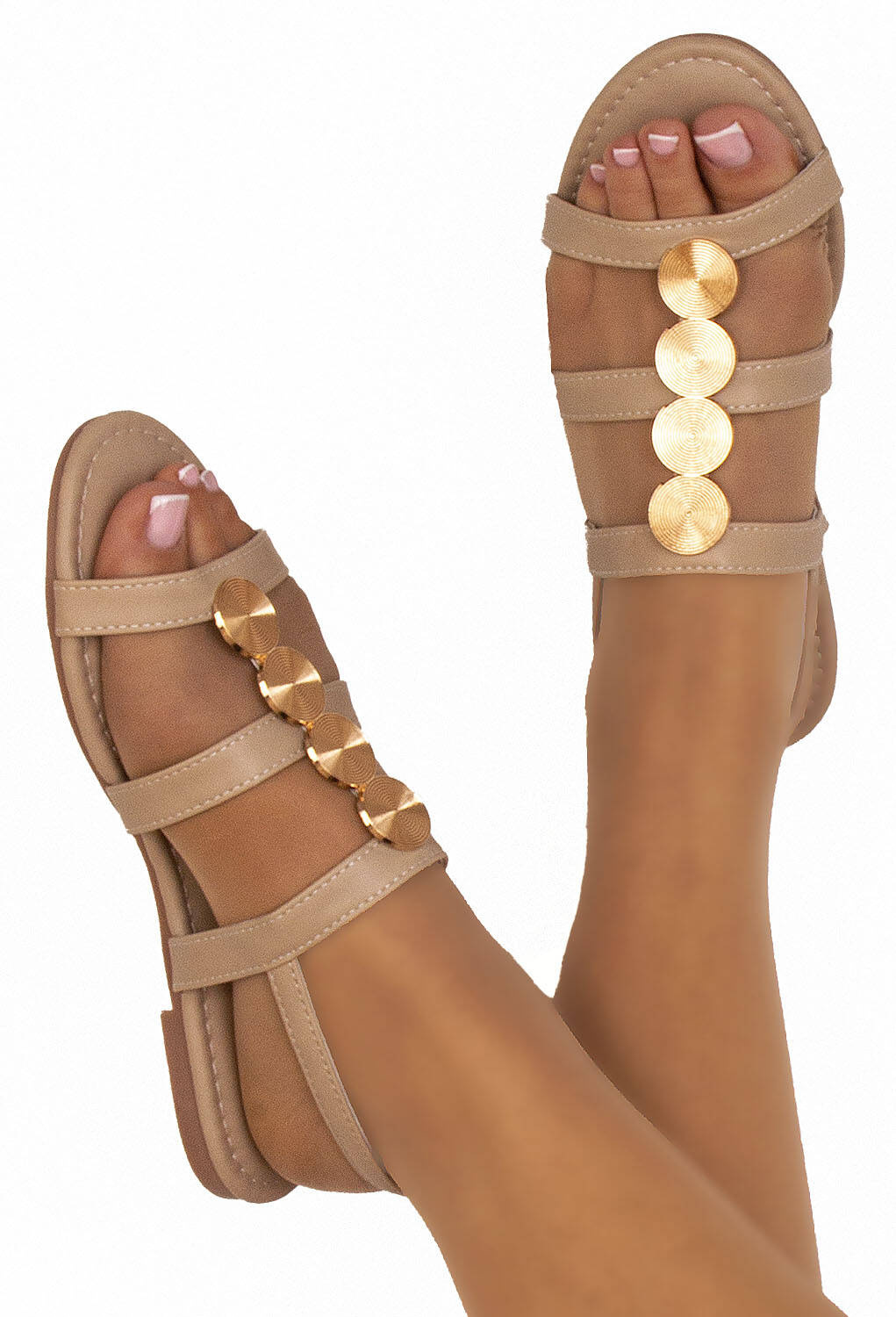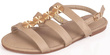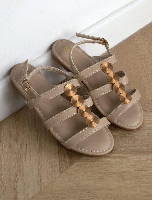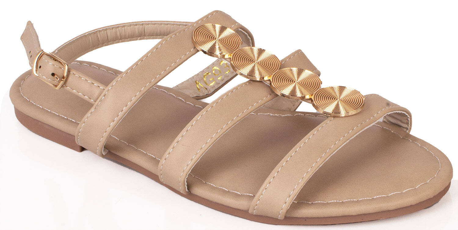 BEŻOWE SANDAŁY DAMSKIE EKOSKÓRA ZŁOTA OZDOBA HARLEE