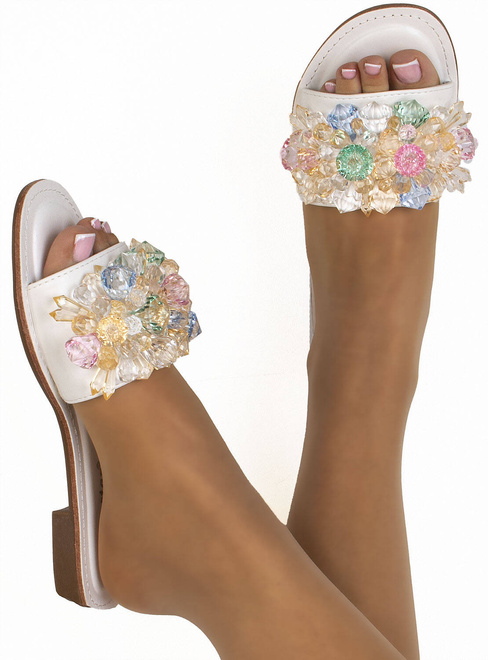 Klapki to obuwie, które każda kobieta powinna mieć w swojej szafie. Nasze klapki pozwolą Ci łączyć wygodę z modnym wyglądem. Wykonane z miękkiej ekoskóry, są wygodne, a ozdobny pasek z kryształkami dodaje im elegancji. Idealne na letnie dni, klapki zapewnią Ci komfort i wygodę, a jednocześnie będziesz wyglądać modnie. Dodatkowo, są one wyjątkowo trwałe i będą Ci służyć przez wiele sezonów. Wybierz nasze klapki i ciesz się modnym i wygodnym obuwiem, które będzie Ci towarzyszyć wszędzie, gdzie tylko pójdziesz.