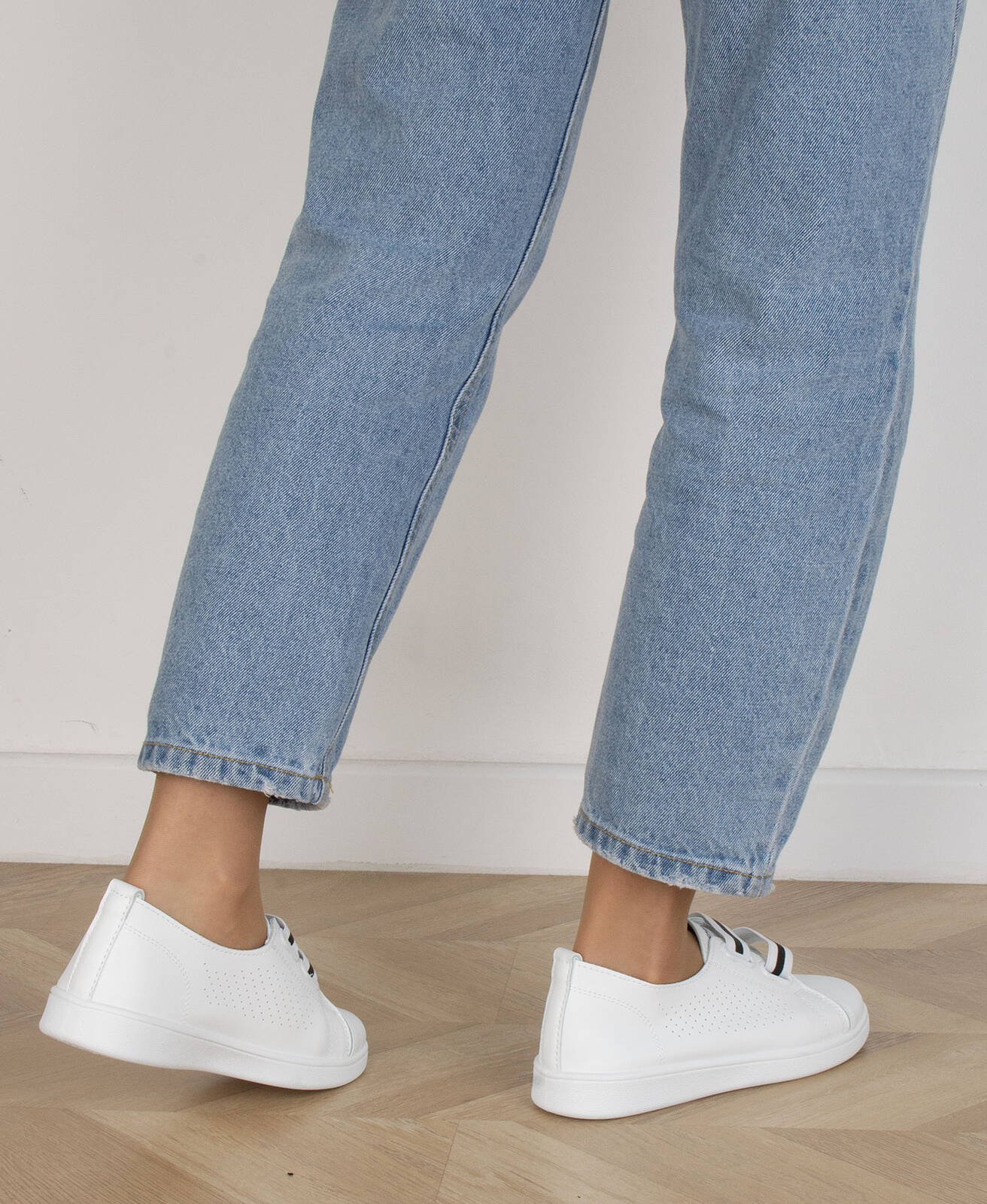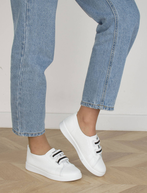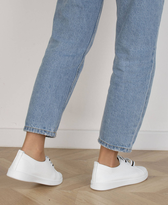 Sneakersy, czyli trampki w stylu klasycznym, wykonane z wysokiej jakości skóry - modny i wygodny wybór dla osób ceniących sobie sportowy styl z nutką elegancji. Białe sneakersy to klasyk, który zawsze będzie modny i uniwersalny. Doskonałe na co dzień, zapewniają wygodę i styl w jednym. Te białe sneakersy charakteryzują się minimalistycznym designem, który sprawia, że pasują do wielu różnych stylizacji. Wykonane z wysokiej jakości materiałów, te sneakersy gwarantują trwałość i komfort noszenia. Ich klasyczna biała kolorystyka sprawia, że są łatwe do zestawienia z różnymi ubraniami, zarówno sportowymi, jak i casualowymi.