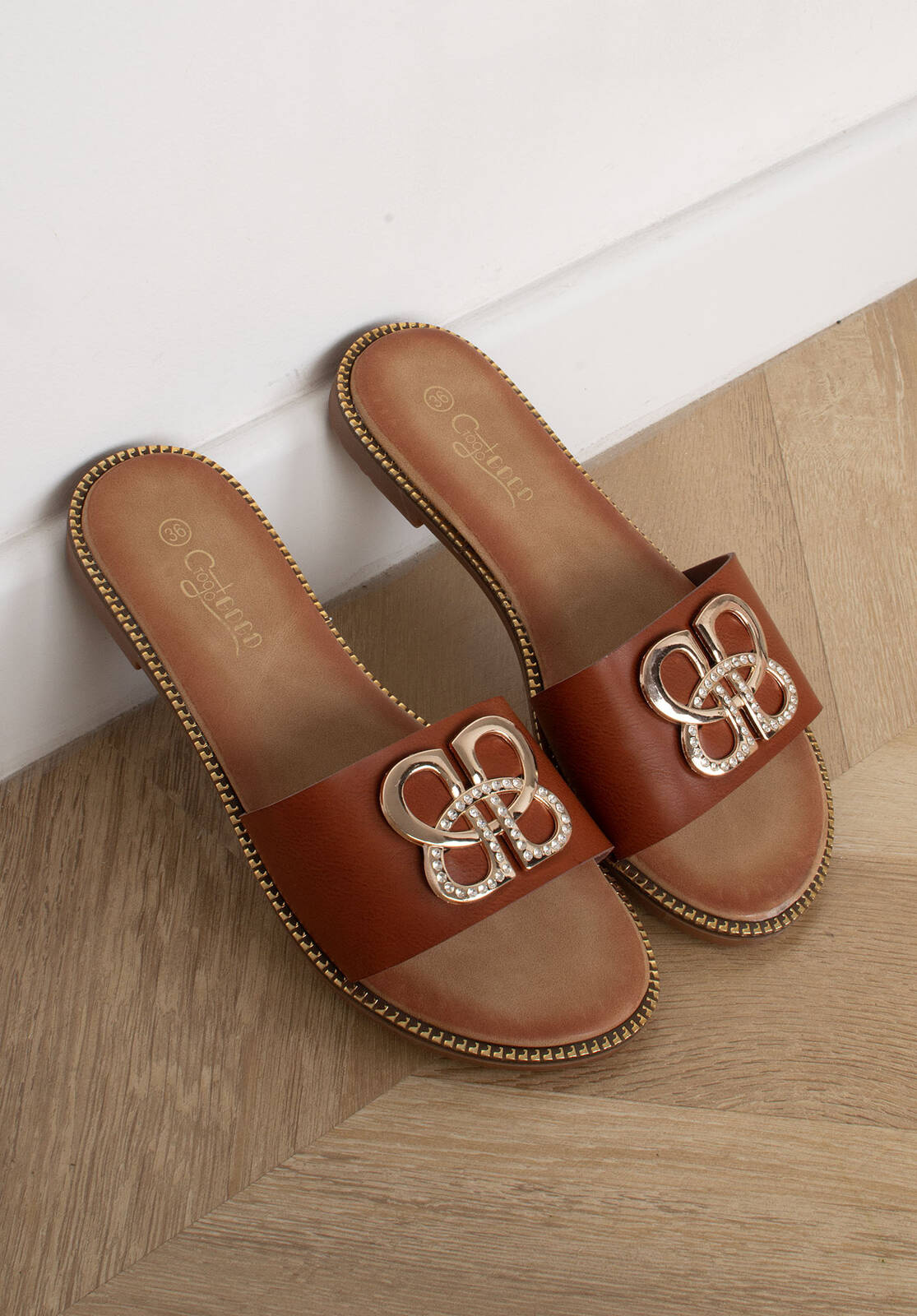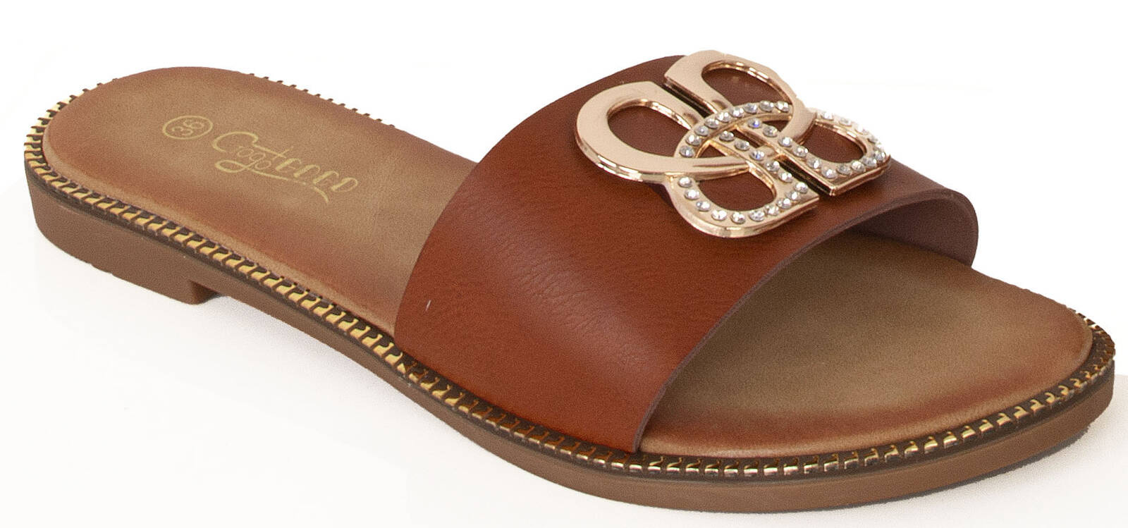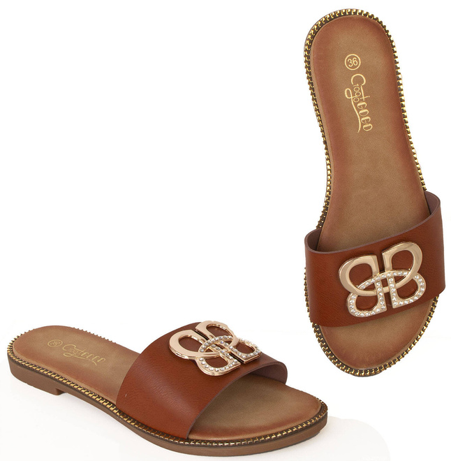 CAMEL DAMSKIE SKÓRZANE KLAPKI ELEGANCKIE OZDOBA GIMI