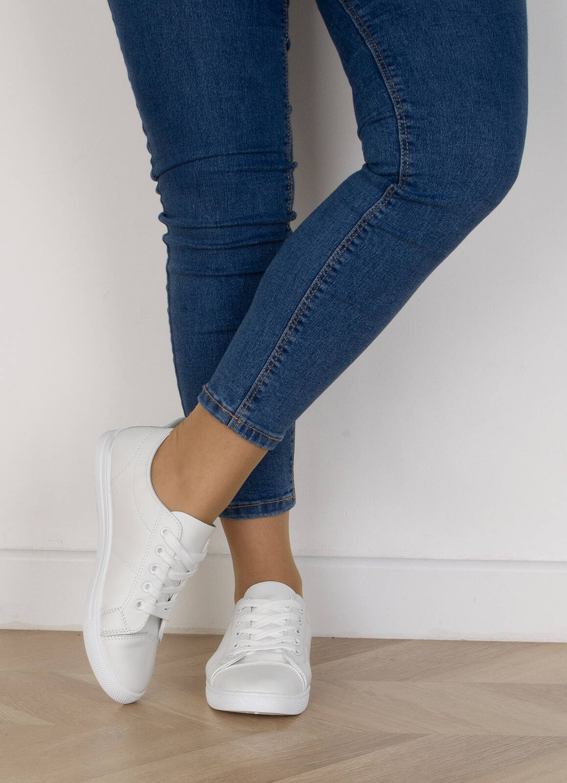 DAMSKIE BIAŁE SNEAKERSY TRAMPKI SKÓRZANE SPORTOWE NABY