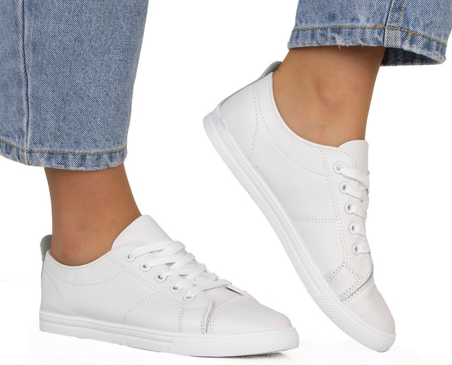 Nasze sneakersy skórzane, wyprodukowane z najwyższej jakości ekoskóry, to odpowiedź na Twoje potrzeby. Przyjazny dla środowiska i modny design sportowego stylu sprawią, że będziesz wyglądać modnie, a dodatkowo miękka cholewka zapewni Ci wygodę przy każdym kroku. Jeśli to Cię nie przekonuje, ten model cechuje się również miękką i przyjemną wkładką tkaninową, dzięki której twój komfort noszenia jest dostosowany do Twoich potrzeb. No i oczywiście sznurowane zapięcie, dzięki któremu dobierzesz idealną precyzję dopasowania. Te sneakersy skórzane to strzał w dziesiątkę dla każdej Pani, która ceni sobie modny i funkcjonalny styl.