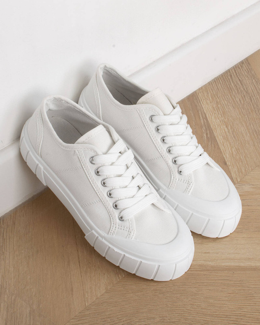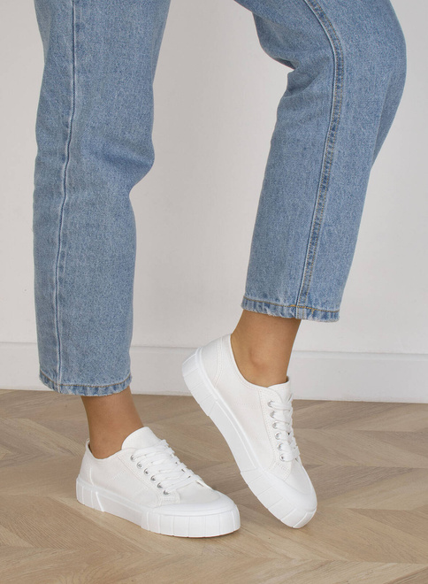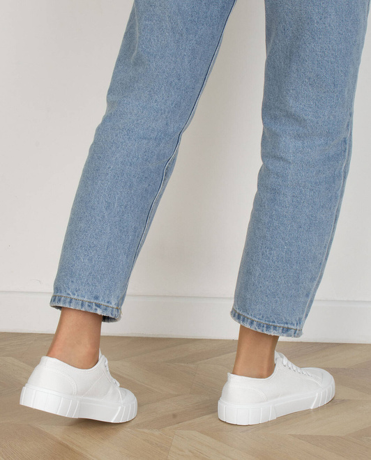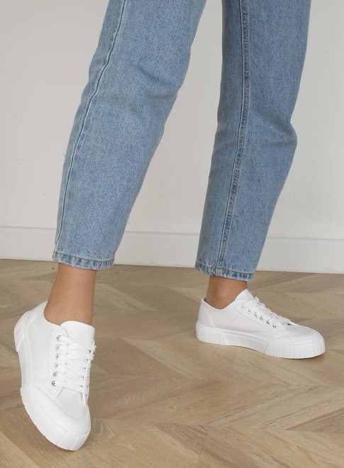 Sneakersy, czyli trampki w stylu klasycznym, na platformie, wykonane z wysokiej jakości materiału - modny i wygodny wybór dla osób ceniących sobie sportowy styl z nutką elegancji.