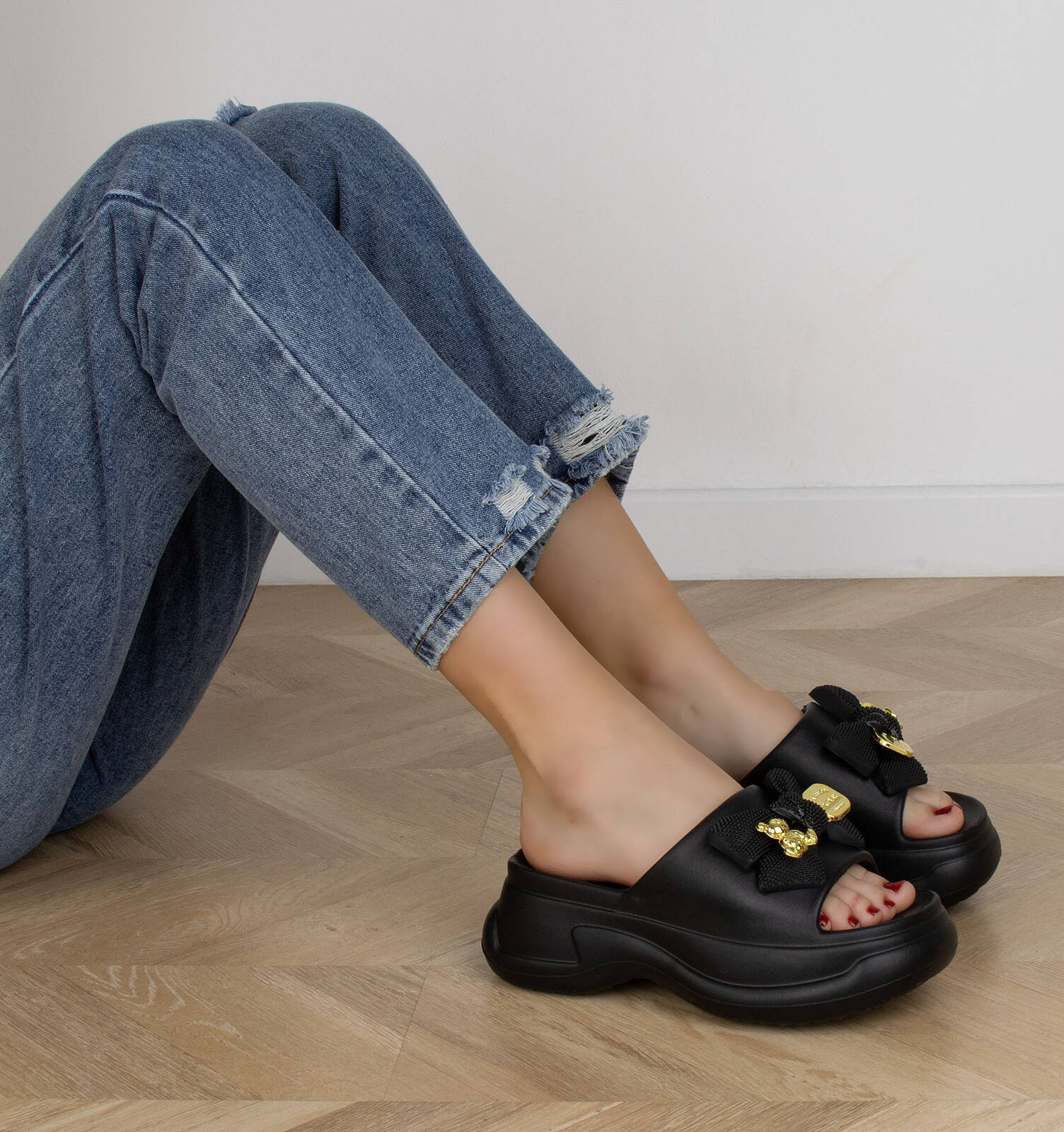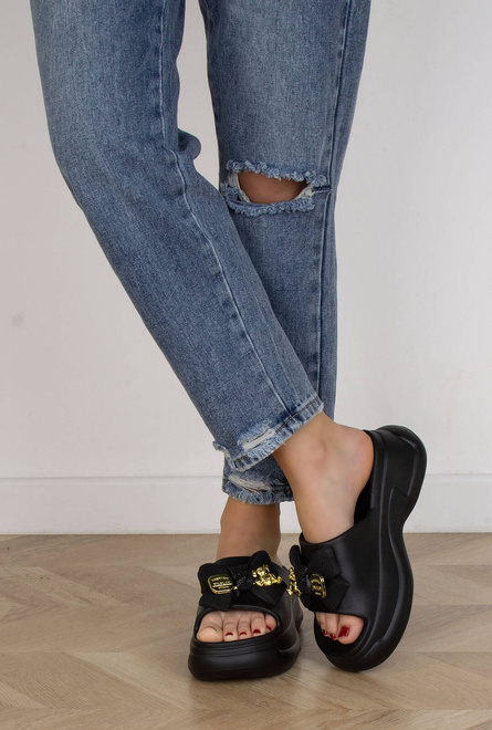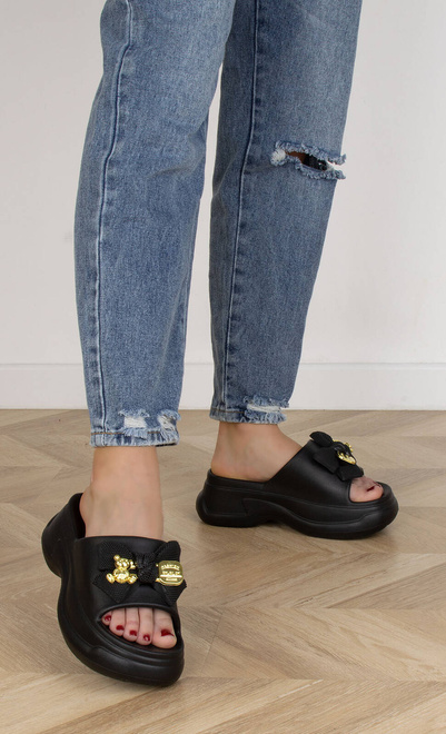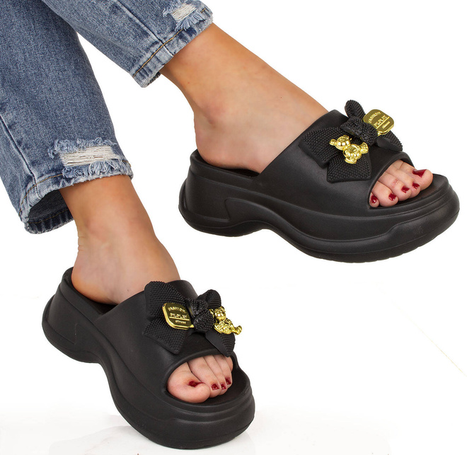CZARNE DAMSKIE KLAPKI CHODAKI KROKSY NA PLATFORMIE OLINA
