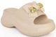 • Białe klapki na platformie ze złotymi ozdobami to oryginalne obuwie, które łączy w sobie wygodę i styl. Ich biała kolorystyka nadaje im świeży i nowoczesny wygląd, który doskonale komponuje się z letnimi stylizacjami.