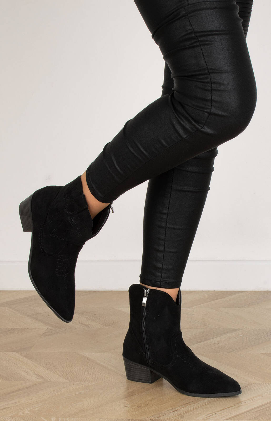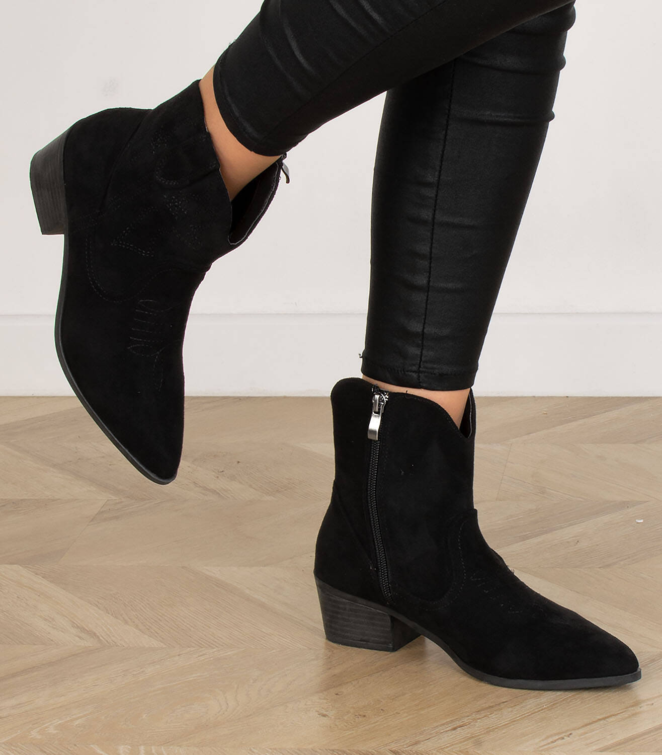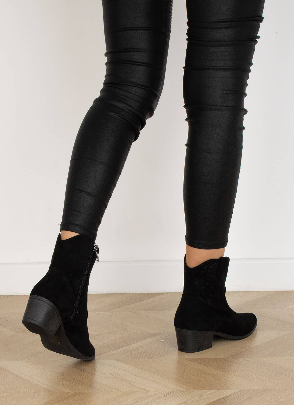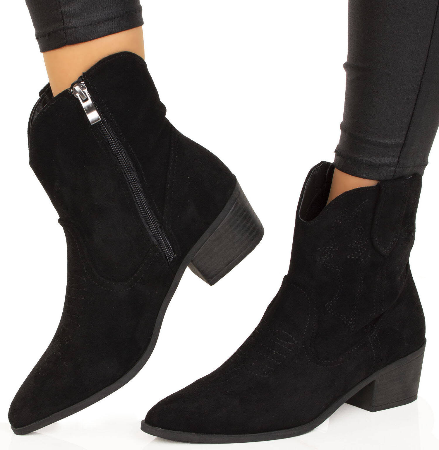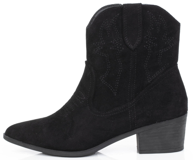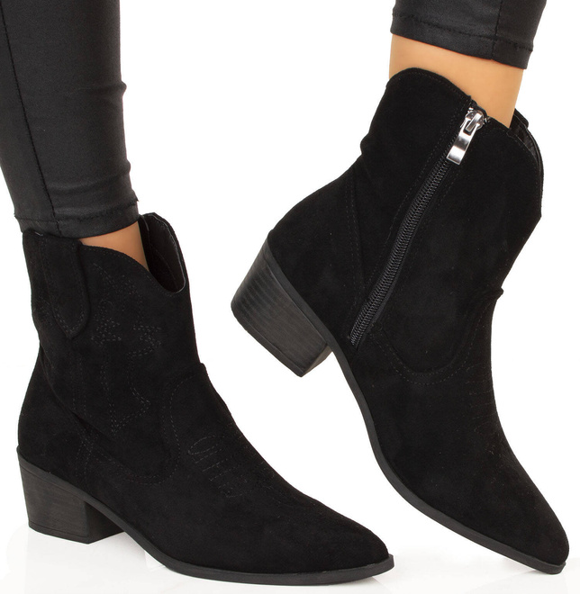 CZARNE ZAMSZOWE KOWBOJKI BOTKI KOZAKI ZAMEK ELBA