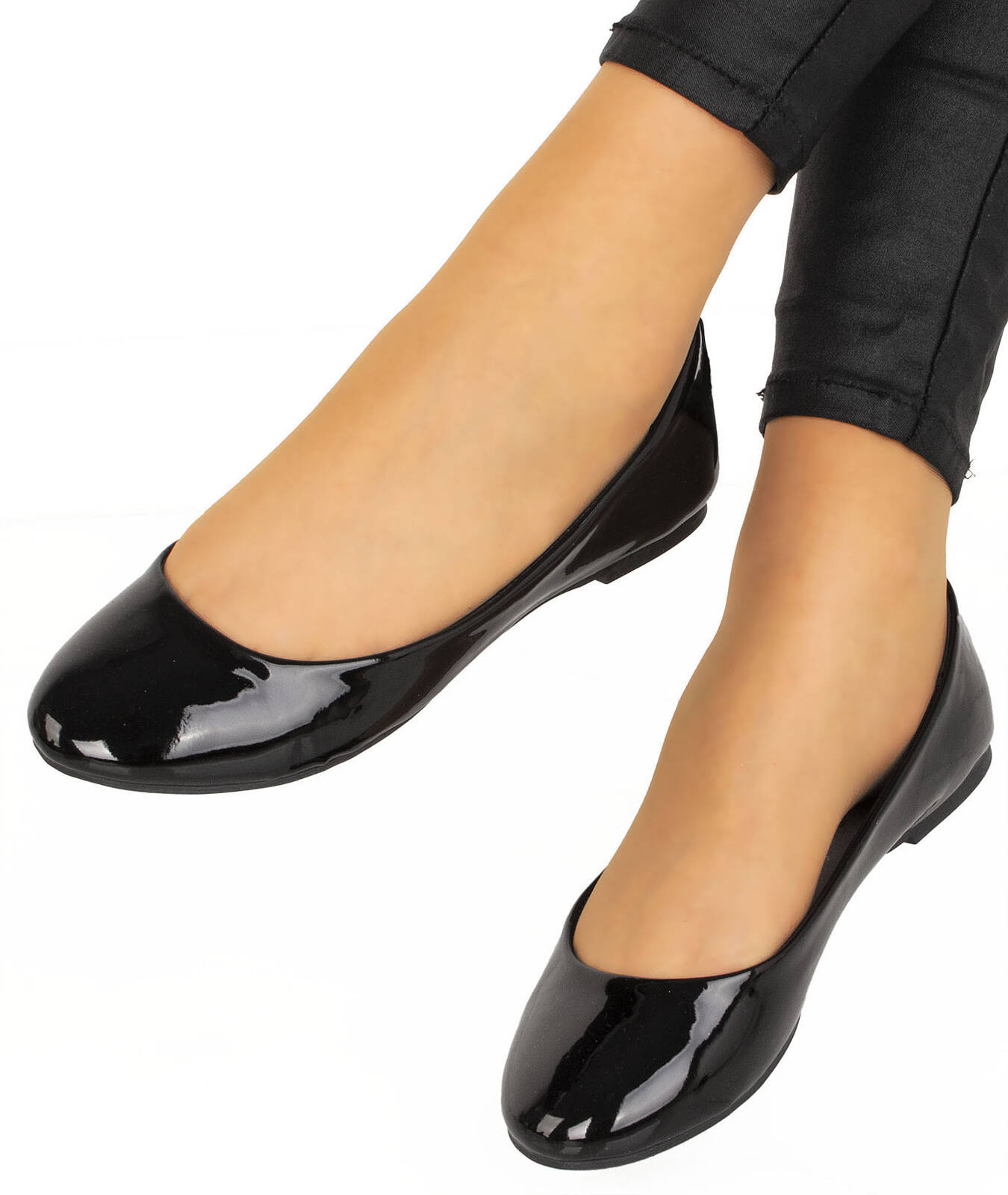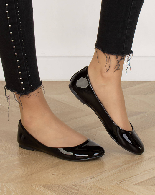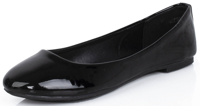 Czarne balerinki lakierowane to eleganckie i stylowe obuwie, które doskonale podkreśla kobiecą delikatność i szyk. Ich lakierowana powierzchnia nadaje im wyjątkowego blasku i luksusowego wyglądu, który doskonale komponuje się z różnymi stylizacjami. Balerinki te cechują się klasycznym fasonem. Dzięki temu są doskonałym wyborem zarówno na co dzień, do pracy, jak i na specjalne okazje, takie jak spotkania rodzinne czy wieczorne wyjścia. Wykonane z wysokiej jakości lakierowanej skóry syntetycznej, te czarne balerinki są nie tylko stylowe, ale także trwałe i wygodne w noszeniu. Ich płaska podeszwa zapewnia stabilność i komfort podczas chodzenia, a delikatne wnętrze sprawia, że są one przyjemne dla stóp przez cały dzień.