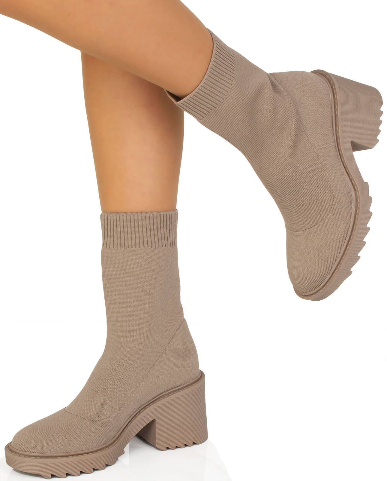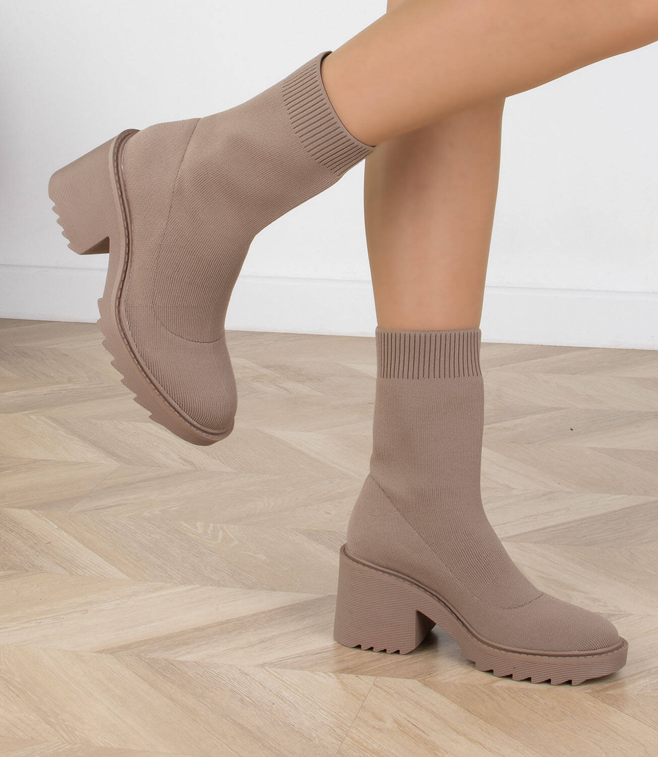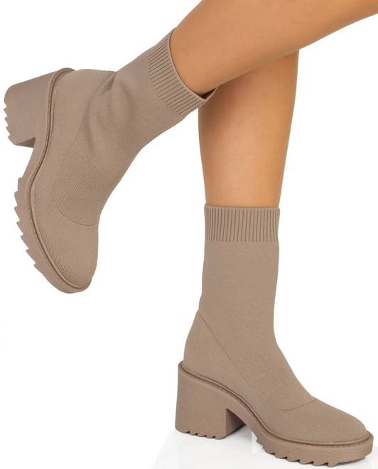 Cholewka botków wykonana jest z elastycznego prążkowanego materiału, który doskonale dopasowuje się do kształtu nogi, zapewniając wygodę i swobodę ruchów. Elastyczność cholewki ułatwia zakładanie i zdejmowanie botków, jednocześnie zapewniając odpowiednie podparcie dla stopy.